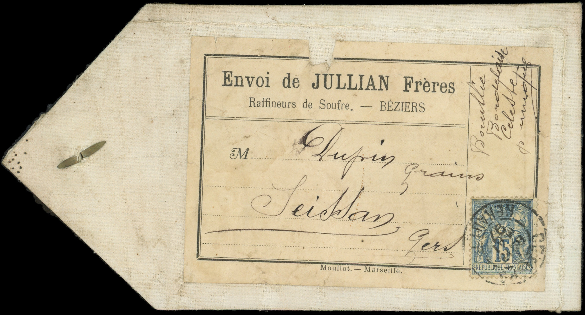 BEZIERS 5/97 s. Env. en tissu de Jullian Frères Raffineurs de Soufre, TB (Image)