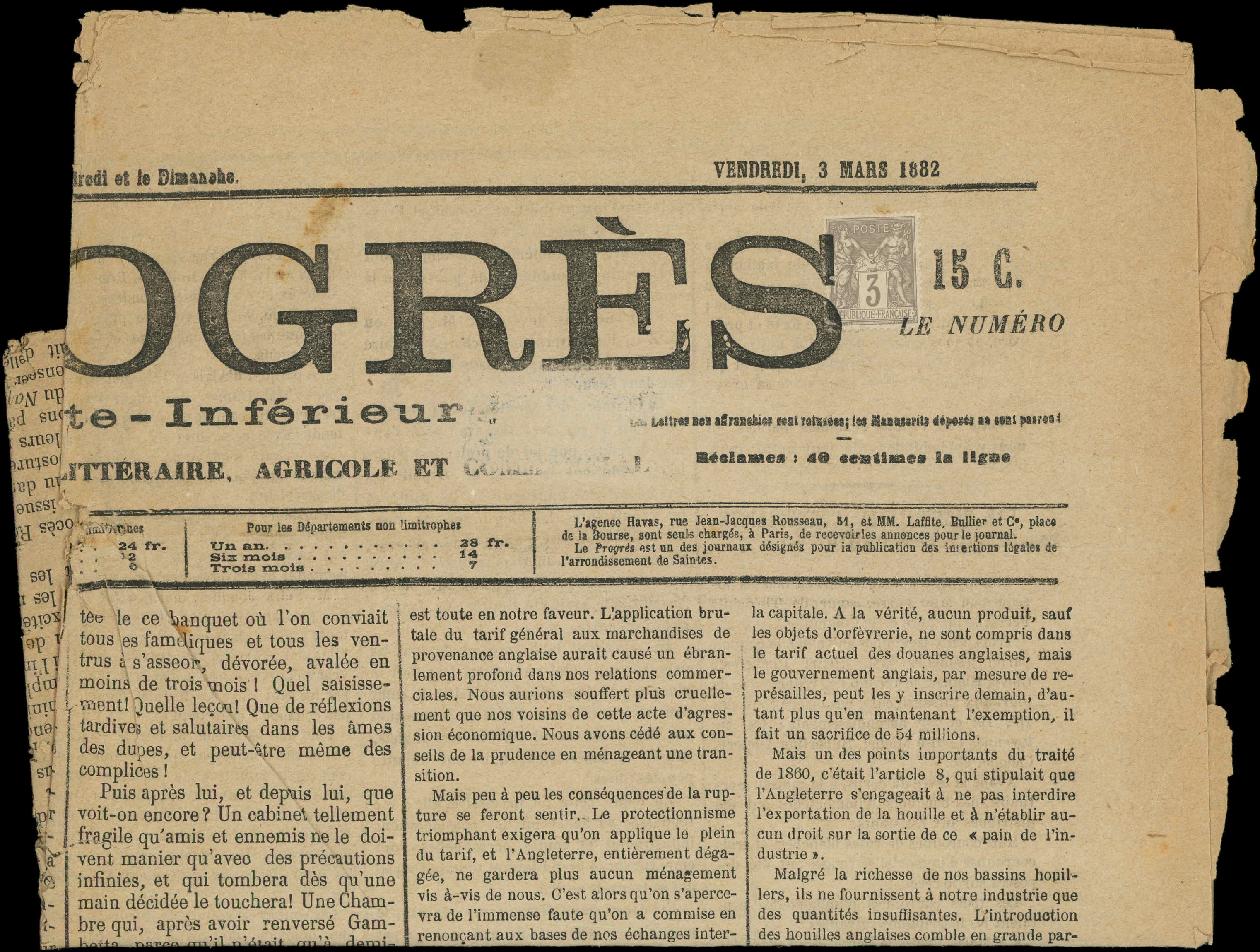 sur Journal "LE PROGRES" de la Charente Inférieure du 3/3/82, TB (Image)
