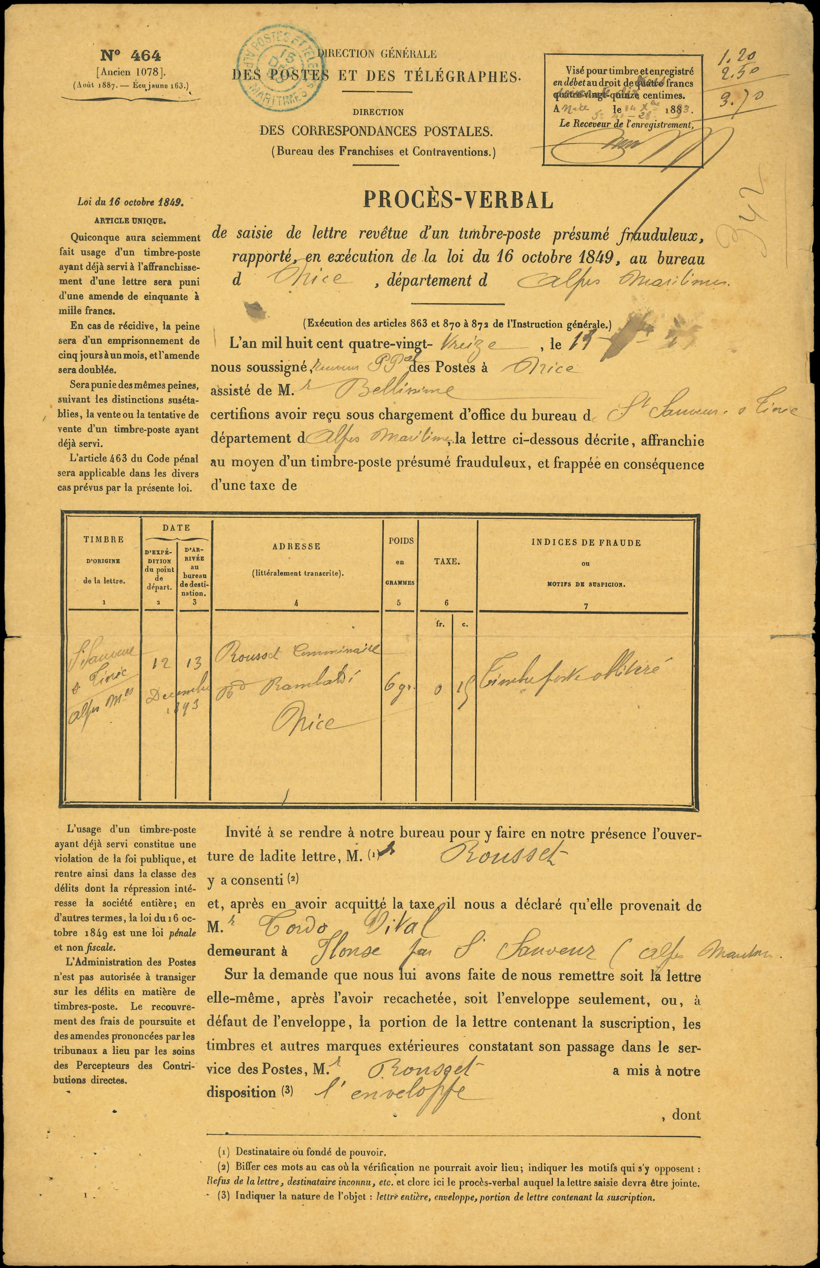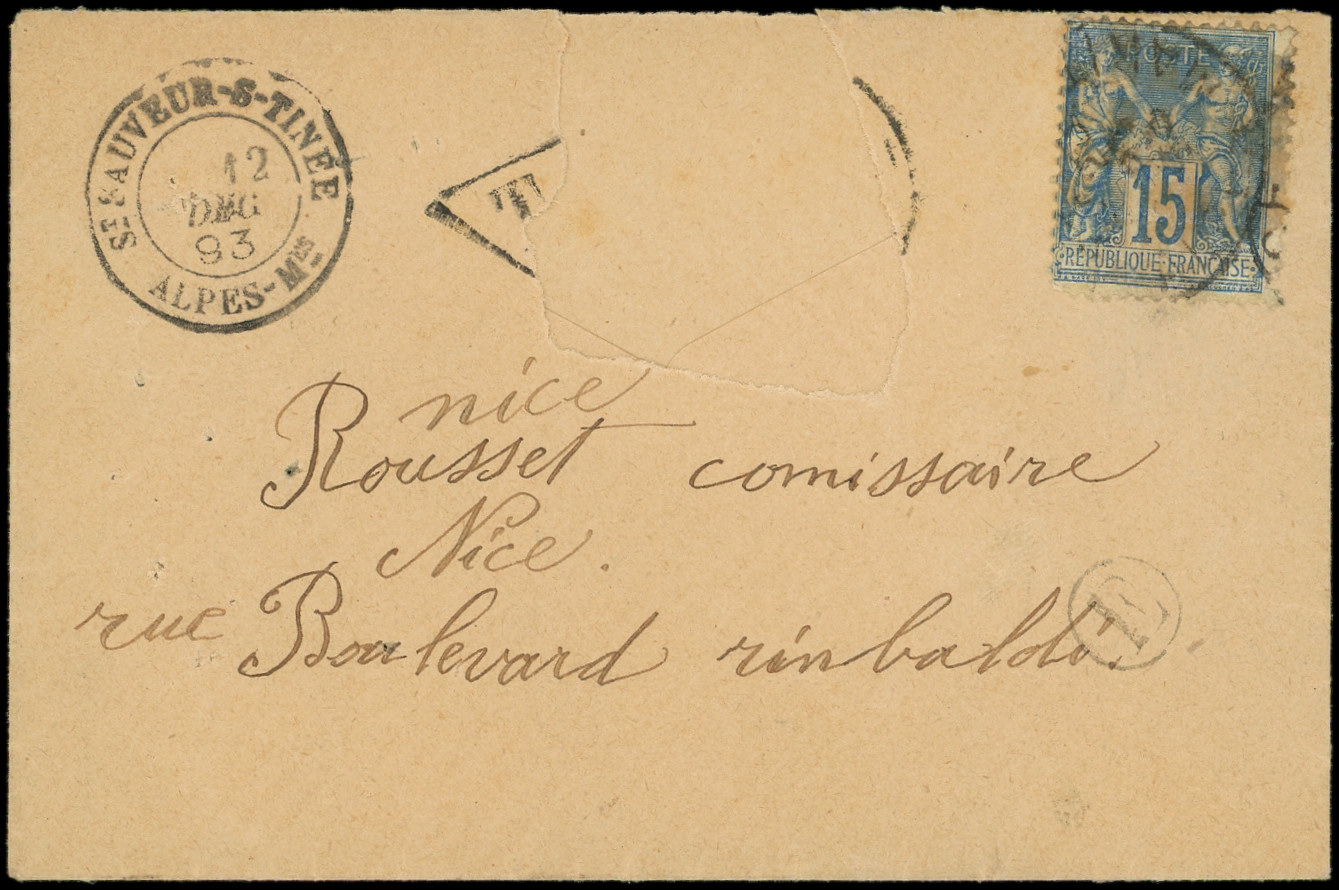 déchirée càd St SAUVEUR-S-TINEE 12/12/93, dossier de Taxation pour timbre ayant déjà servi, TB (Image) (Image2)