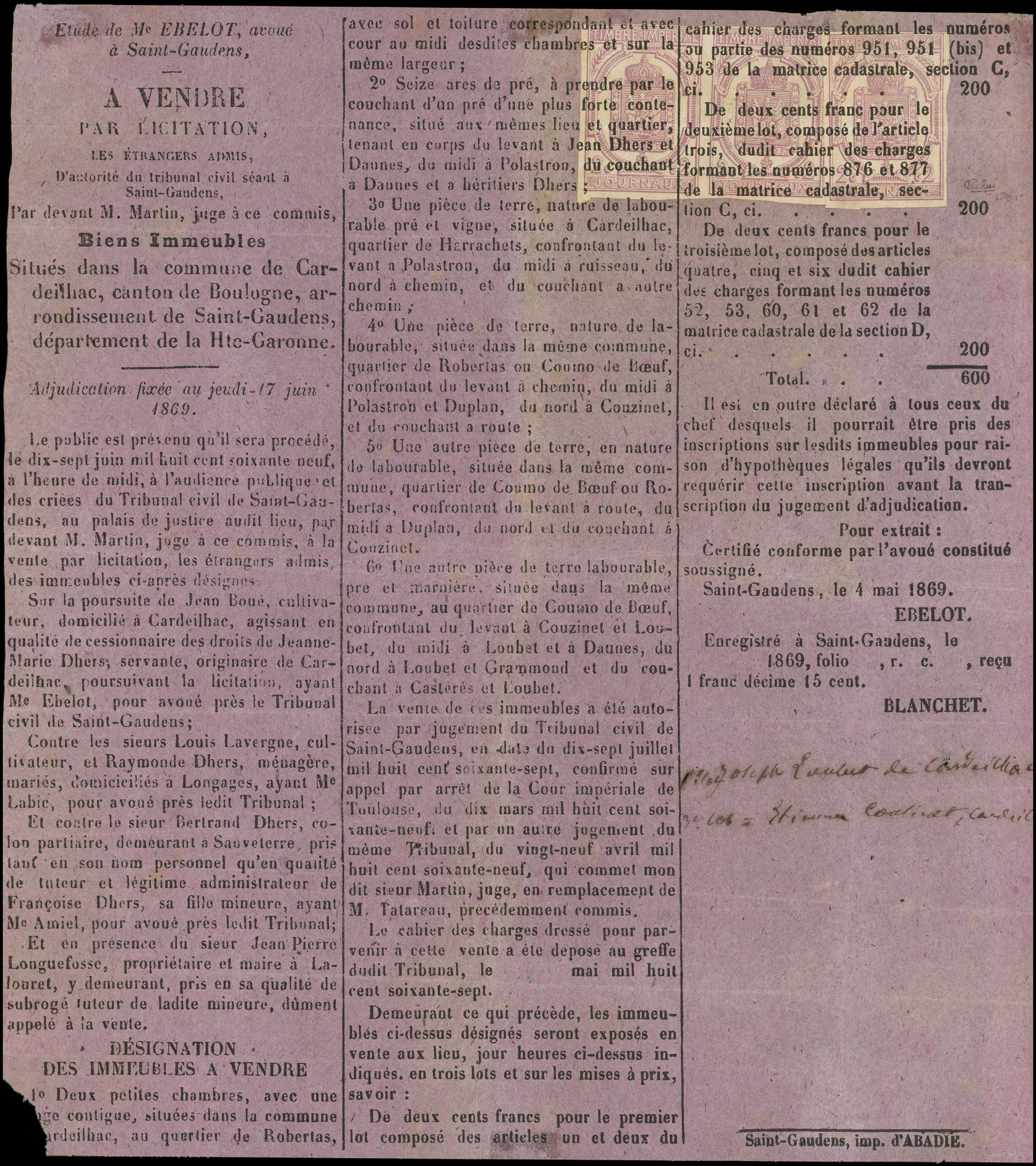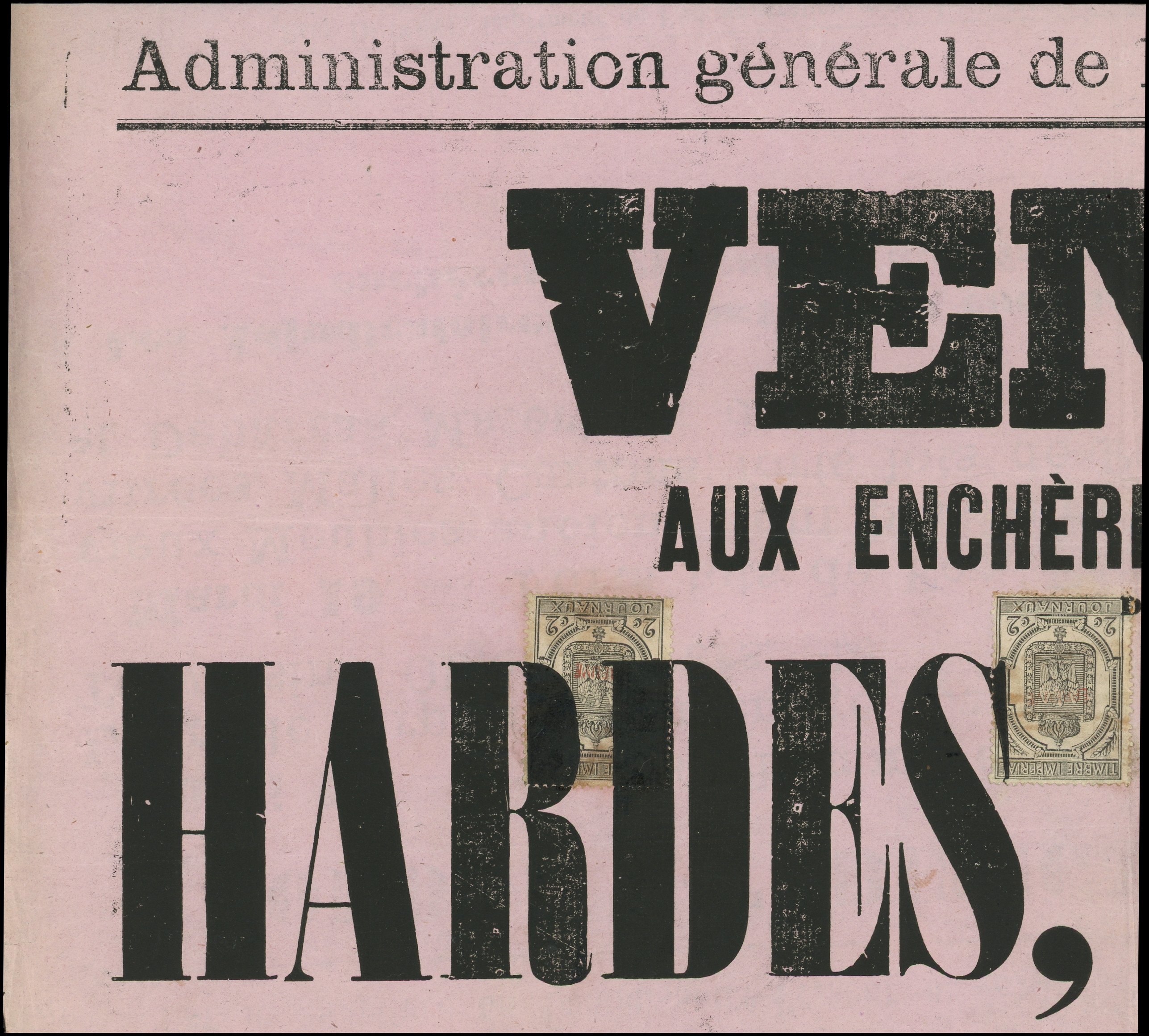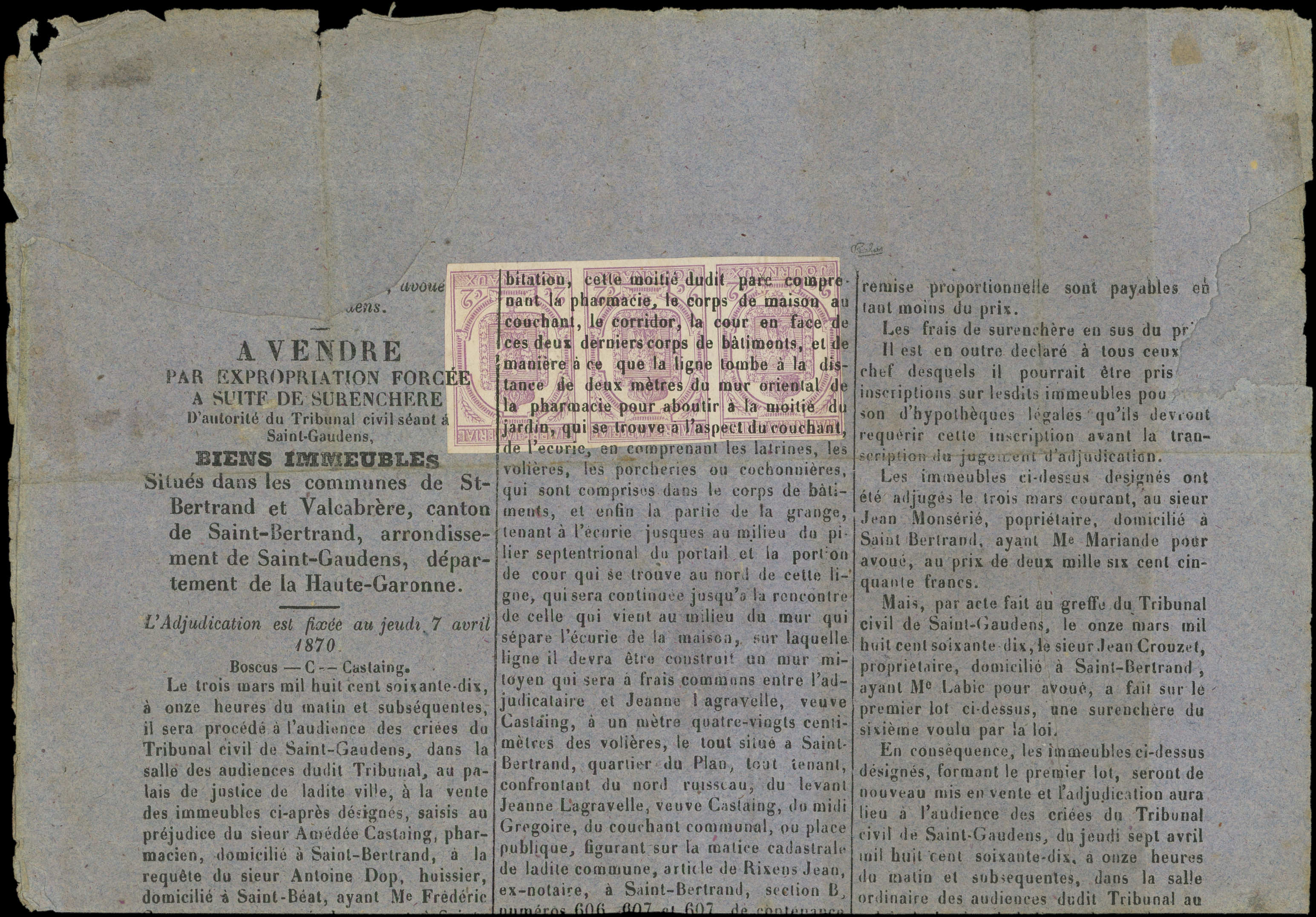 BANDE de 3 obl. TYPO s. grande partie d'Affiche "A vendre par expropriation forcée", RR, TB. C (Image)