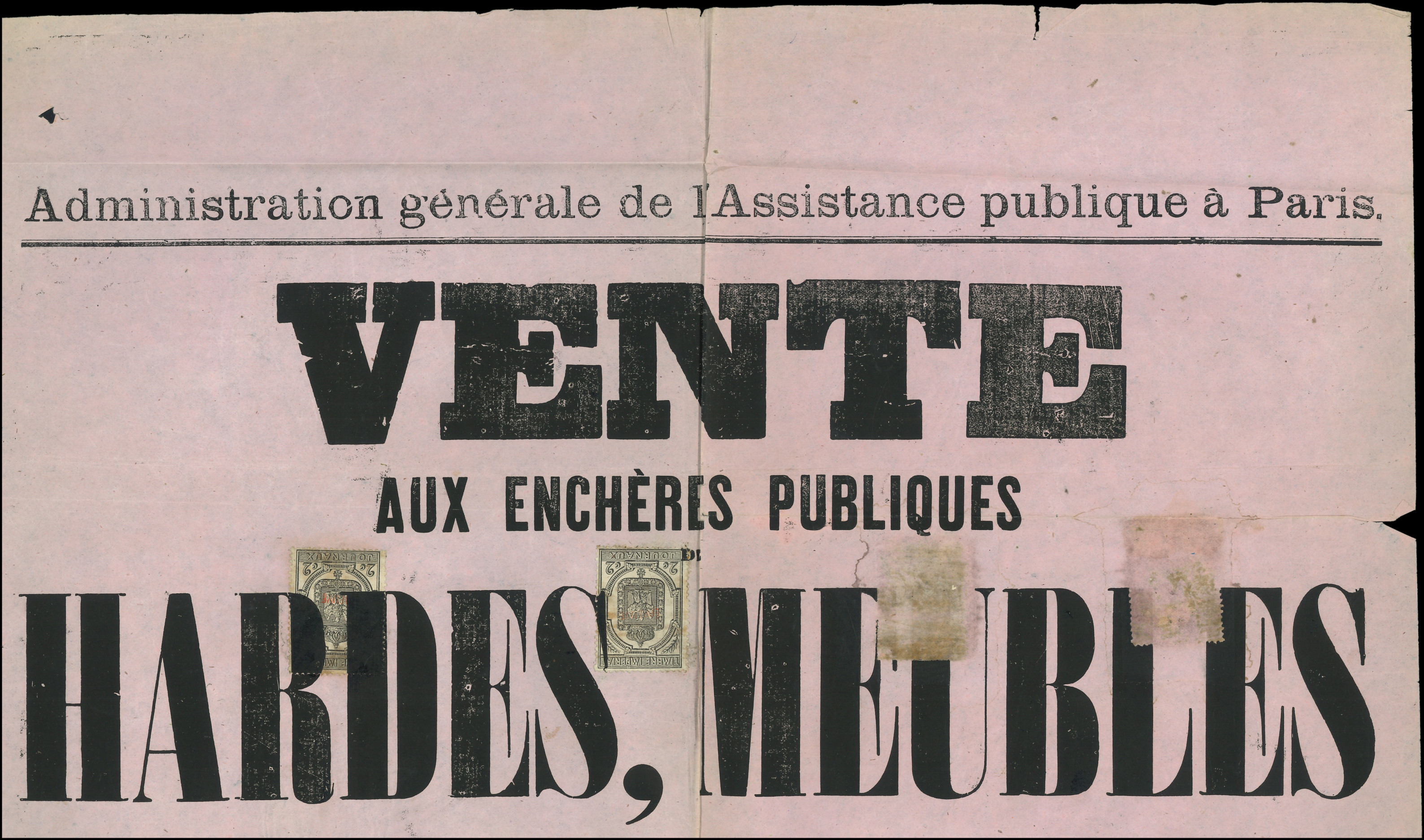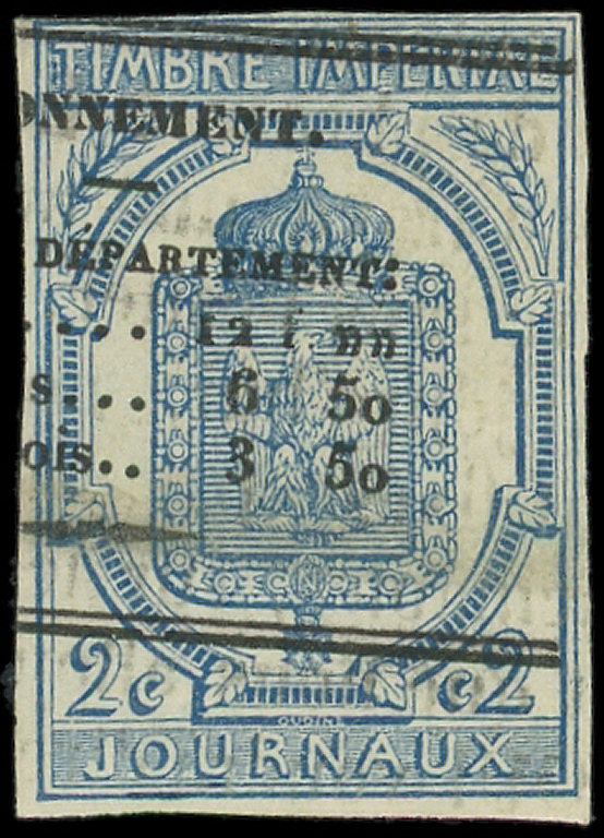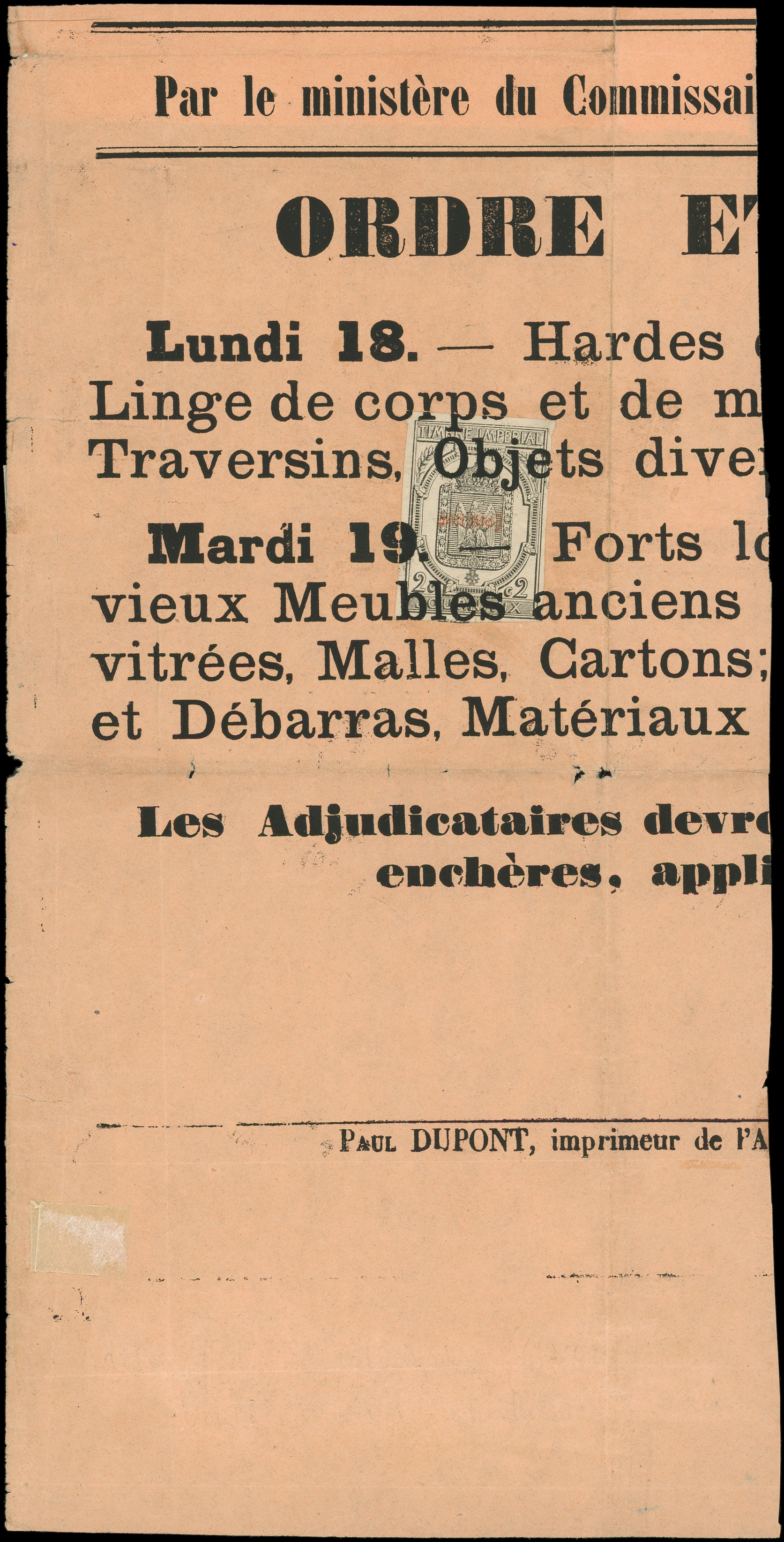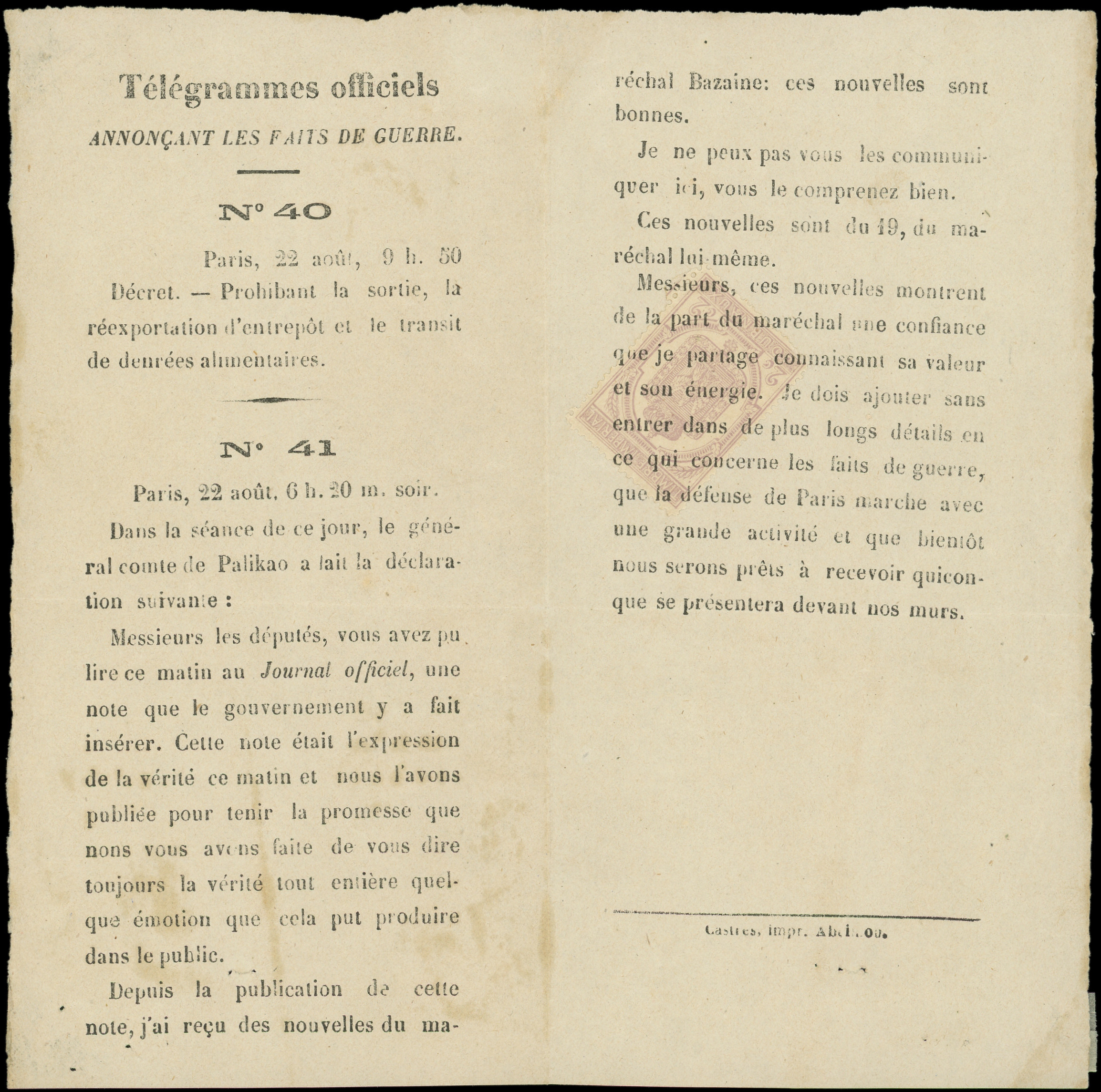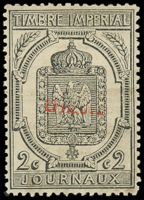 dentelé, surch. EPREUVE en rouge, 2 ex. obl. TYPO sur AFFICHE de Juillet 1870, TB (Image)