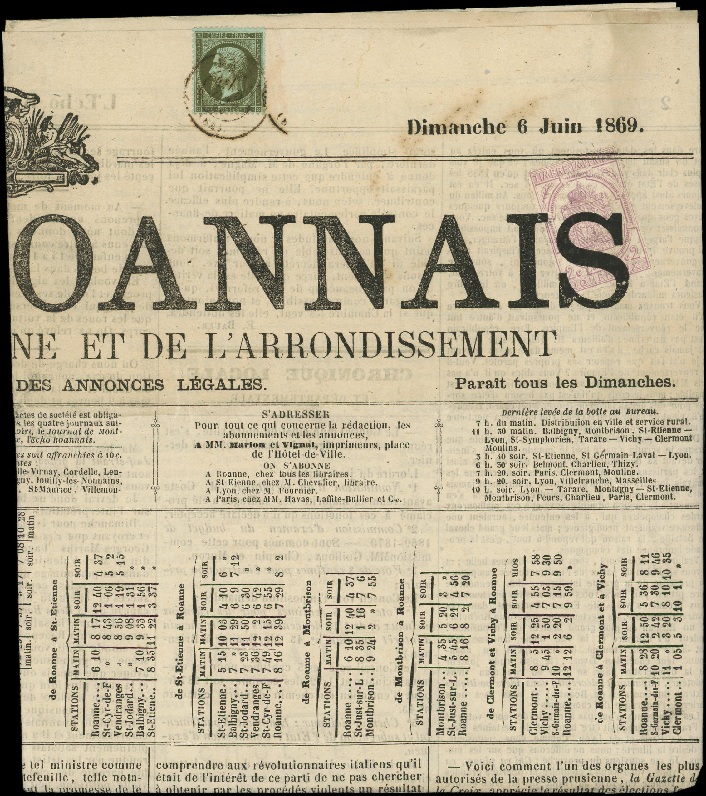 obl. TYPO sur Journal L'ECHO ROANNAIS du 6/6/69, affr. N°19 obl. càd du 5/6, TB (Image)