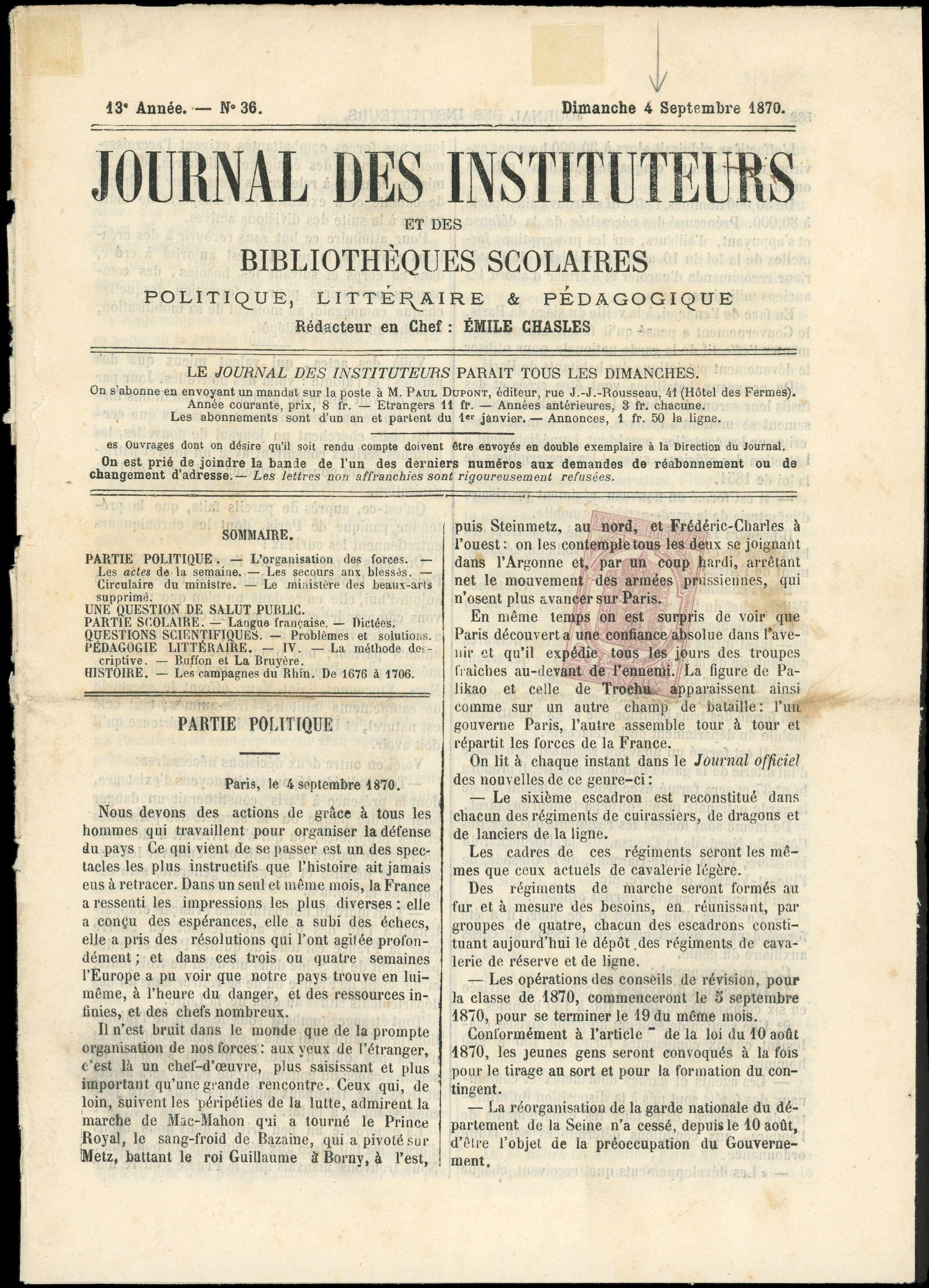 obl. TYPO sur JOURNAL des INSTITUTEURS du 4/9/70, dernier jour de la taxe fiscale sur les journaux, TB (Image)