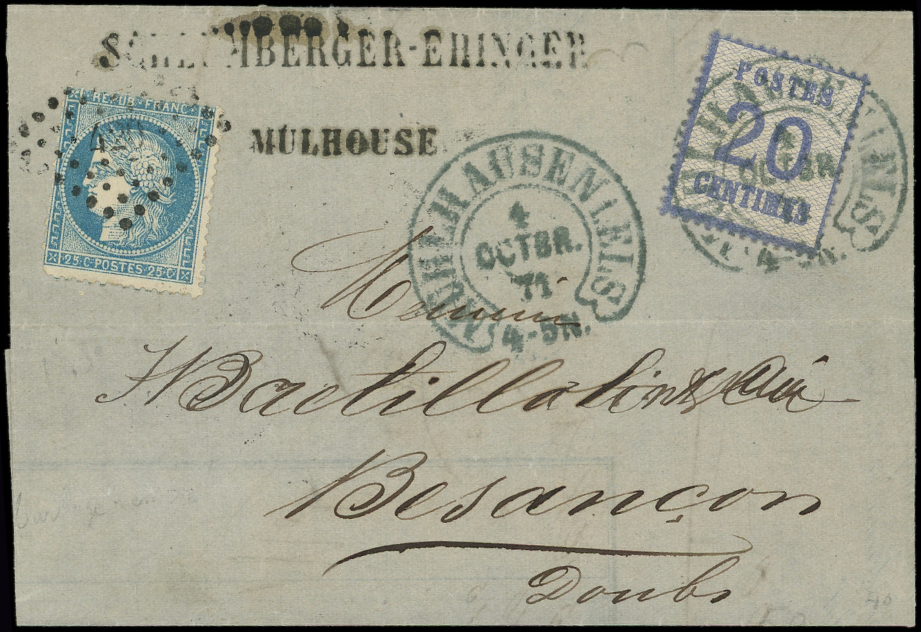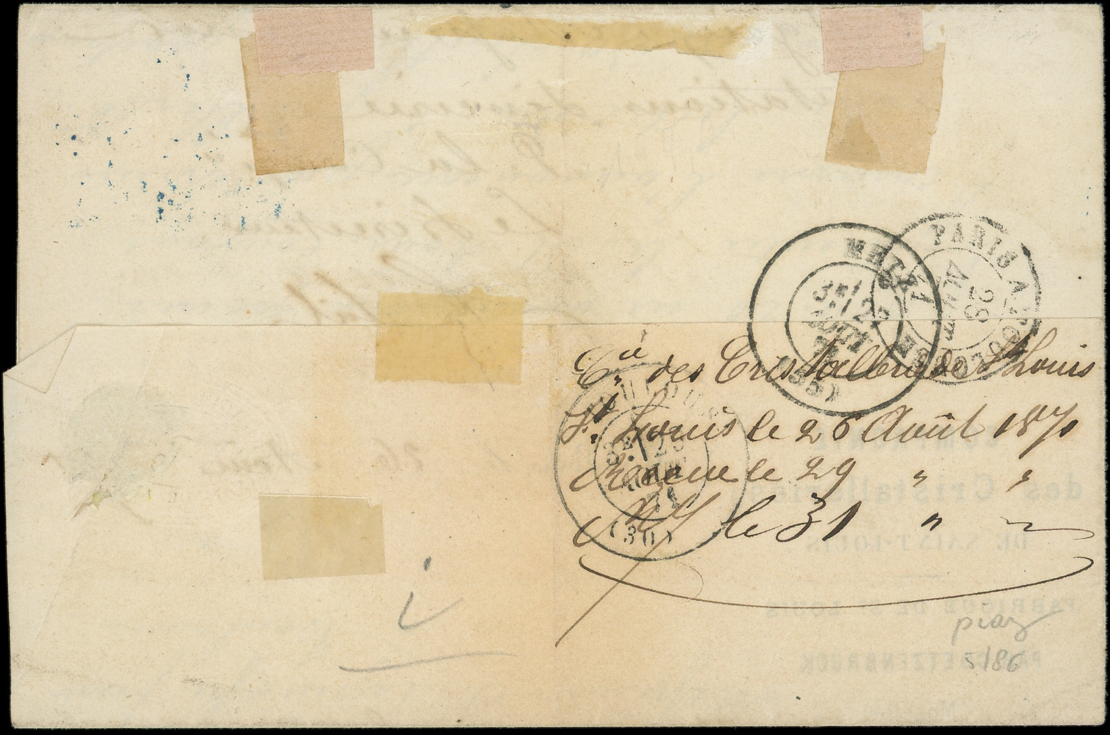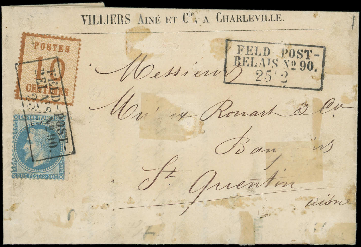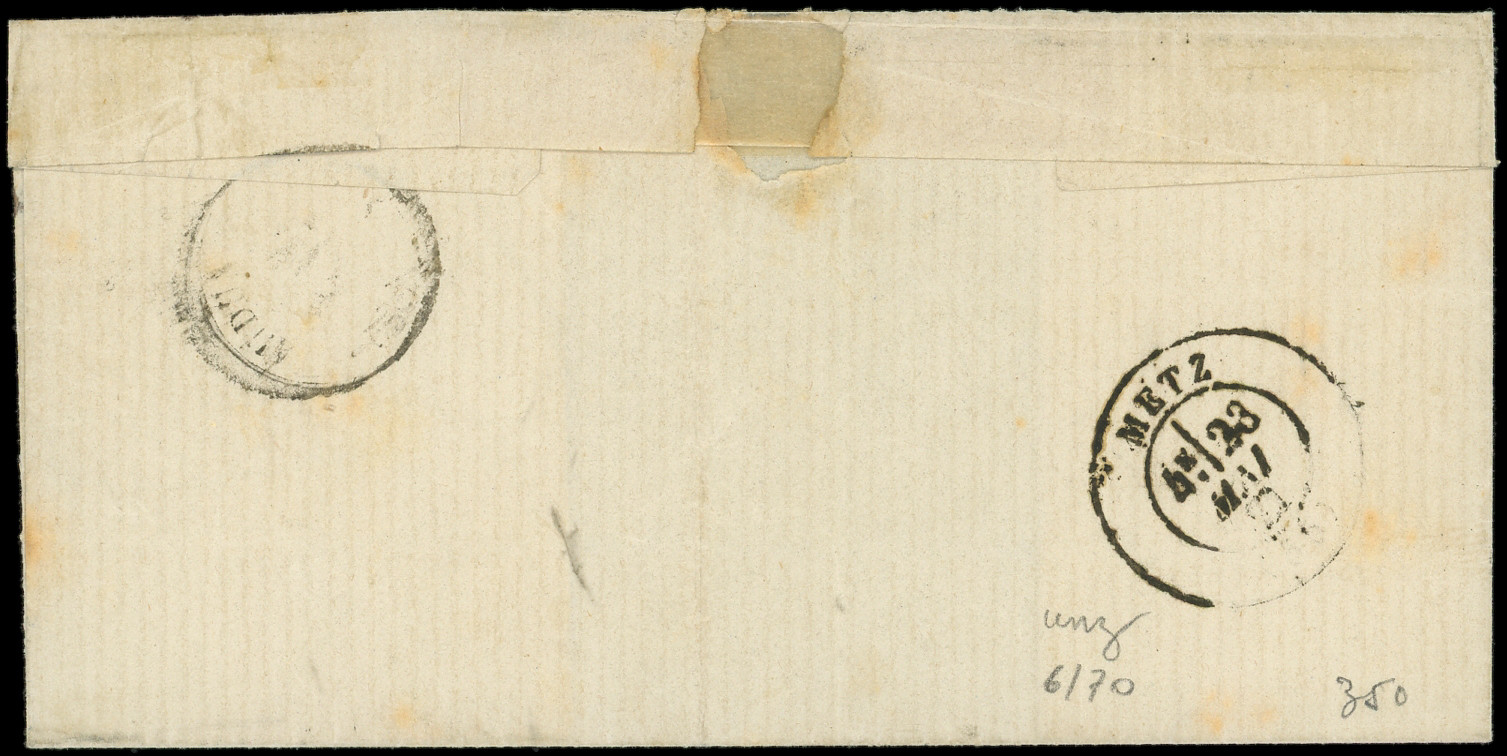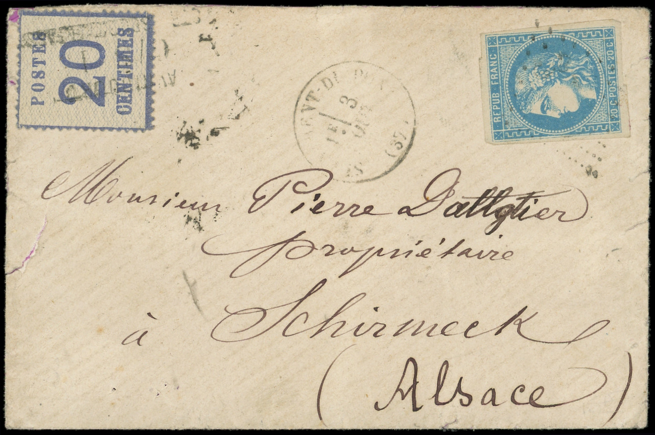 obl. càd LEMBERG-LOTHRINGEN 27/8/71 s. LSC, MIXTE avec France N°28B PAIRE obl. ETOILE BLEUE, passage METZ 27/8, arr. TOULOUSE 29/8, TTB (Image) (Image2)