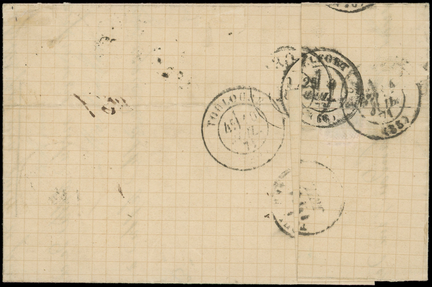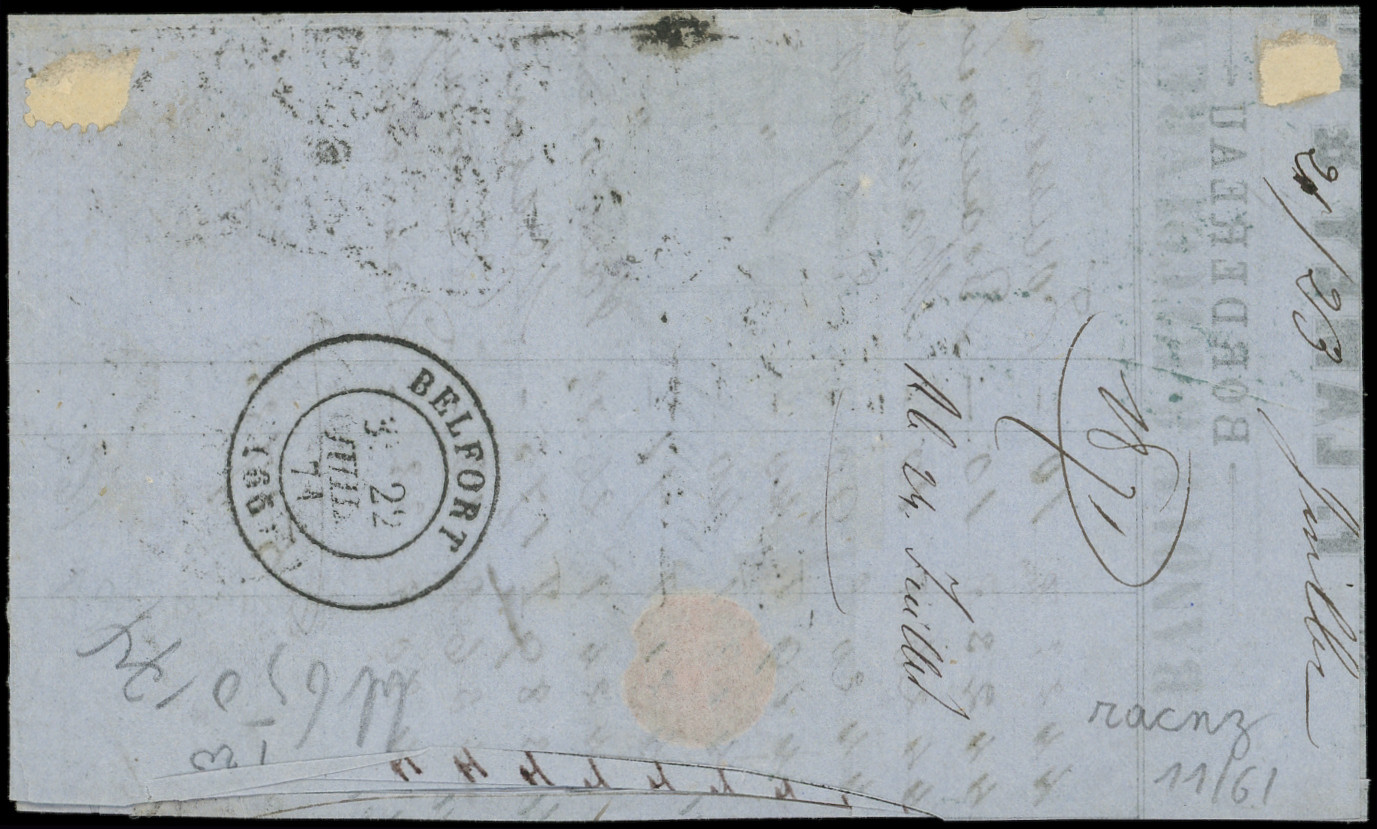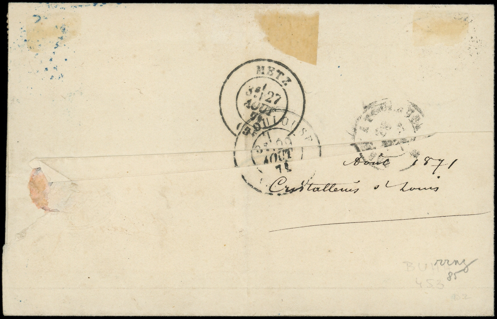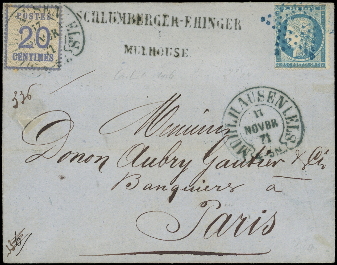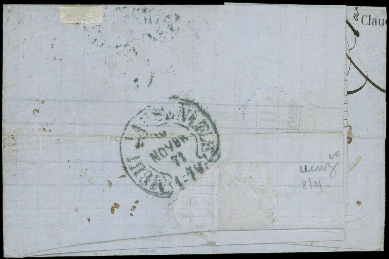 obl. càd LEMBERG-LOTHRINGEN 27/8/71 s. LSC, MIXTE avec France N°28B PAIRE obl. ETOILE BLEUE, passage METZ 27/8, arr. TOULOUSE 29/8, TTB (Image) (Image2)