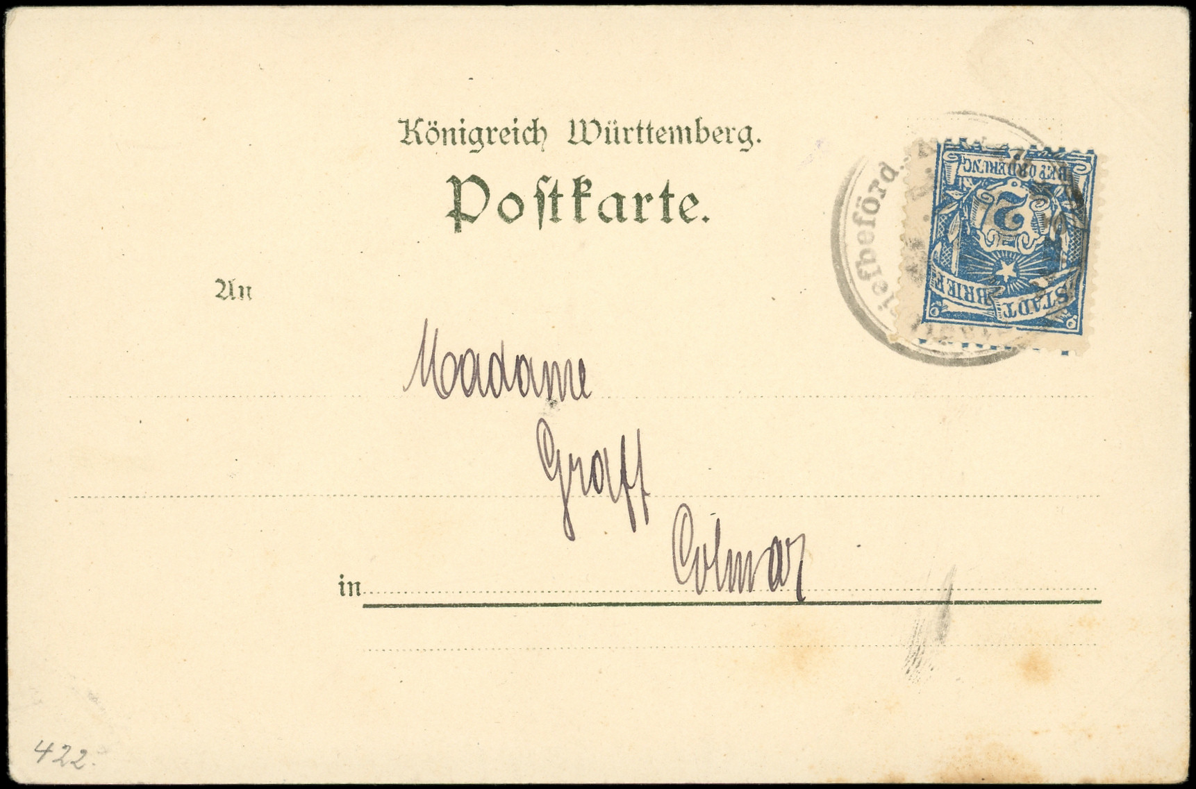 Colmar 2pf. bleu obl. s. CP, TB (Image) (Image2)