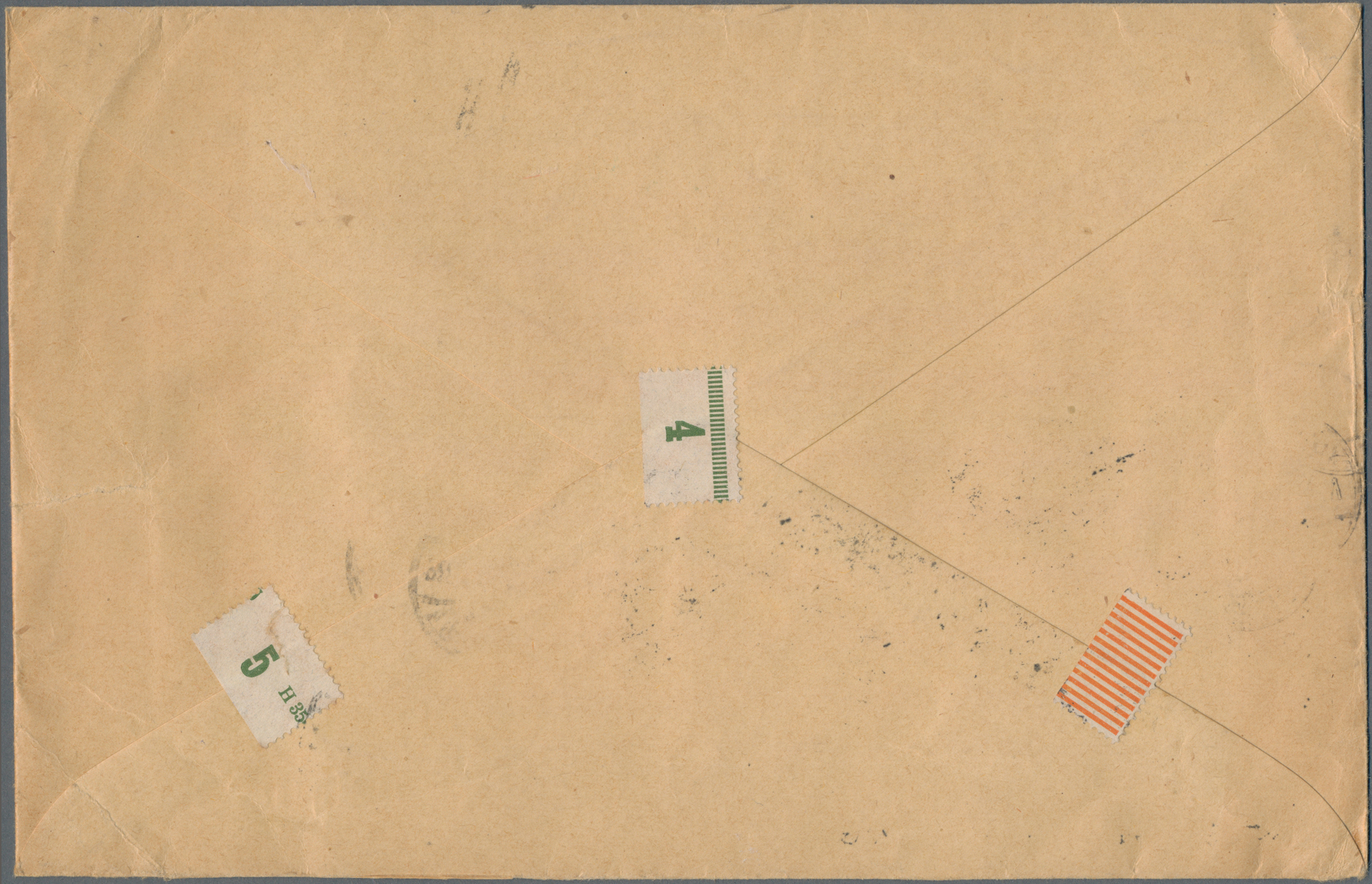1919, Kriegsbeschädigtenhilfe, 10 Pf im Viererblock aus der linken oberen Ecke und 15 Pf als Einzelwert, dazu 5 Pf Germania auf Blanko-Umschlag mit