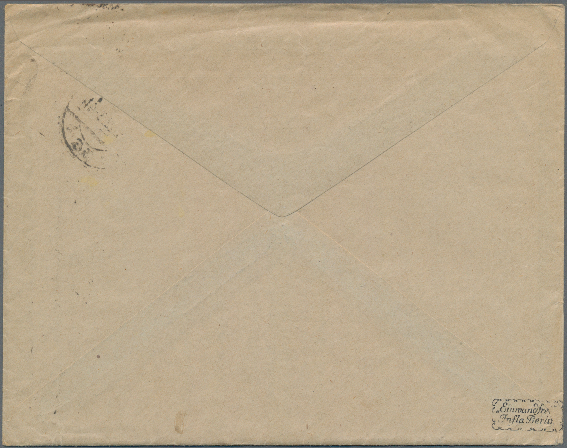 Berlin(etwas unsauberer Stempel) nach Schweden, signiert Infla Berlin, WZ-Bestimmung unterhalb der Marke. Seltener Bedarfsbeleg, war nur vom 1.1-30.6.1922 möglich.