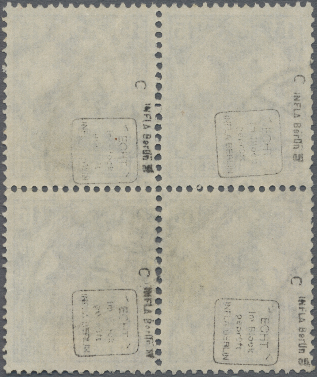 1919, Kriegsbeschädigtenhilfe, 15 Pfg. schwärzlichblauviolett, sauber gestempelter Viererblock, Foto-Attest Dr. Oechsner BPP (1996), Mi 1800,-