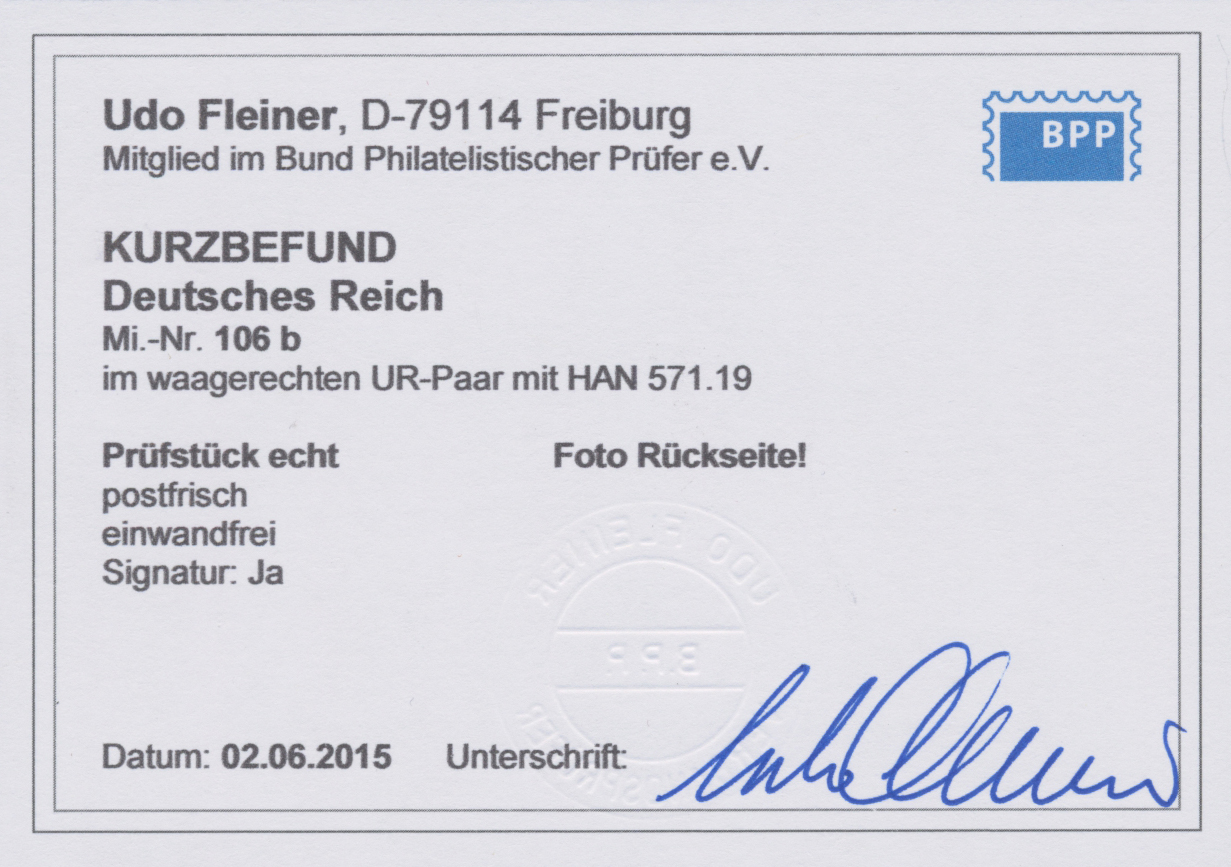 Katalog-Nummer(n) : 106 b POR(2), 106 b (2) Value Add Taxes will be added to the hammer price and the buyers premium. (1065639) (Image) (image1)