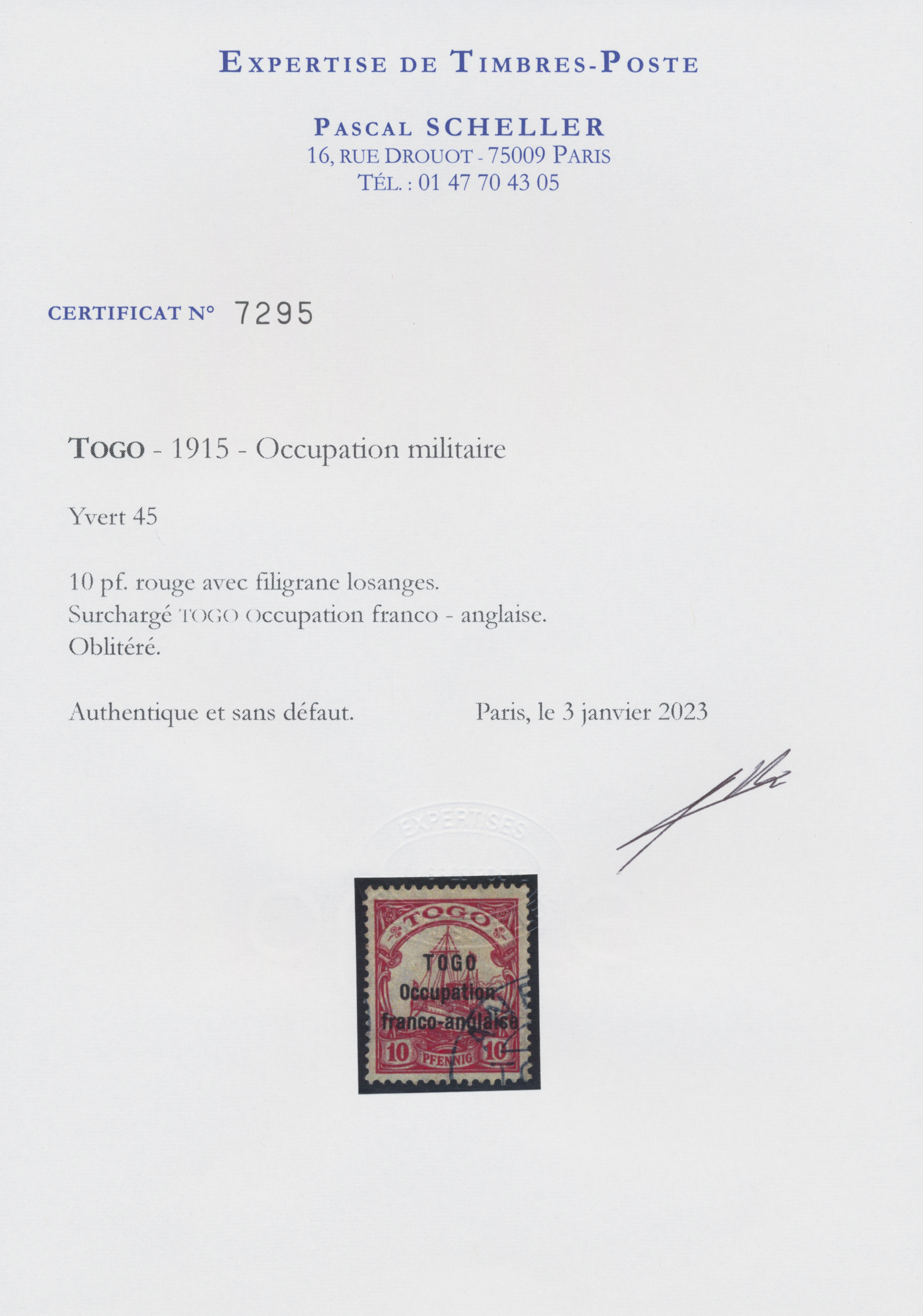 Get Market Data for [Togo 10 (Yvert 45)] Visual Pricing Guide Sample Census