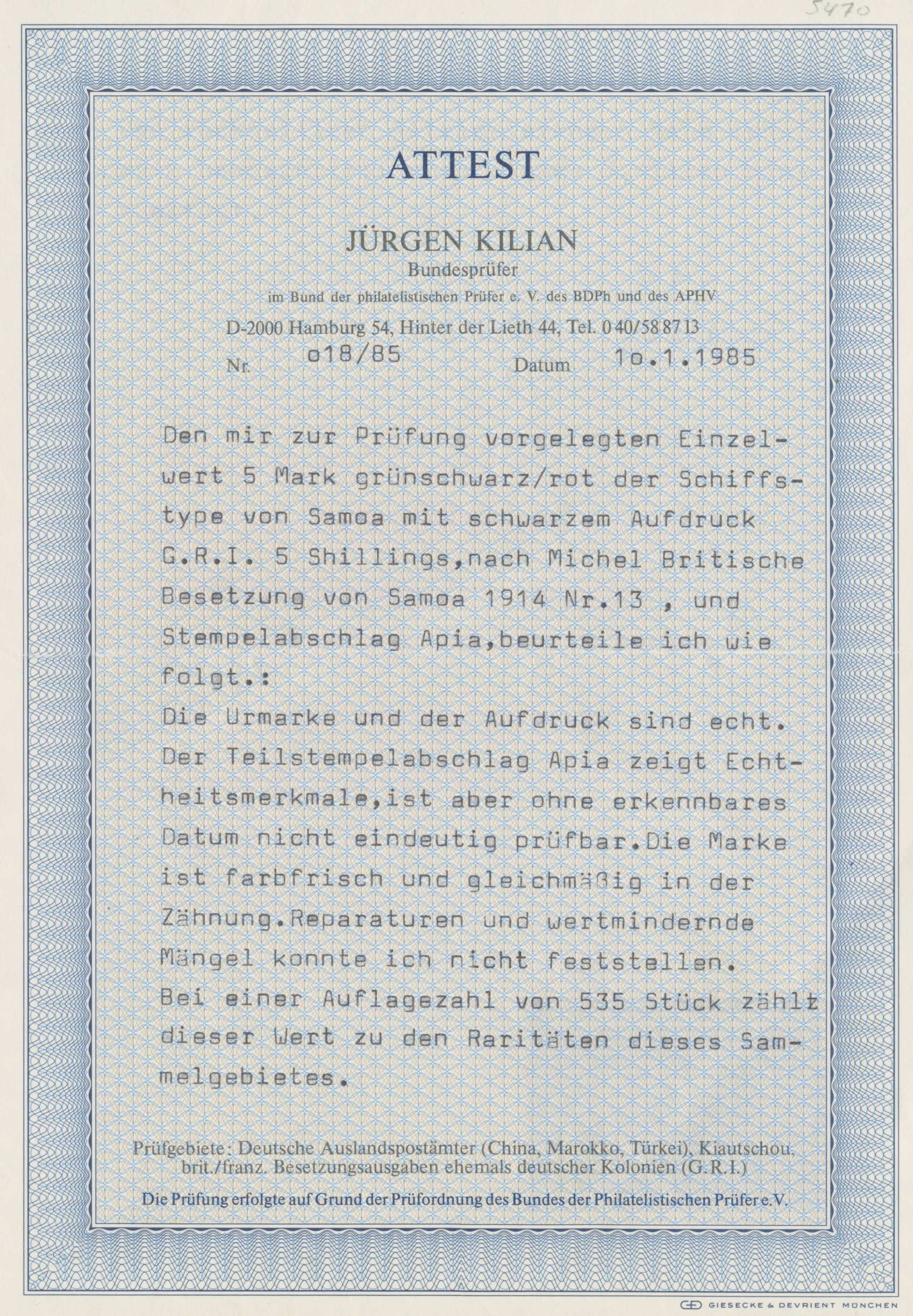 Get Market Data for [Samoa 3 c, 5 b] Visual Pricing Guide Sample Census