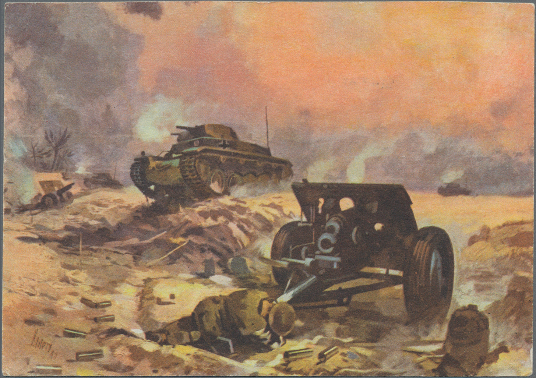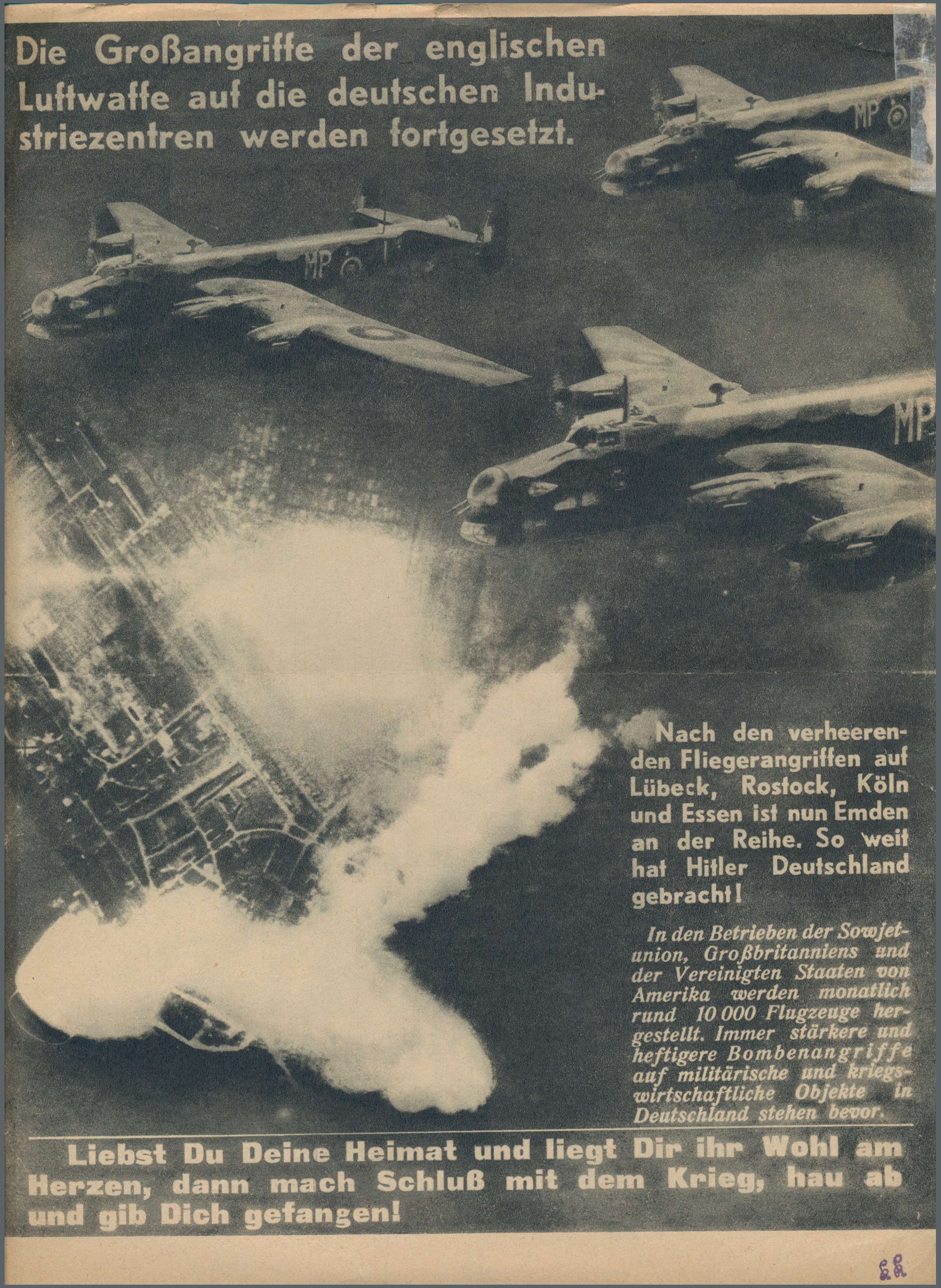 Krieges unweigerlich zu drakonischen Strafen geführt. Daher extrem selten! Zeitspuren entsprechend der Verwendung als Flugbätter (Witterungsbedingungen usw.), d. h. deutliche Spuren, Papierbrüche, Flecken. Mit Transparentpapier teils Ausbesserungen.