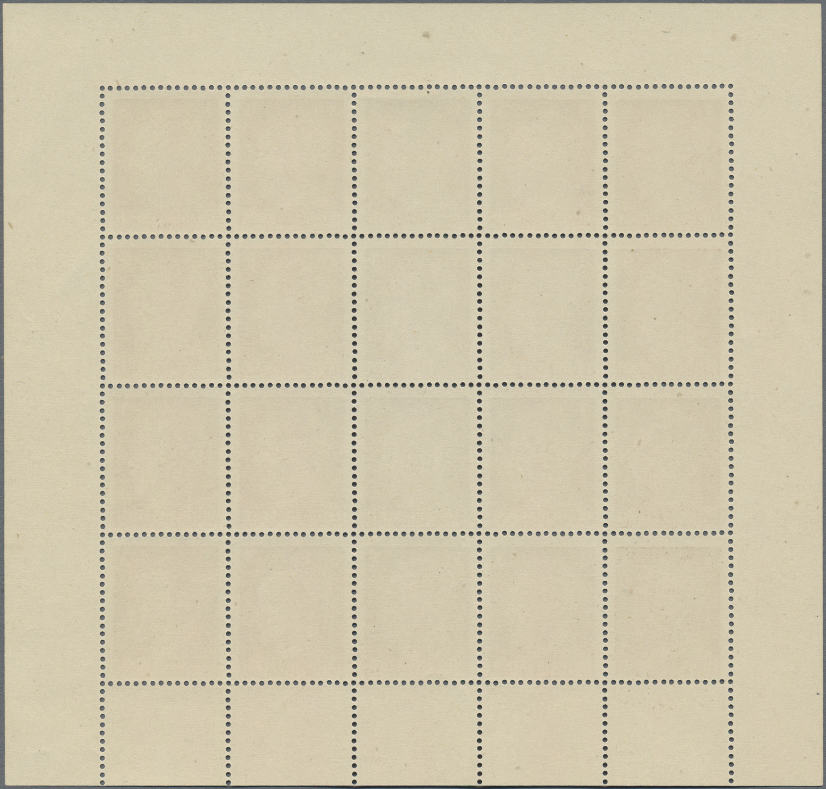 1941, Britische Fälschung für das besetzte Frankreich, Merkur 25 C. opalgün im 20er-Bogen, postfrisch, schwache Faltandeutung zwischen der 3. und