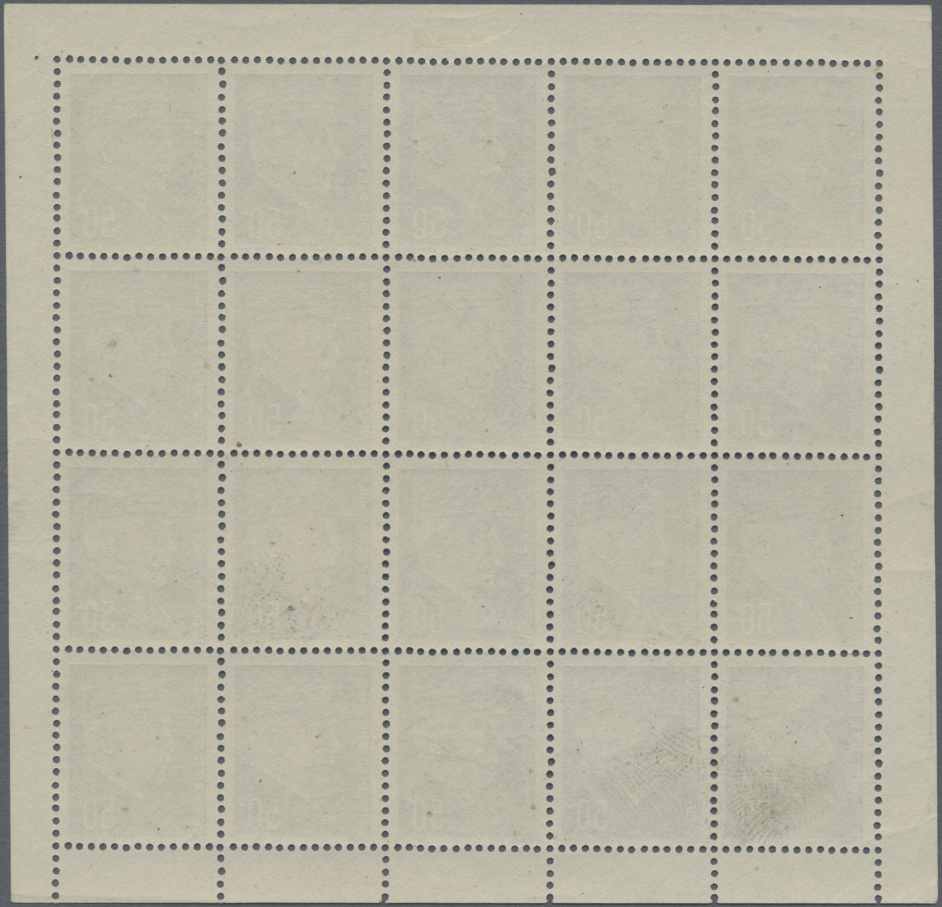 1941, Britische Fälschung für das besetzte Frankreich, Petain 50 C. schwärzlichgrün im 20er-Bogen, postfrisch, mittlere untere Marke und oberer