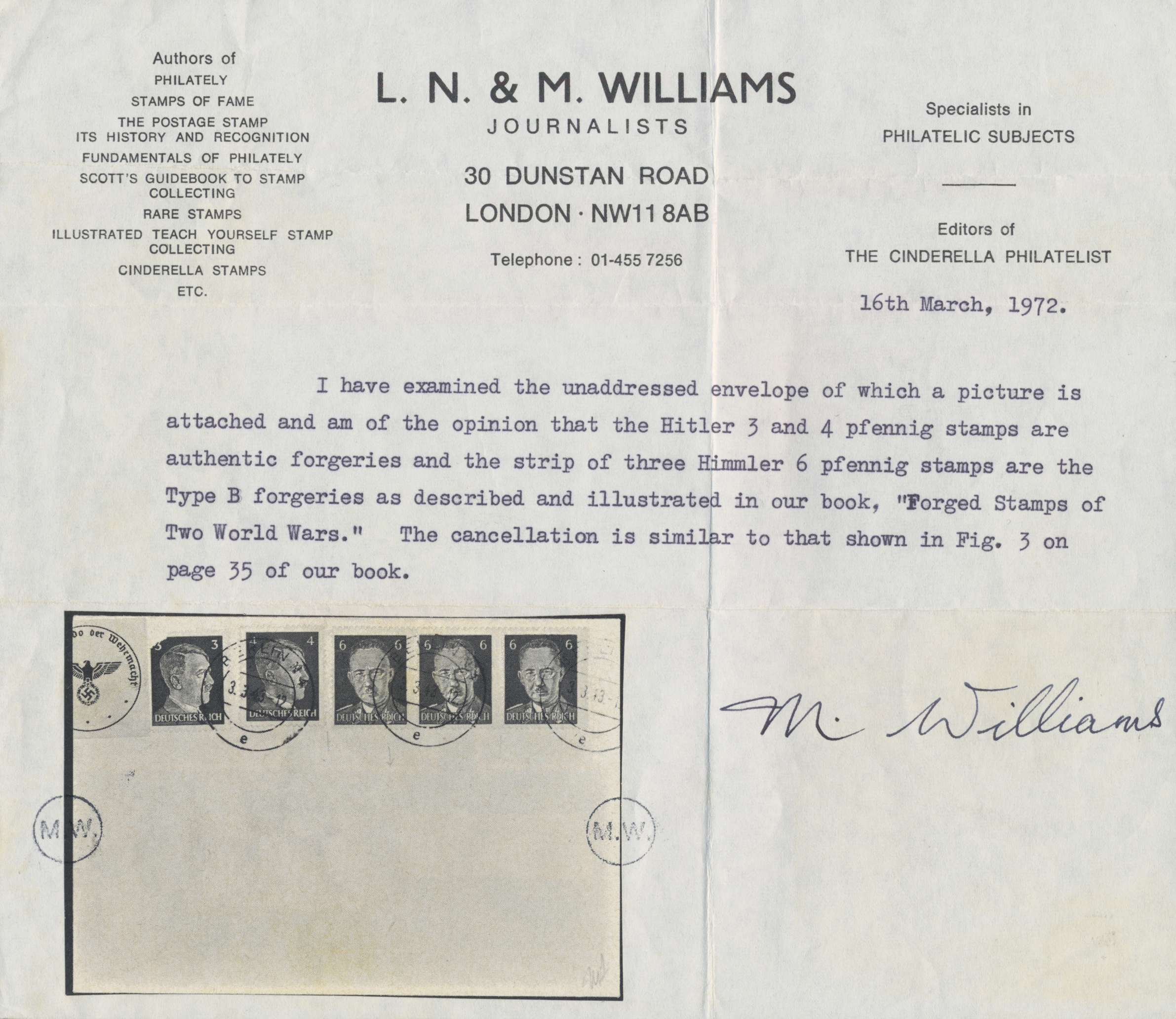 1944, Amerikanische Fälschung für Deutschland, Hitler 6 Pfg. grauviolett, zwei Werte auf adressiertem Brief mit falschem Stempel 9.4.45, übliche