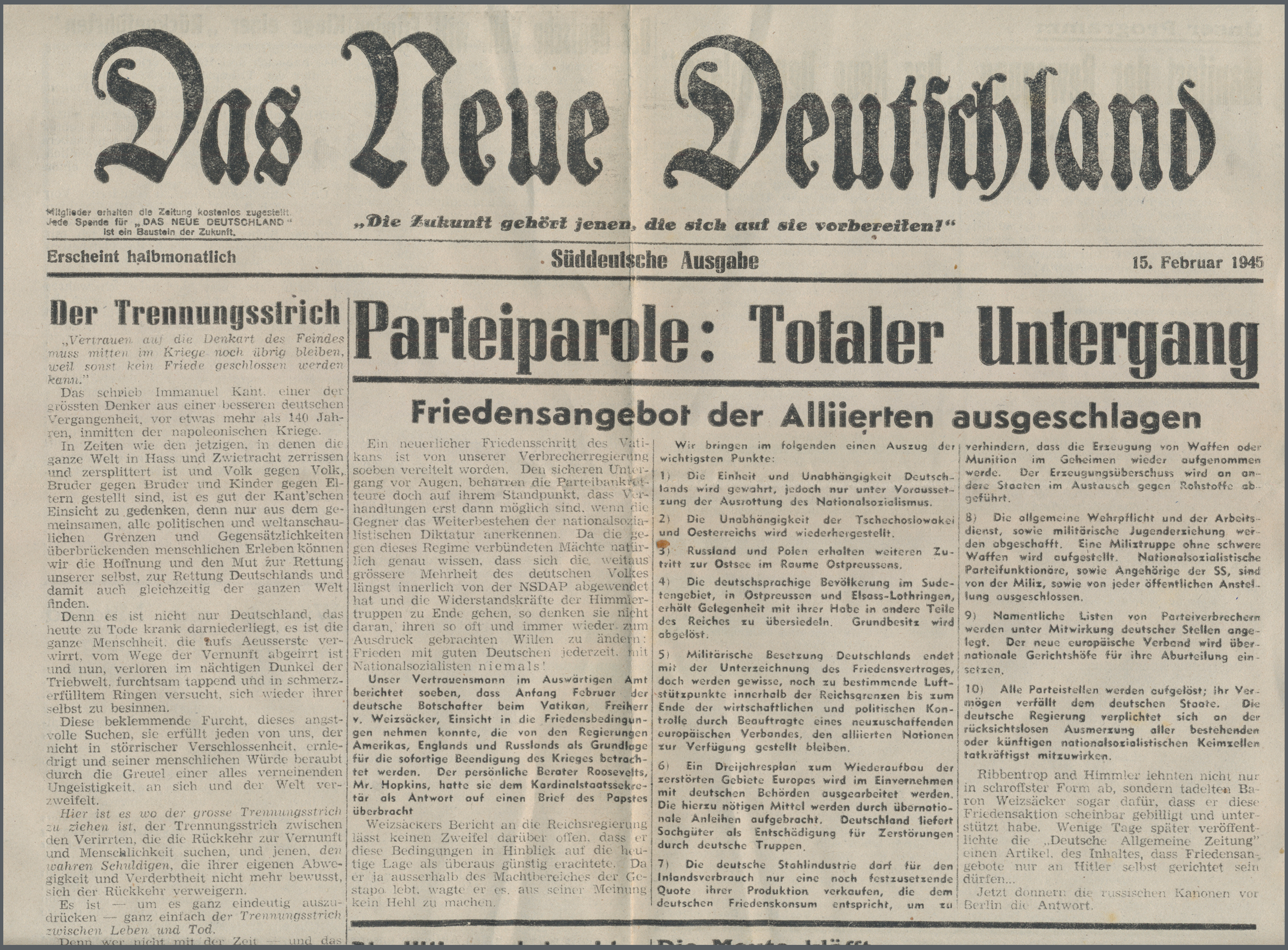 und Aufmachung ähnlich den tatsächlichen deutschen Illustierten der Zeit, jedoch Inhalt teils subtile, teils offensichtliche sowjetische Propaganda. Beides ORIGINALE in DIN A4, je 4 S. Besitz hätte als Feindpropaganda in Deutschland während des