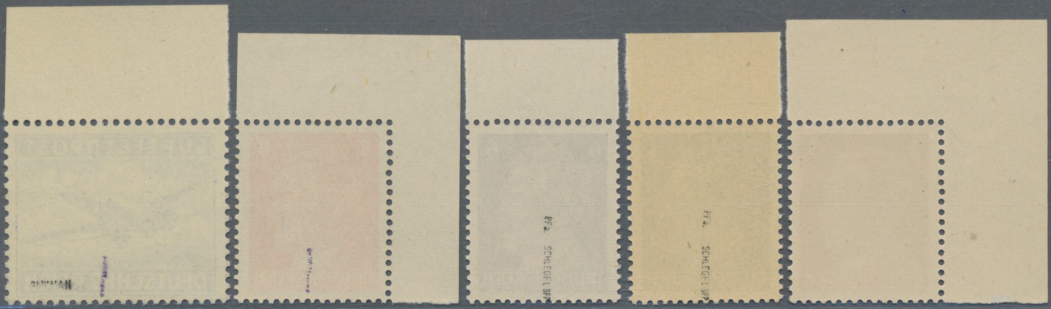 1944, Britsche Fälschung für Deutschland, Hitler 3 Pfg. bis 8 Pfg. und Luftfeldpost-Zulassungsmarke, fünf Werte vom Bogenrand, postfrisch, meist