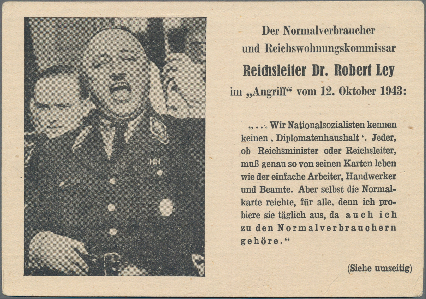 1941/1942, Sowjetrussische Fälschung für Deutschland, Ganzsachenkarte 6 Pfg. Hindenburg "Brot, Brot!" mit eingedrucktem Luftpost-Zettel mit