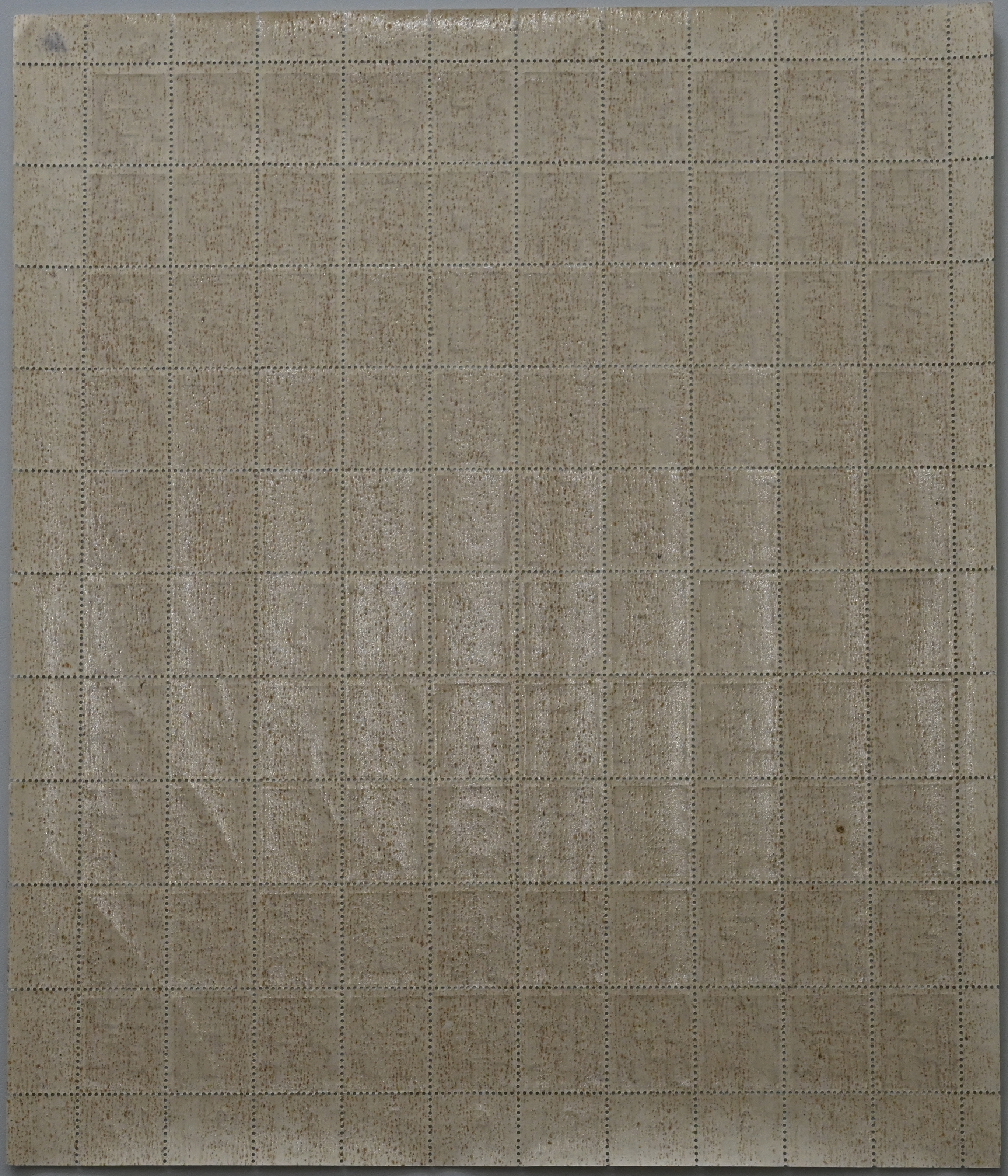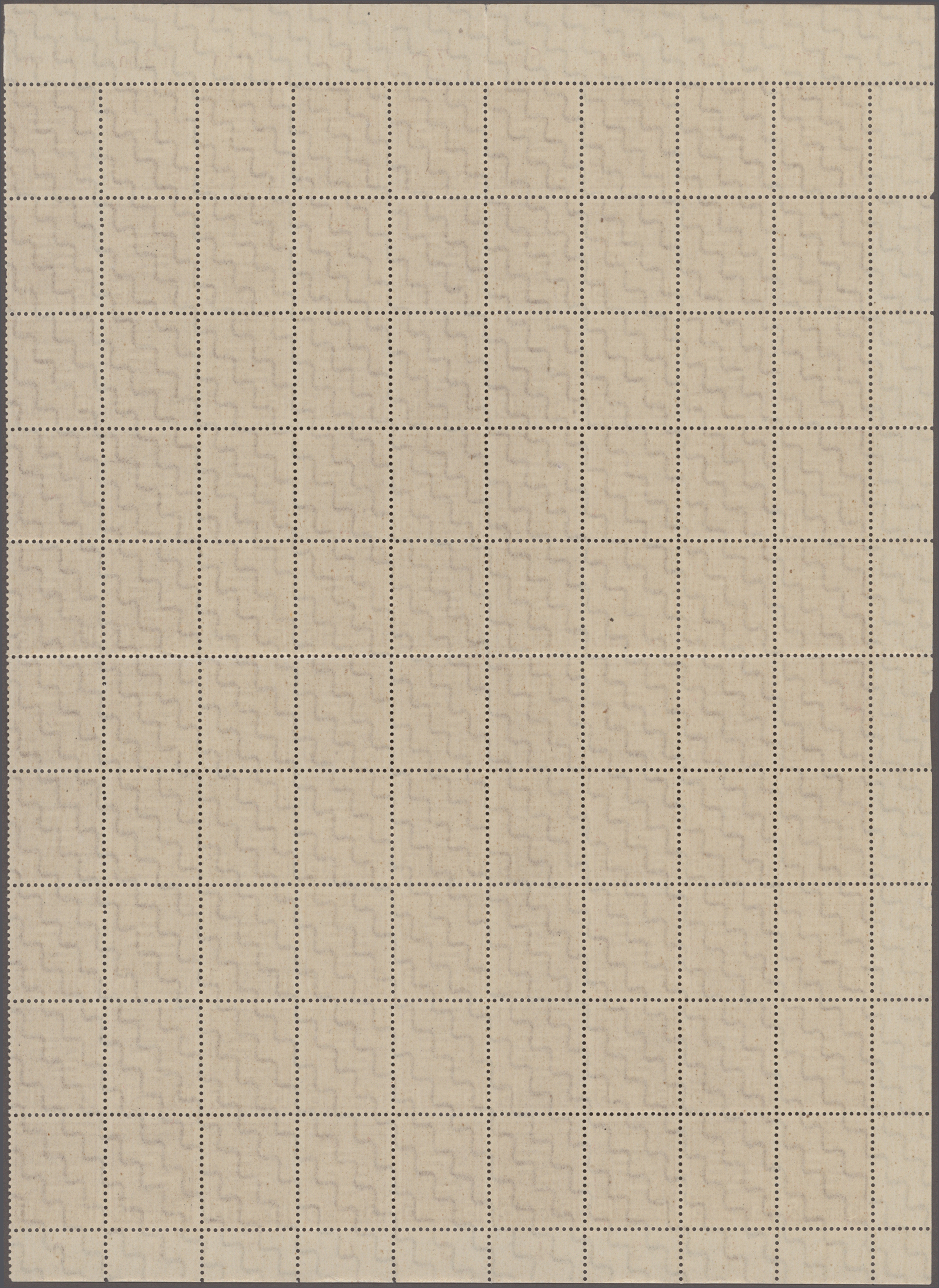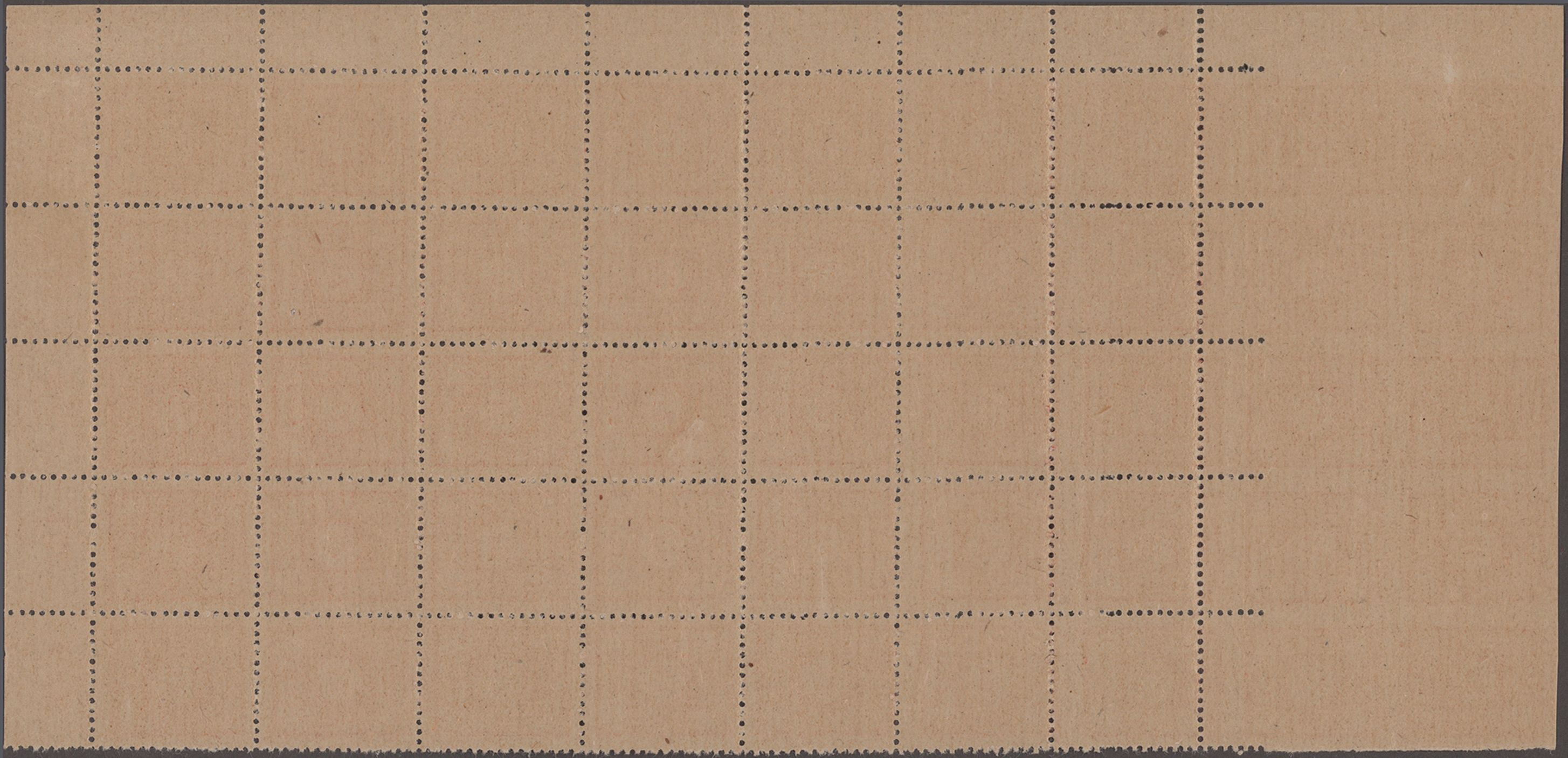Verzähnung, die beiden unteren Reihen (zehn Marken) sind ungezähnt mit teilweise in die senkrechten Zwischenräume hineinragender Zähnung (dadurch senkrecht teilgezähnt), rechts mit sauberer Rißtrennung, postfrisch, unsigniert.