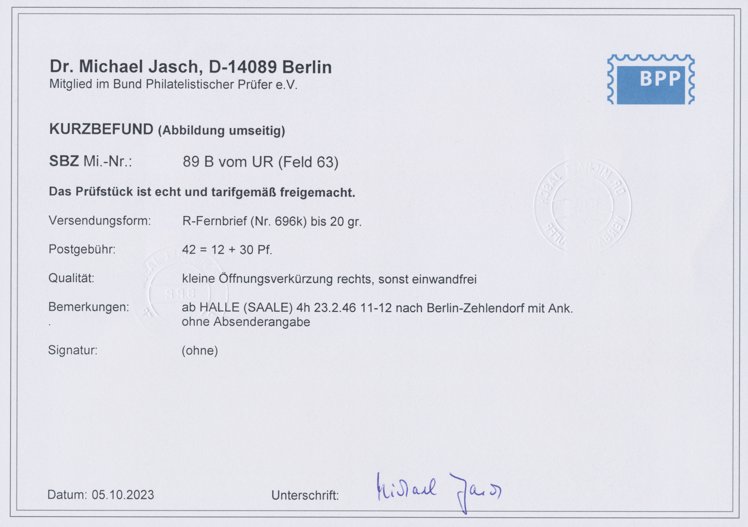 geworden...". SBZ-Seltenheit für die große Sammlung! (Mi. 25.000,- €)