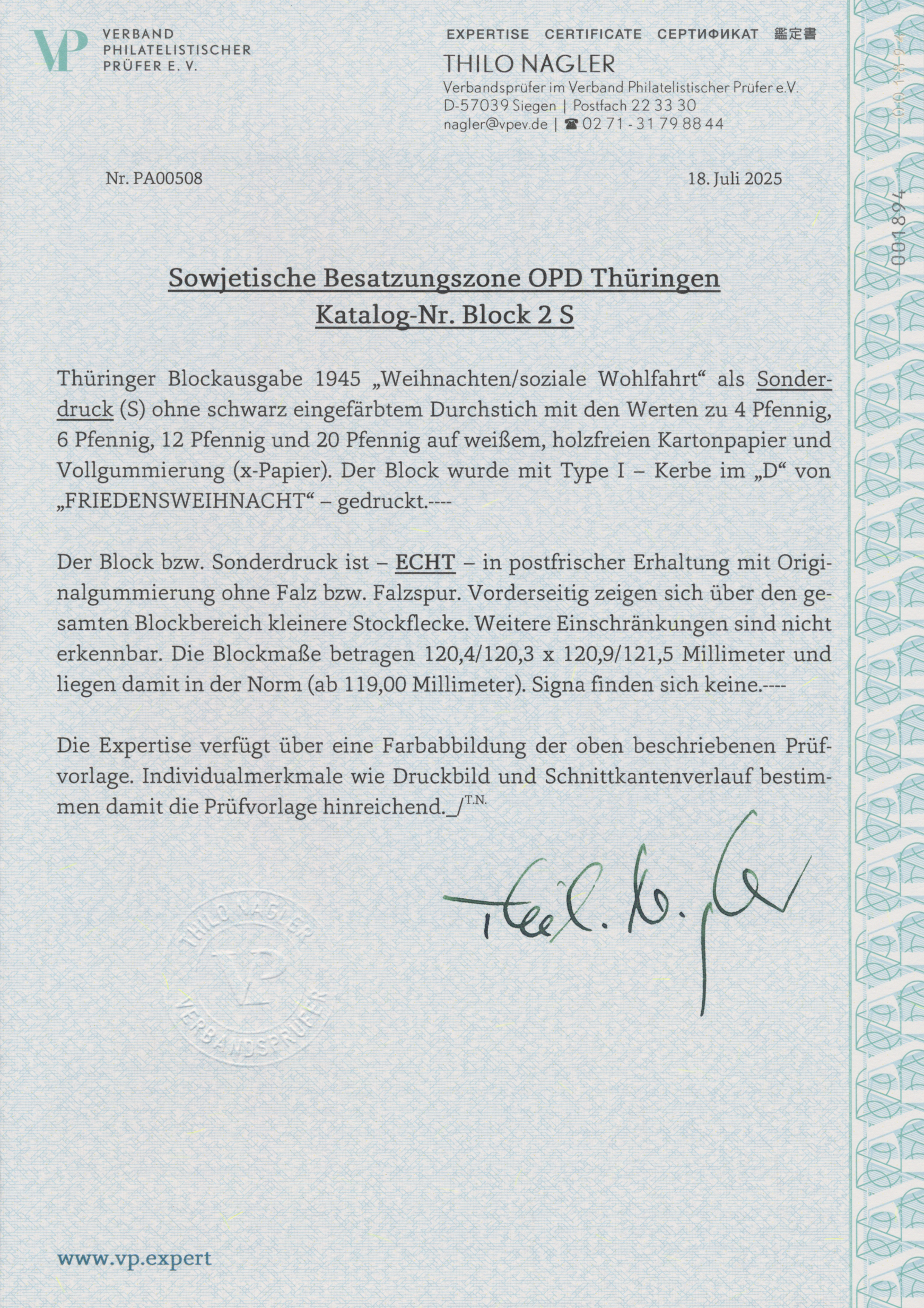 1945, Großer Weihnachtsblock auf gelblichgrauem Papier in Type I, mit Tagesstempel "ERFURT 30.12.45" entwertet, in Originalgröße. Vorderseitig leicht