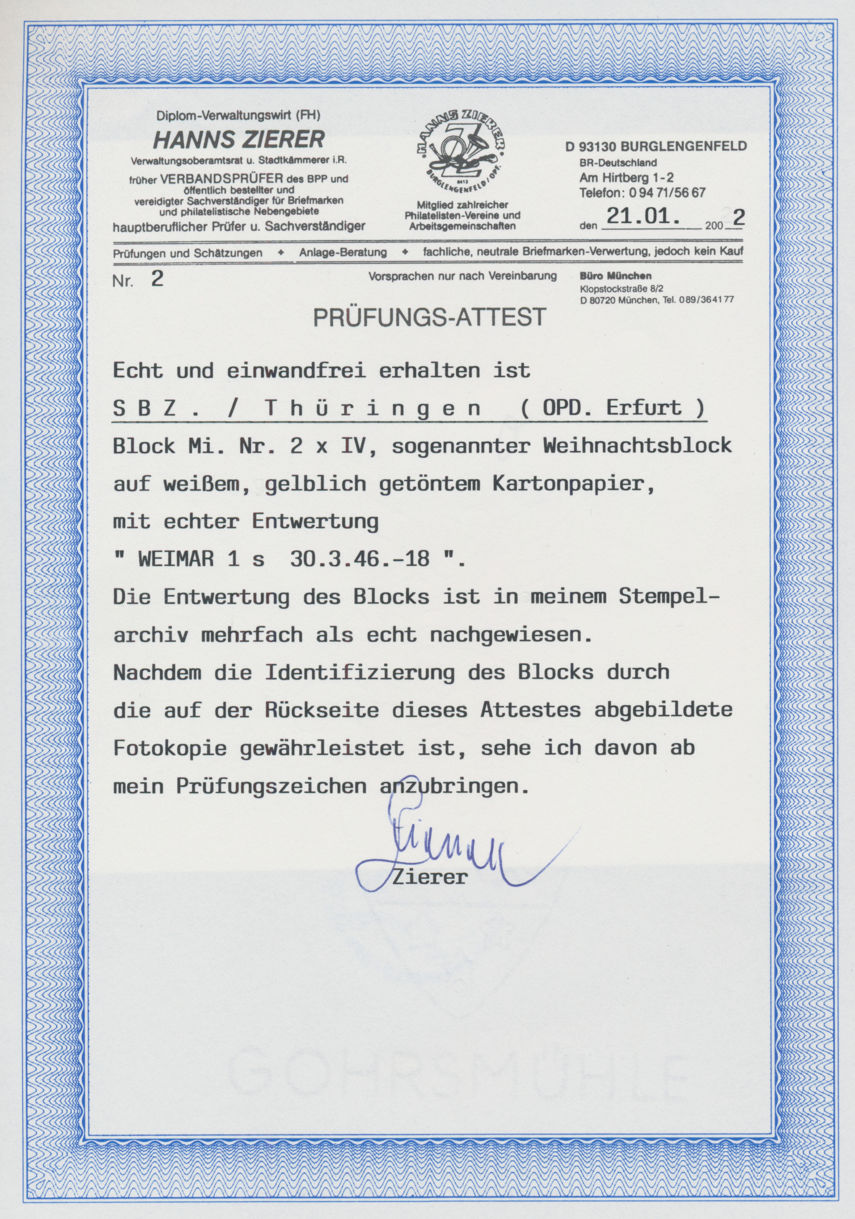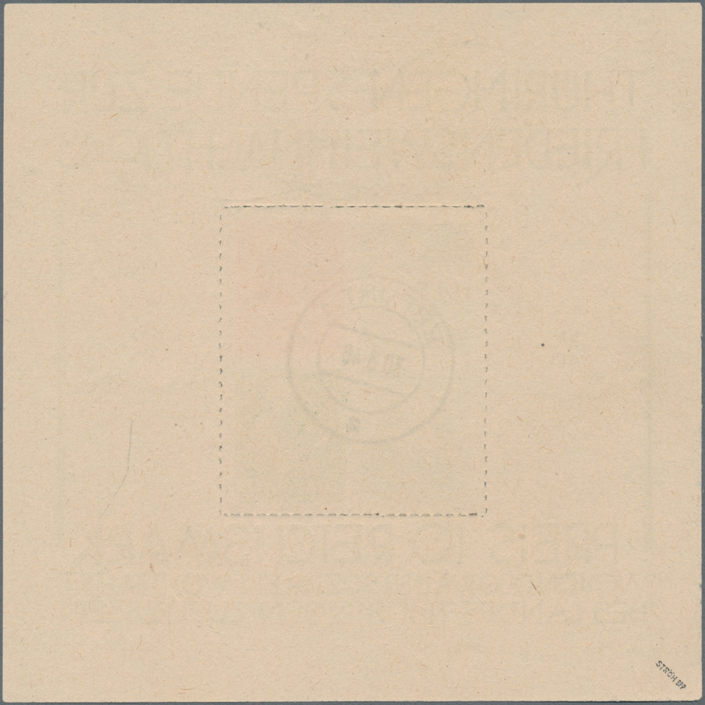 1945, Großer Weihnachtsblock auf gelblich getöntem Kartonpapier in Type IV, sauber entwertet mit "WEIMAR 30.03.46.-18" in einwandfreier Erhaltung.