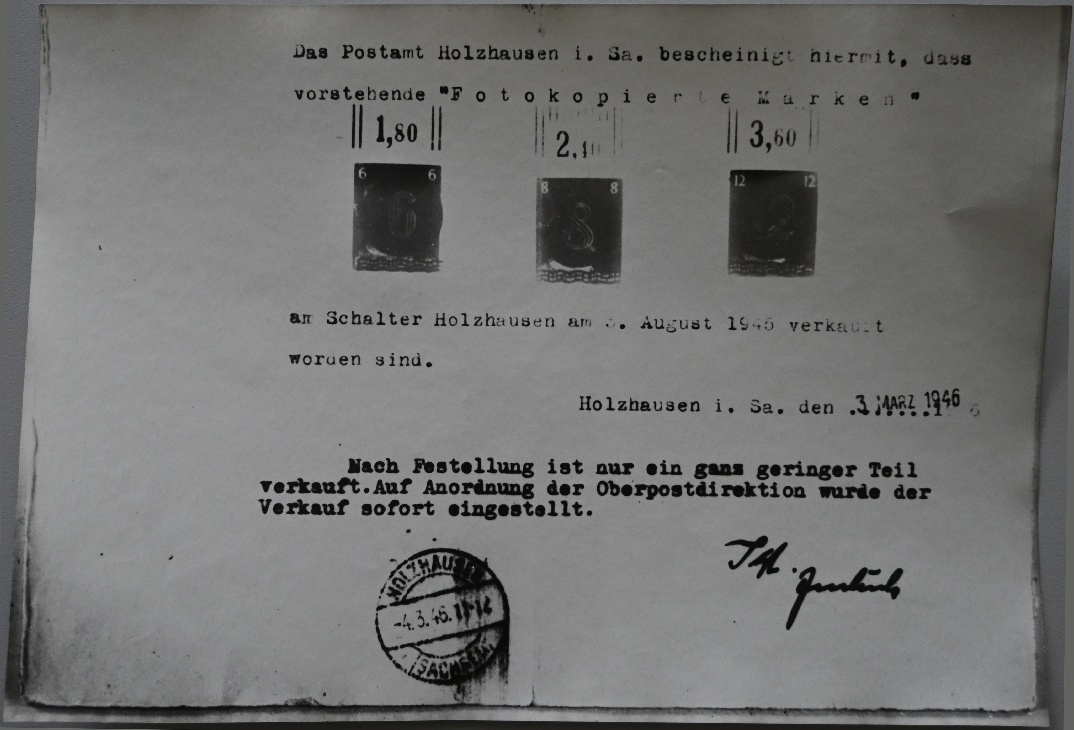 1945, 6 Pf, 8 Pf und 12 Pf ohne Genehmigung zum Schalterverkauf gelangte ÜBERDRUCK-Ausgabe auf Hitler-Freimarken (sog. "Holzhausen-Ausgabe" der