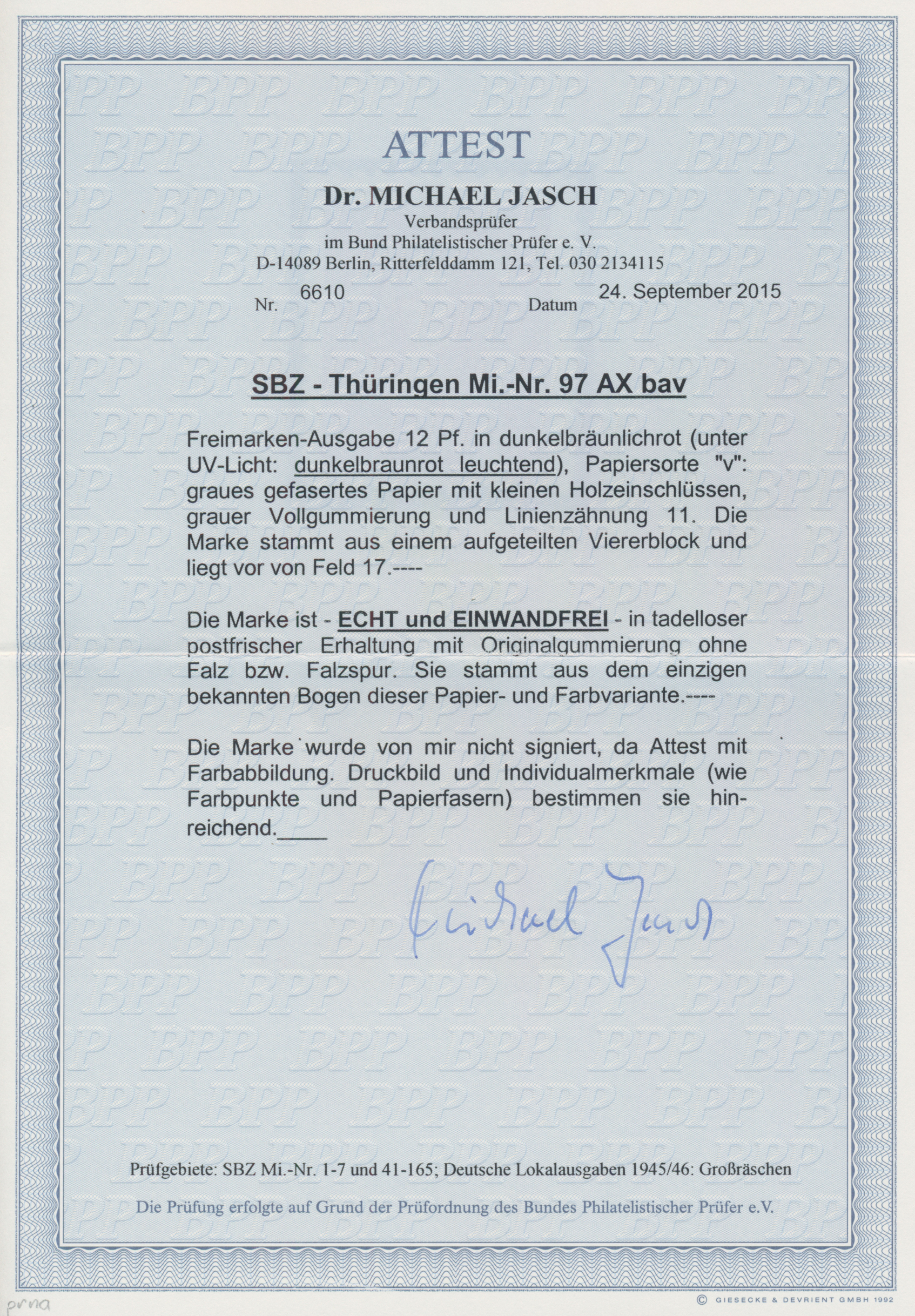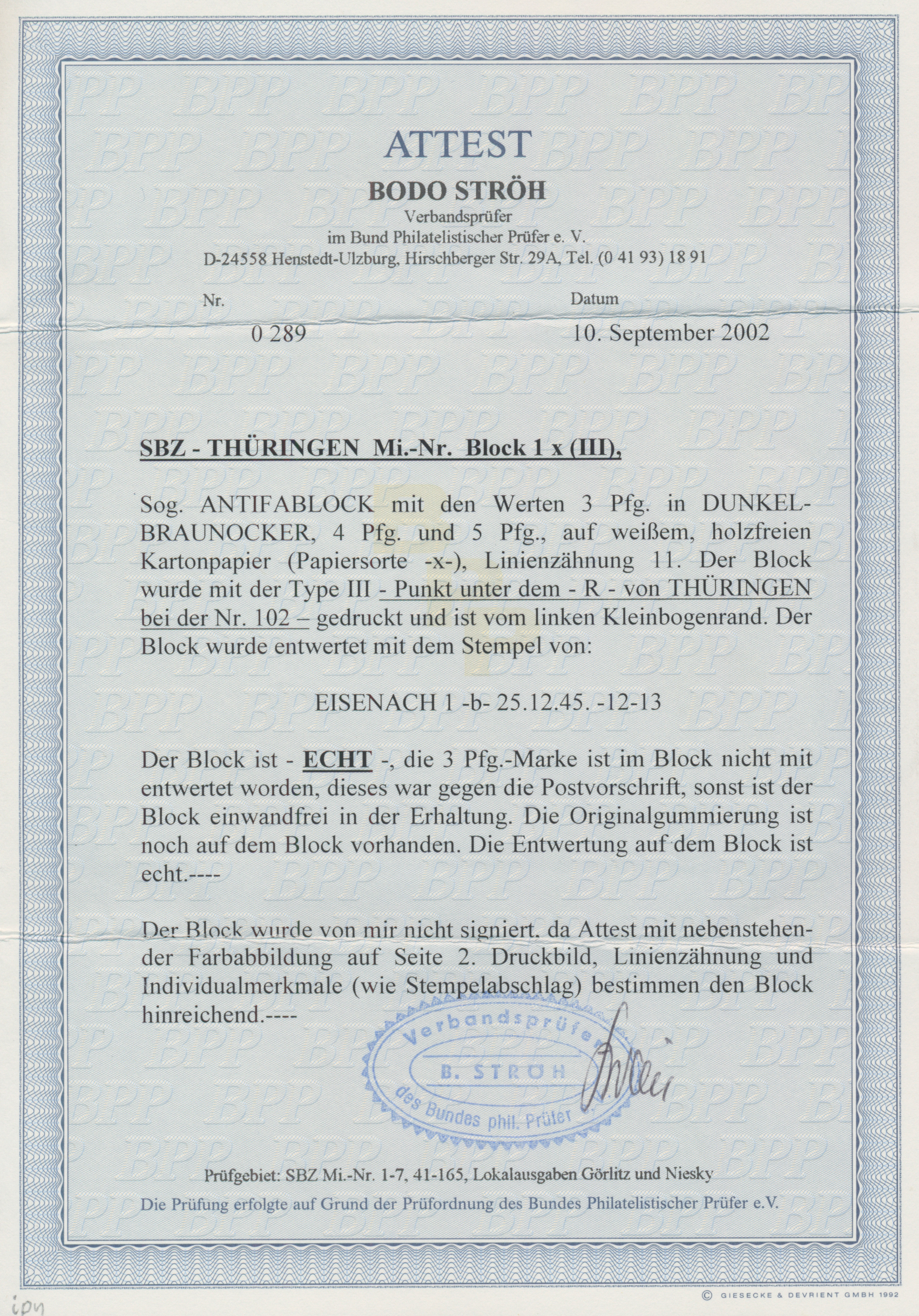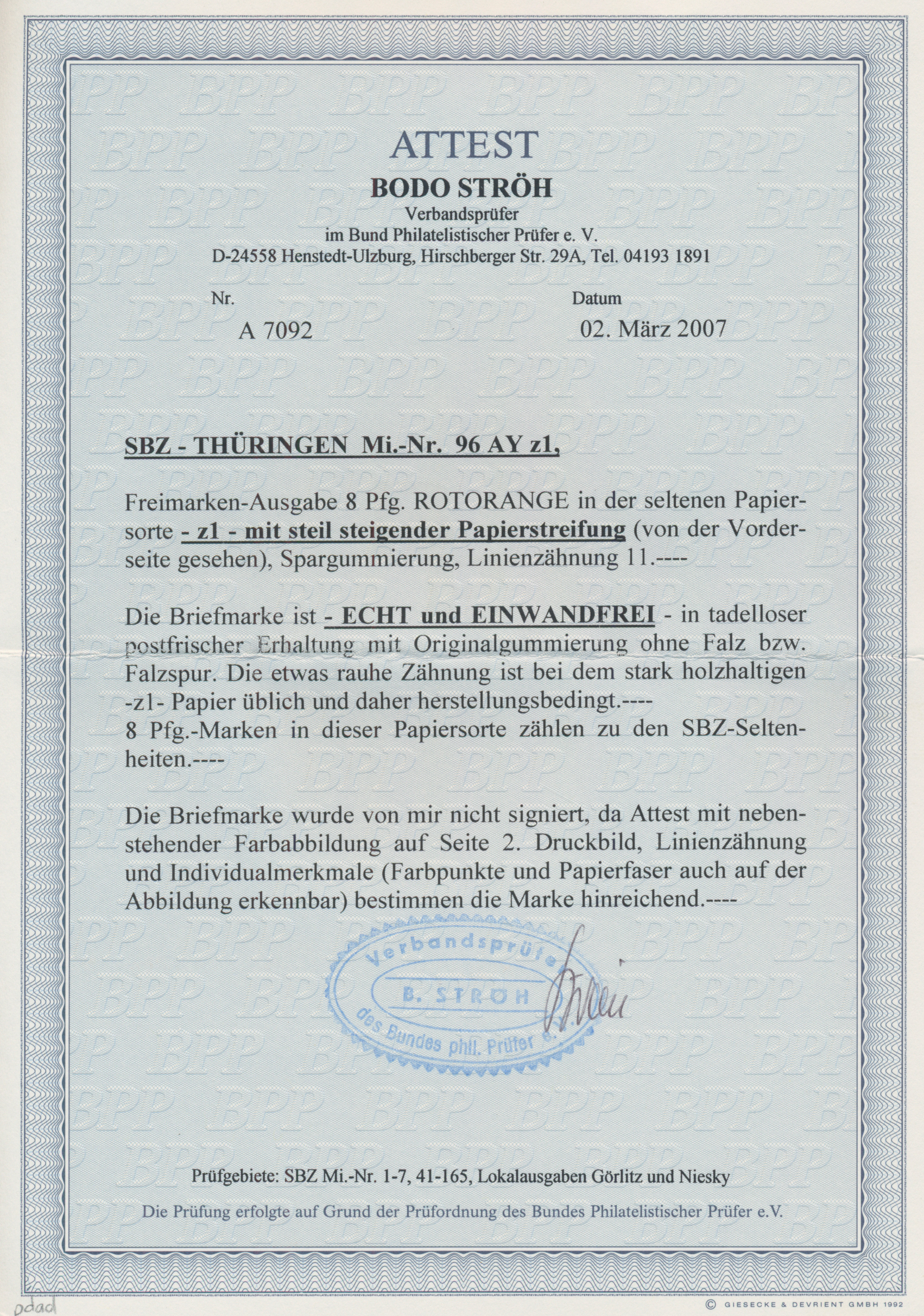 minimaler Stockpünktchen bildseitig ist optisch unauffällig und nur der guten Ordnung halber erwähnt. Als "Sonderdruck" bedeutende und beliebte SBZ/Thüringen SELTENHEIT!