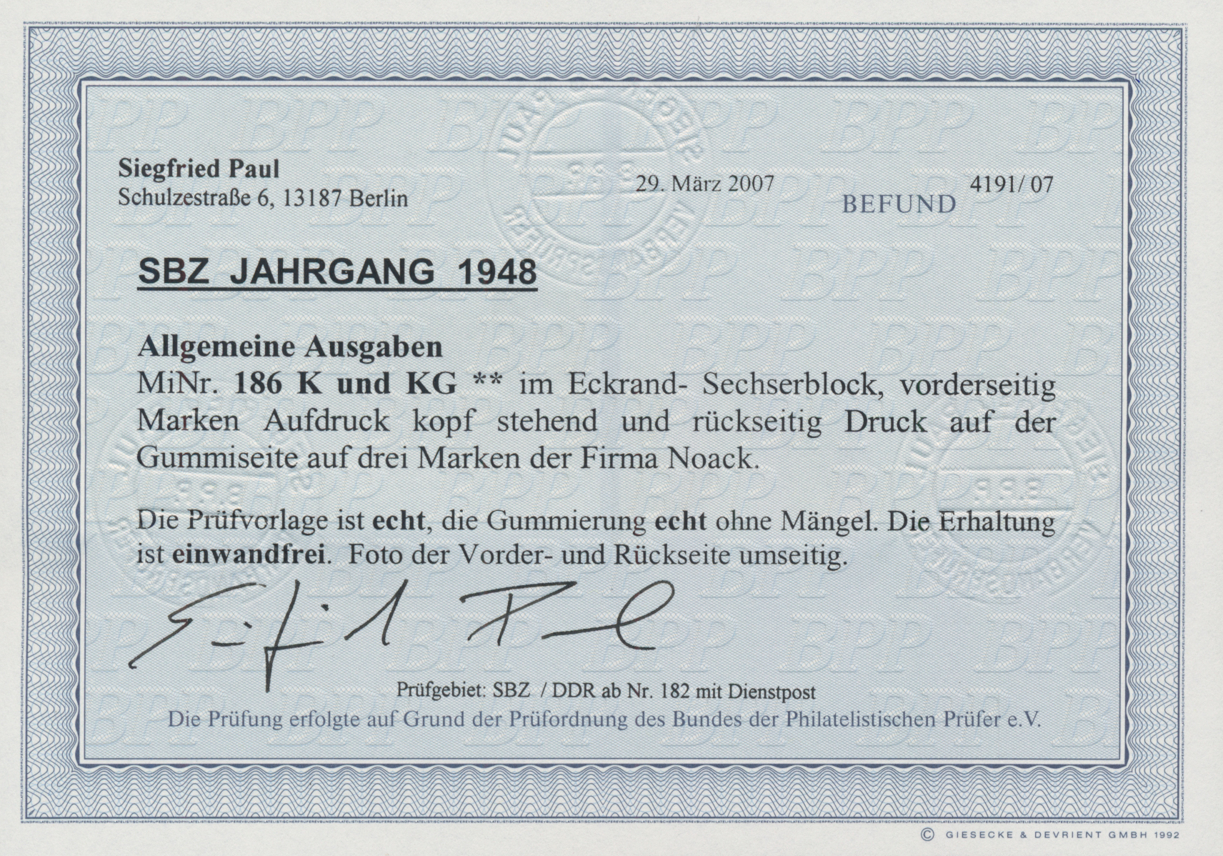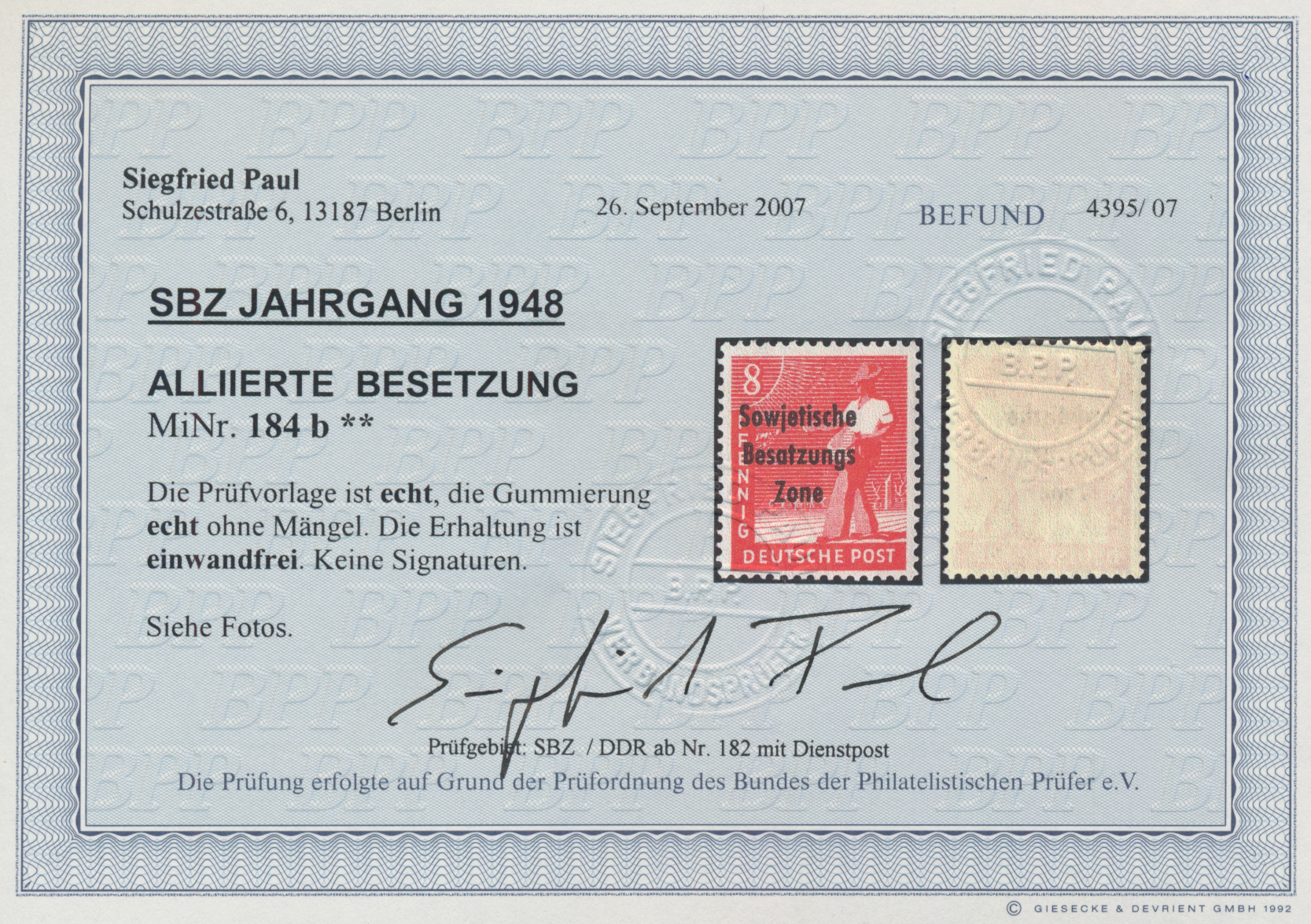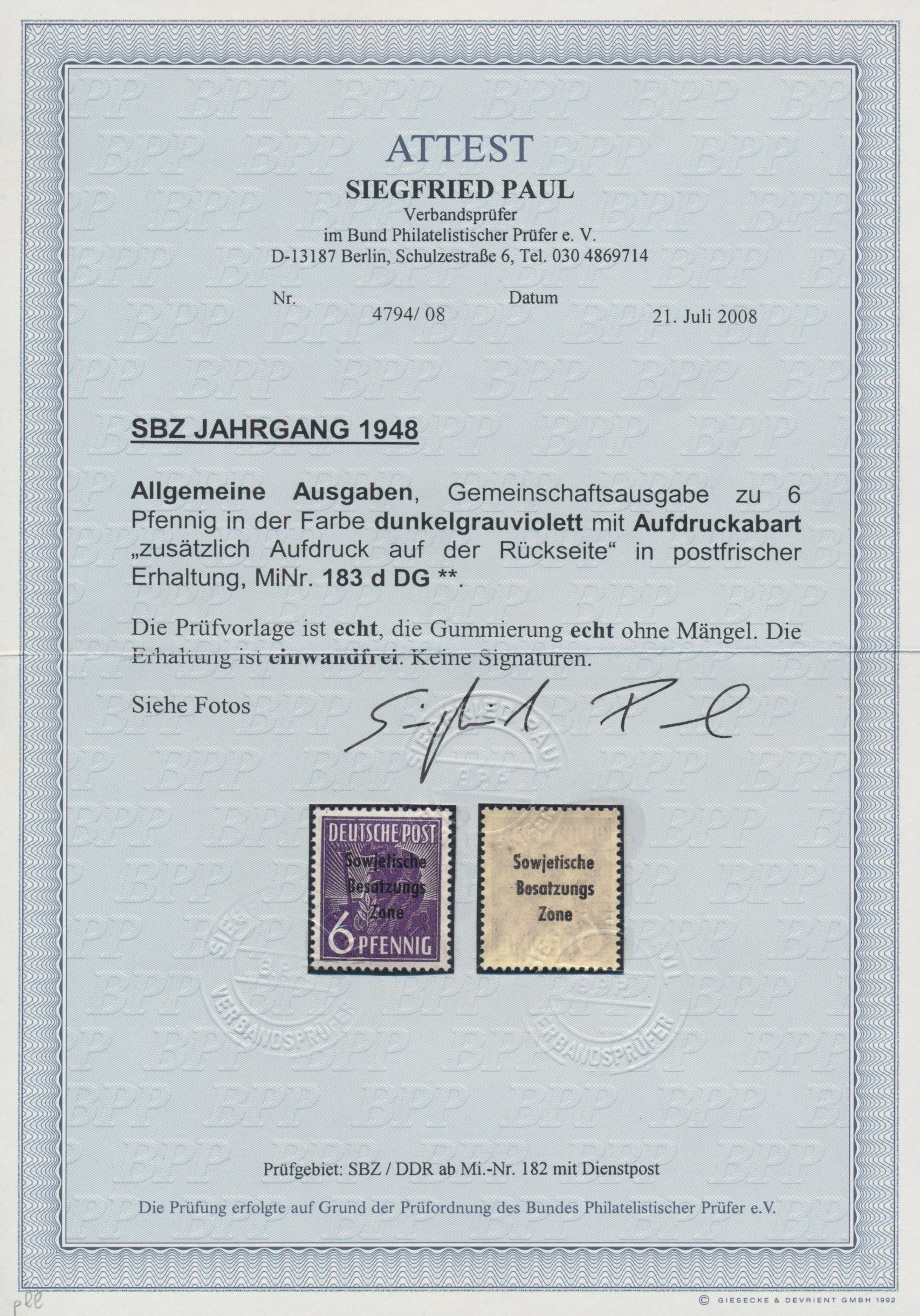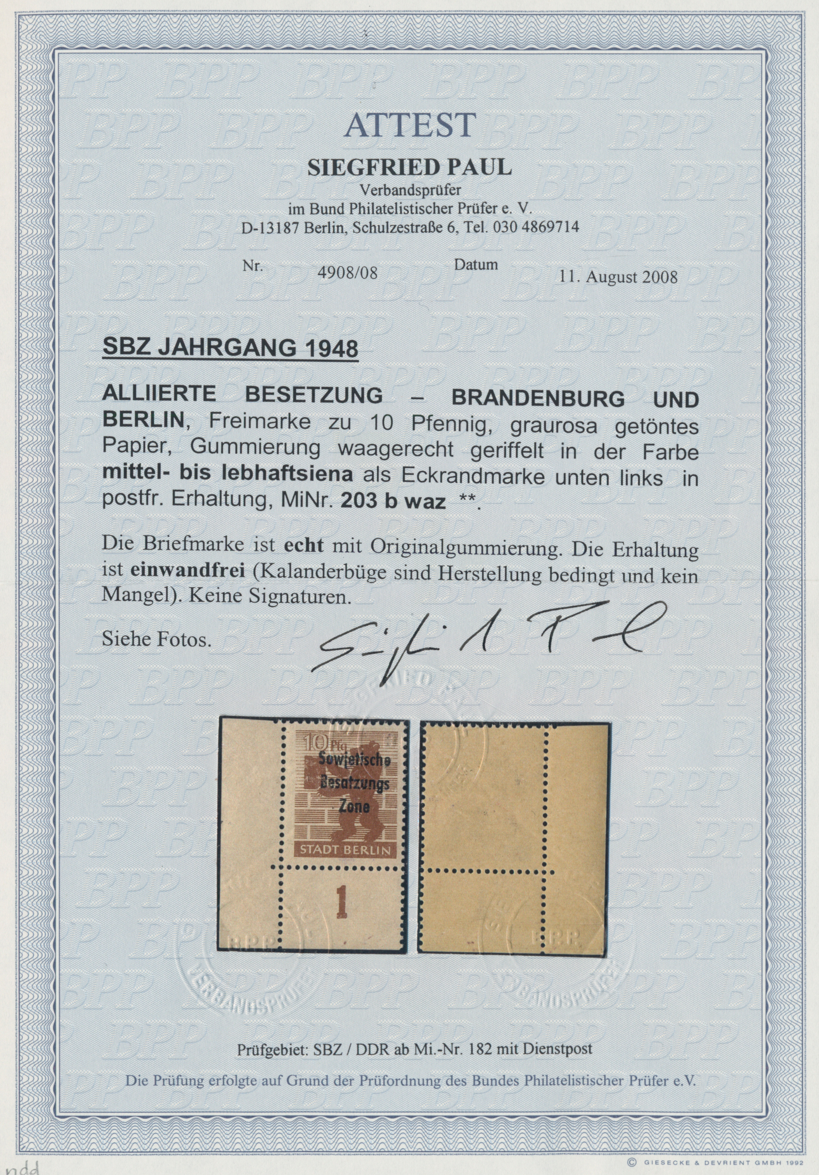 Foto-Attest Paul BPP (2008), Mi 800,-
