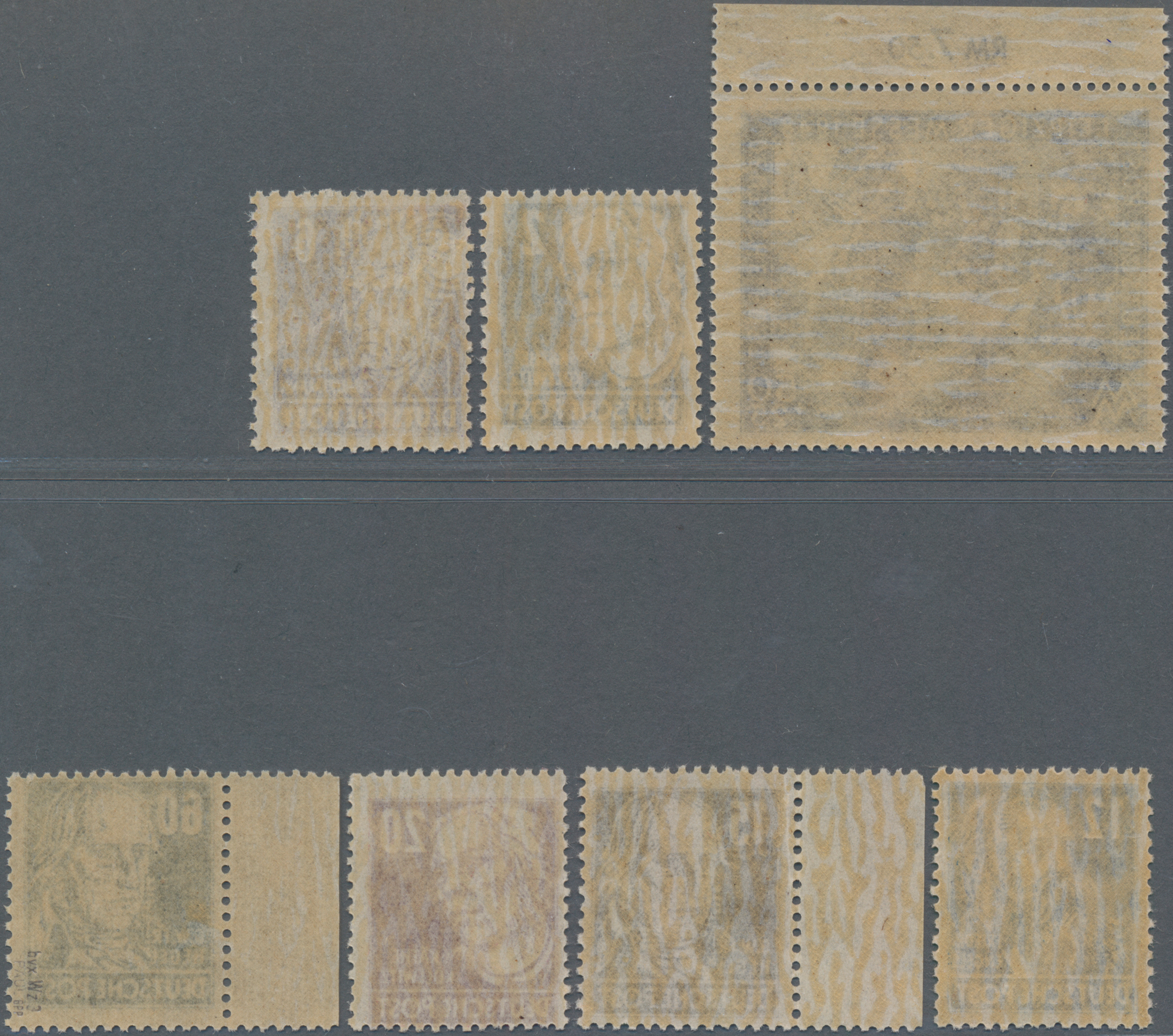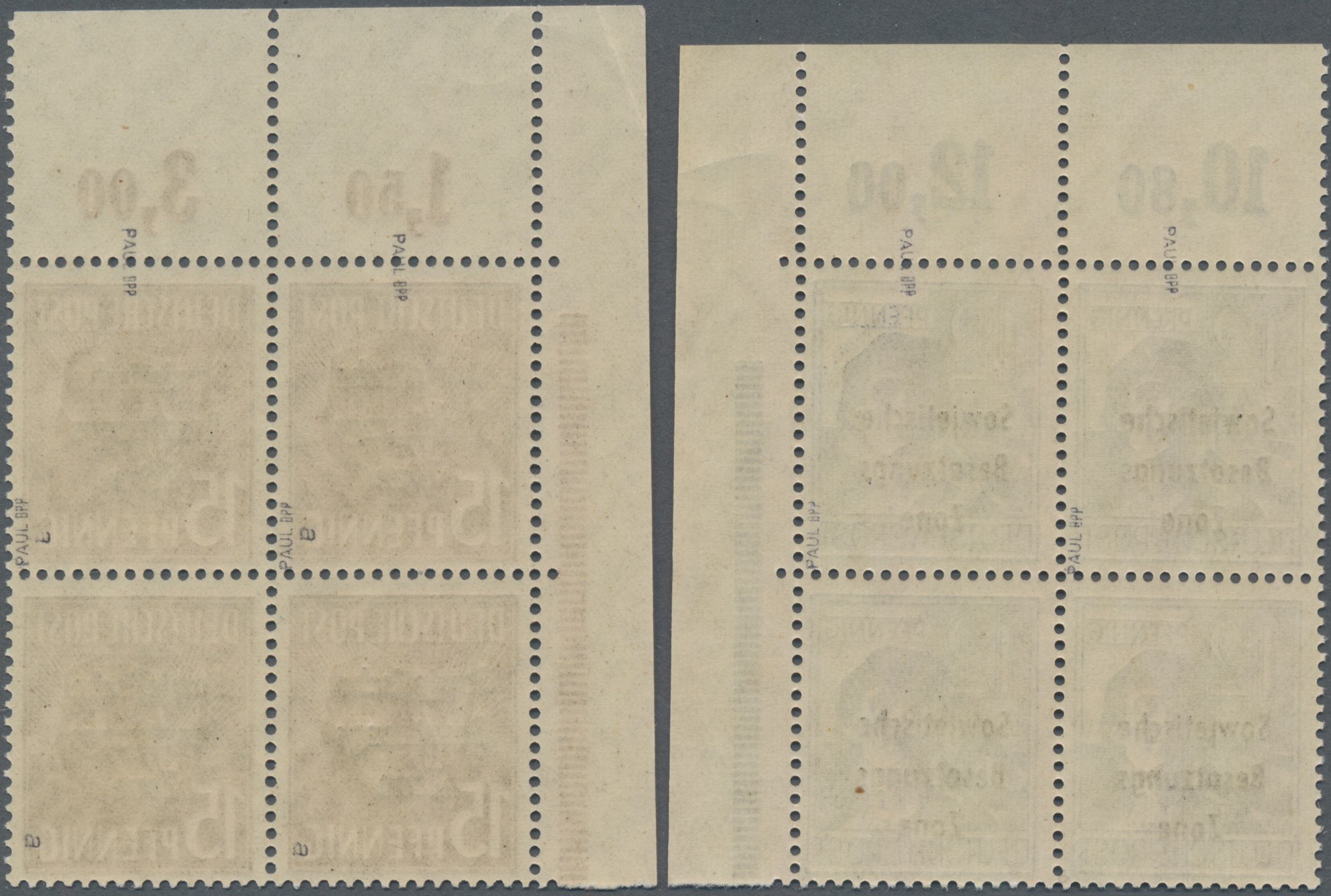 Druckereizeichen neben Feld 21, einmal mit Druckvermerk unter Feld 25, tadellose Erhaltung (Kalanderbüge sind herstellungsbedingt), je signiert Paul, BPP. (Mi. 700,- €)