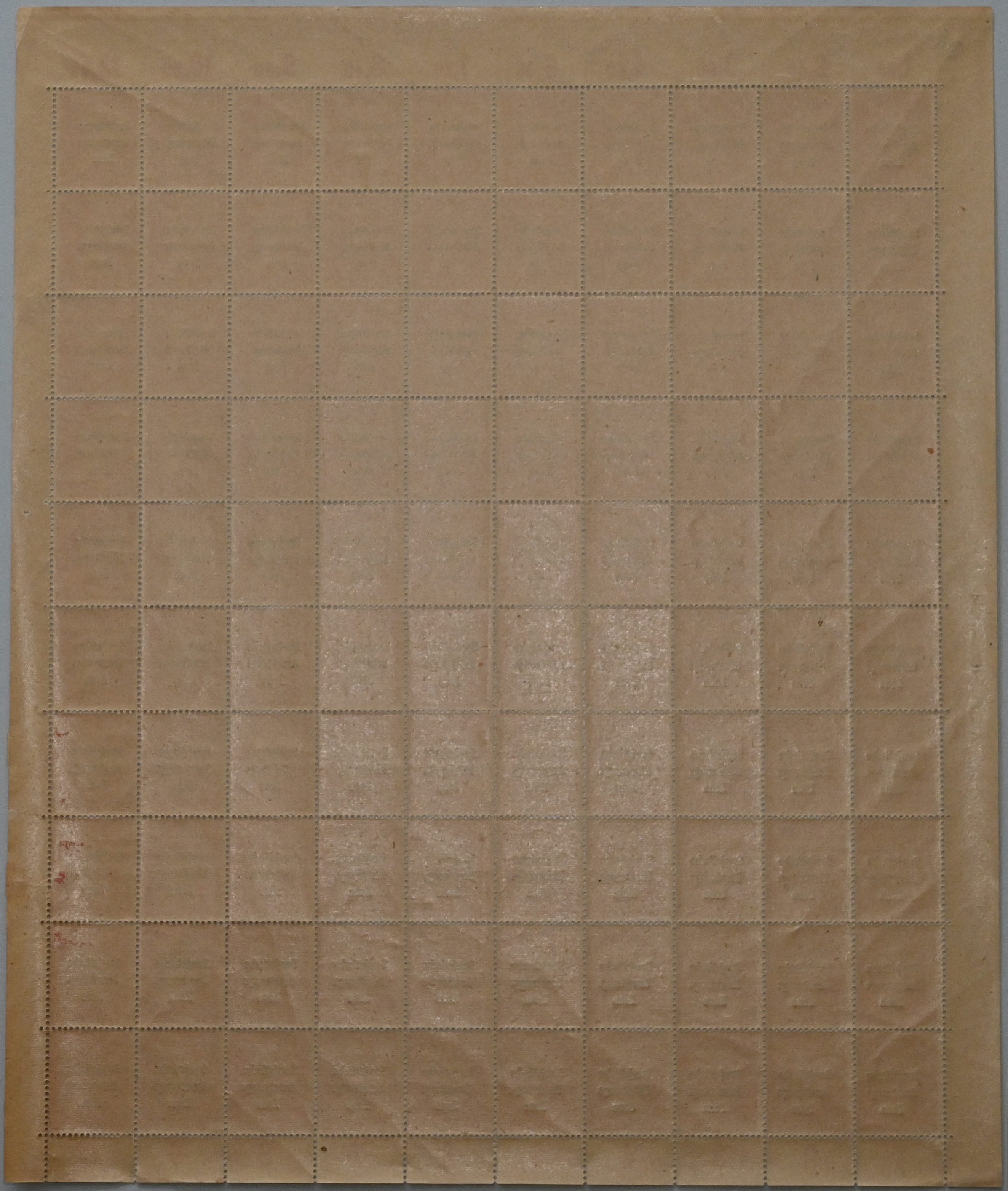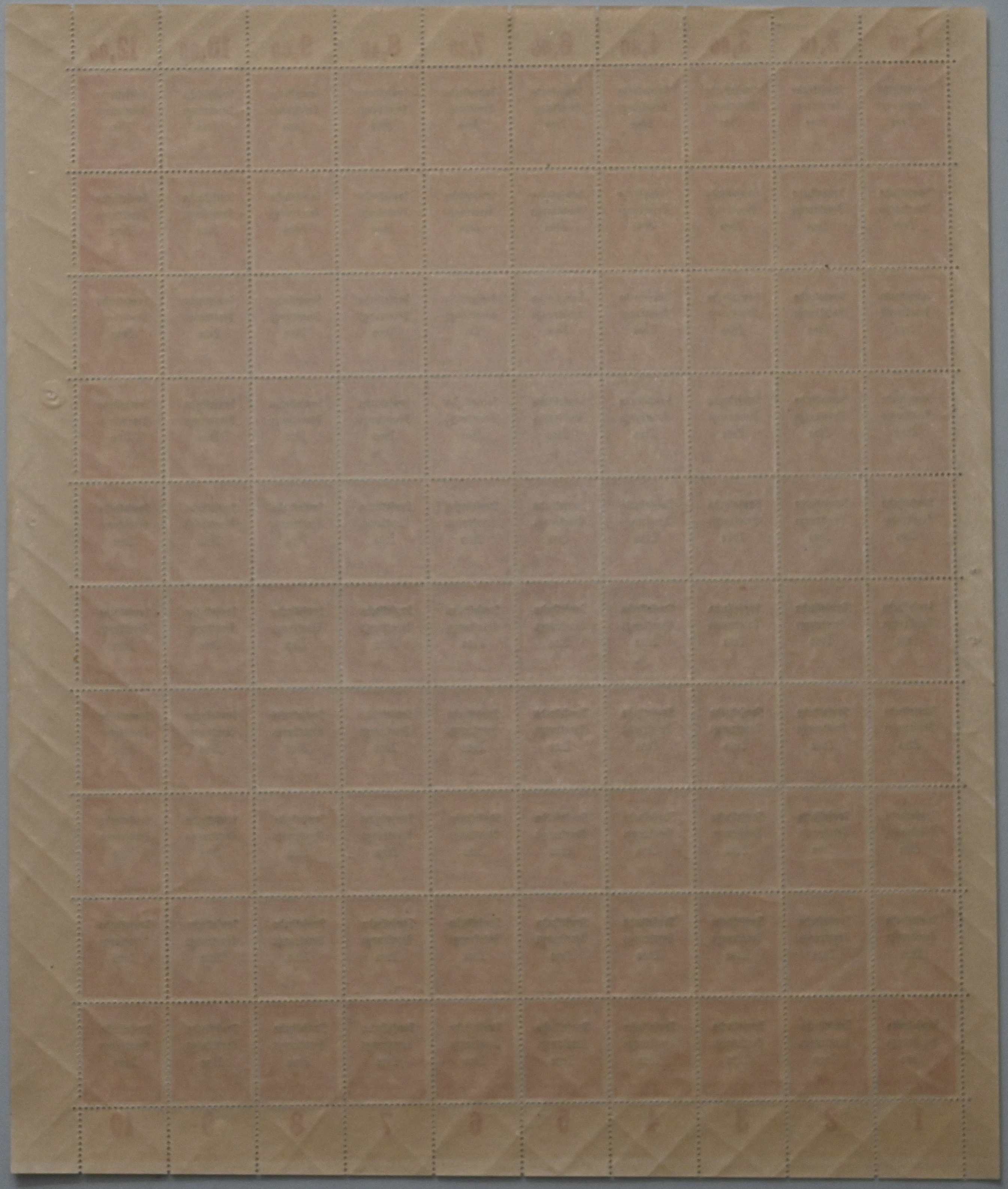 1948, 12 Pf Bär mit Maschinenaufdruck im postfrischen 100er-Plattendruck-Bogen mit dgz. Oberrand, dabei auf Feld 51 der sehr seltene