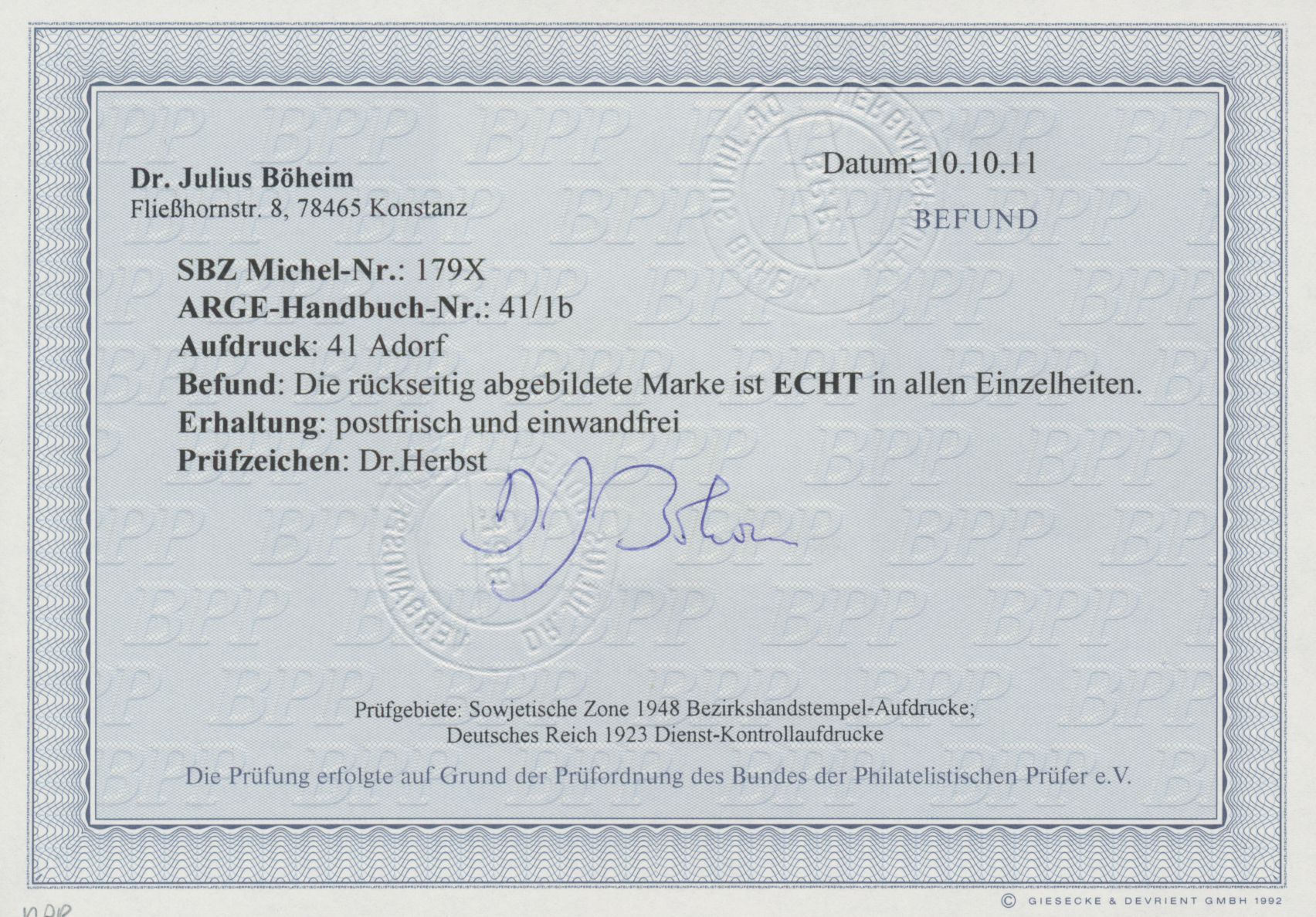 "echt und einwandfrei". (Mi. 650,- €)