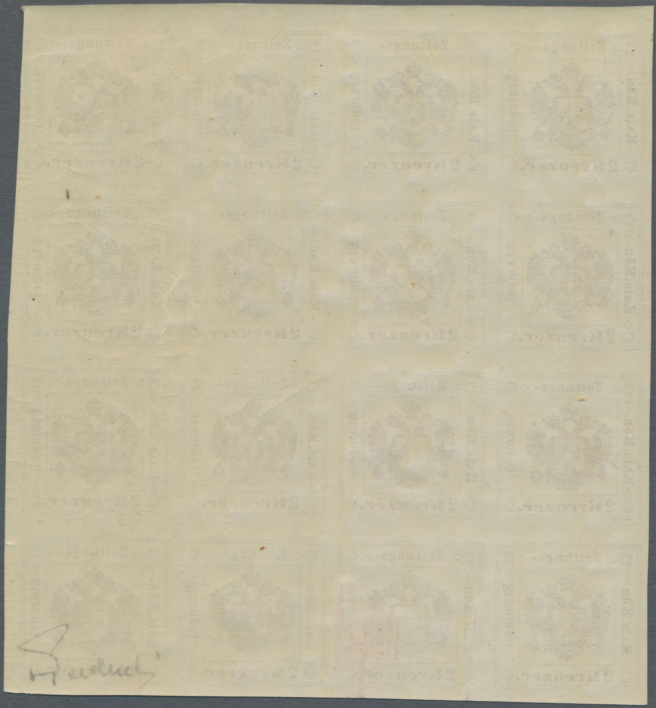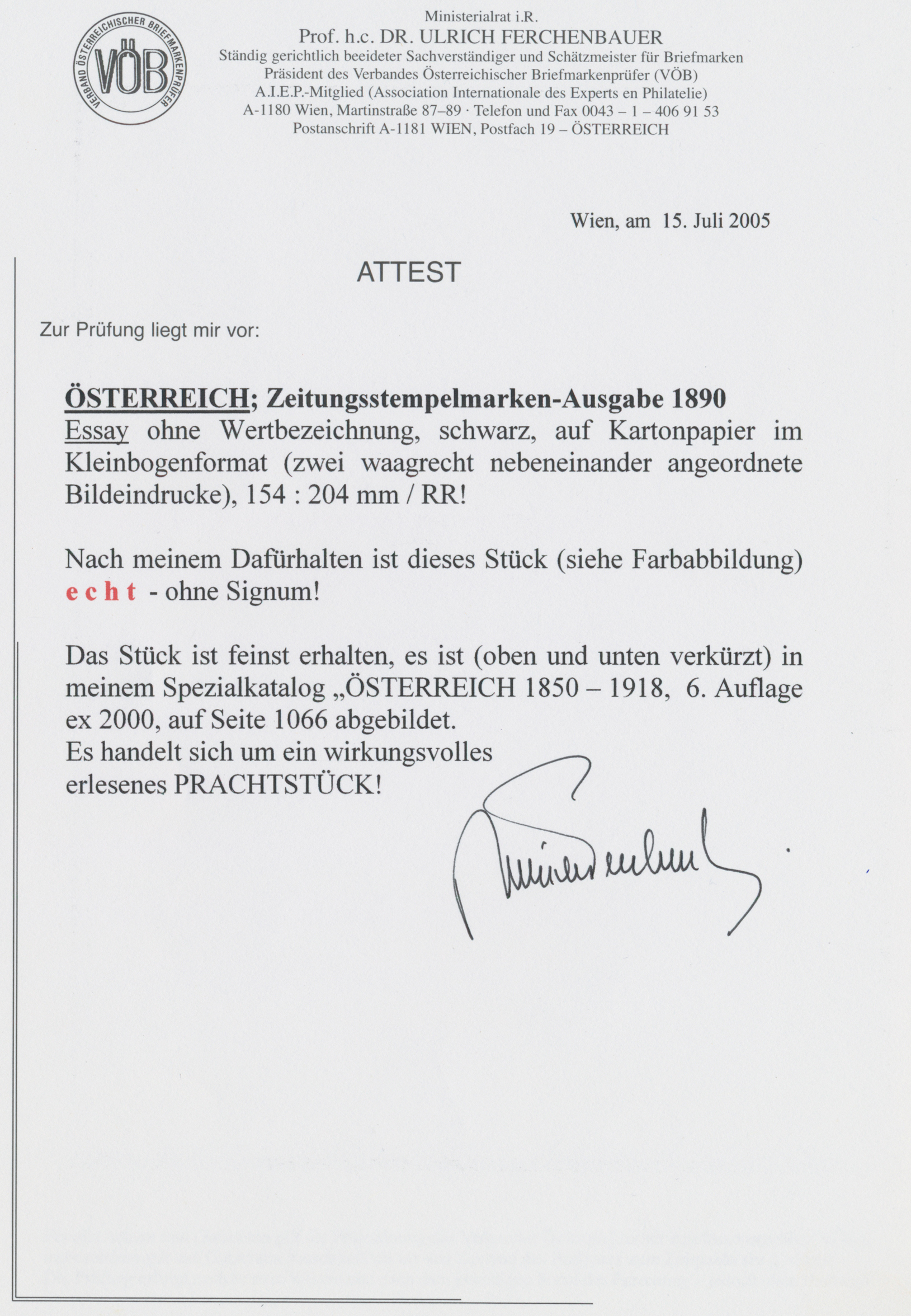 Kartonpapier im Kleinbogenformat (154 : 204 mm). Gute Erhaltung. Fotoattest Dr.Ferchenbauer. Der zentrale Teil dieses Essays ist im Ferchenbauer-Katalog, 6.Auflage, auf S.1066 abgebildet. RR!