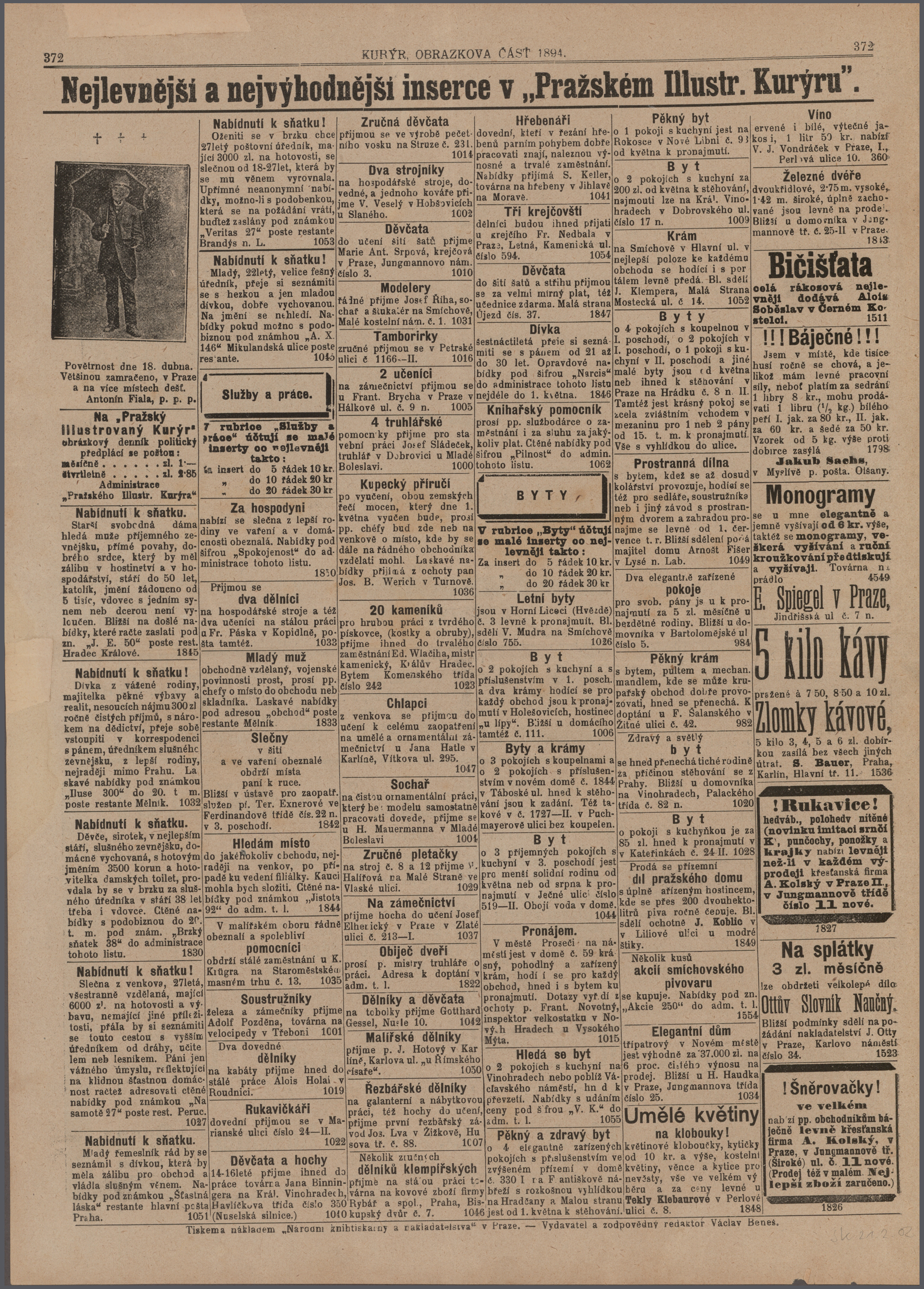 1885/1894, Signette "Wappenadler im Doppelkreis" in BLAU auf kompletter Zeitung "KURÝR" (Ranni = Morgenausgabe) vom 18.April 1894. Es sind nur