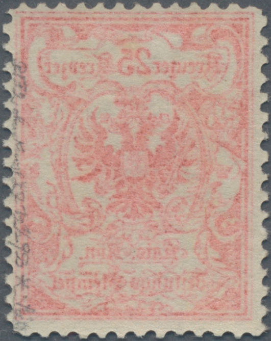 1890, 25 Kr rosarot, gez. 12 ½, mit Plattenfehler "fehlender Punktanstrich bei der Ziffer 2", tadellos postfrisch, signiert Seitz. Ferchenbauer