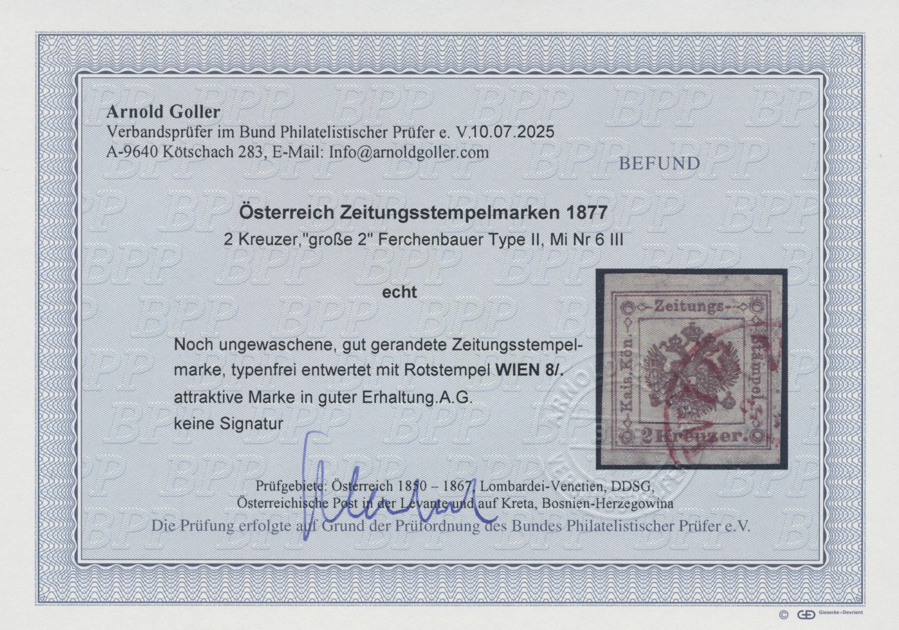 oben genannten Zeitung bekannt. Siehe Ferchenbauer-Katalog Bd.II, 2008, S.610. R!