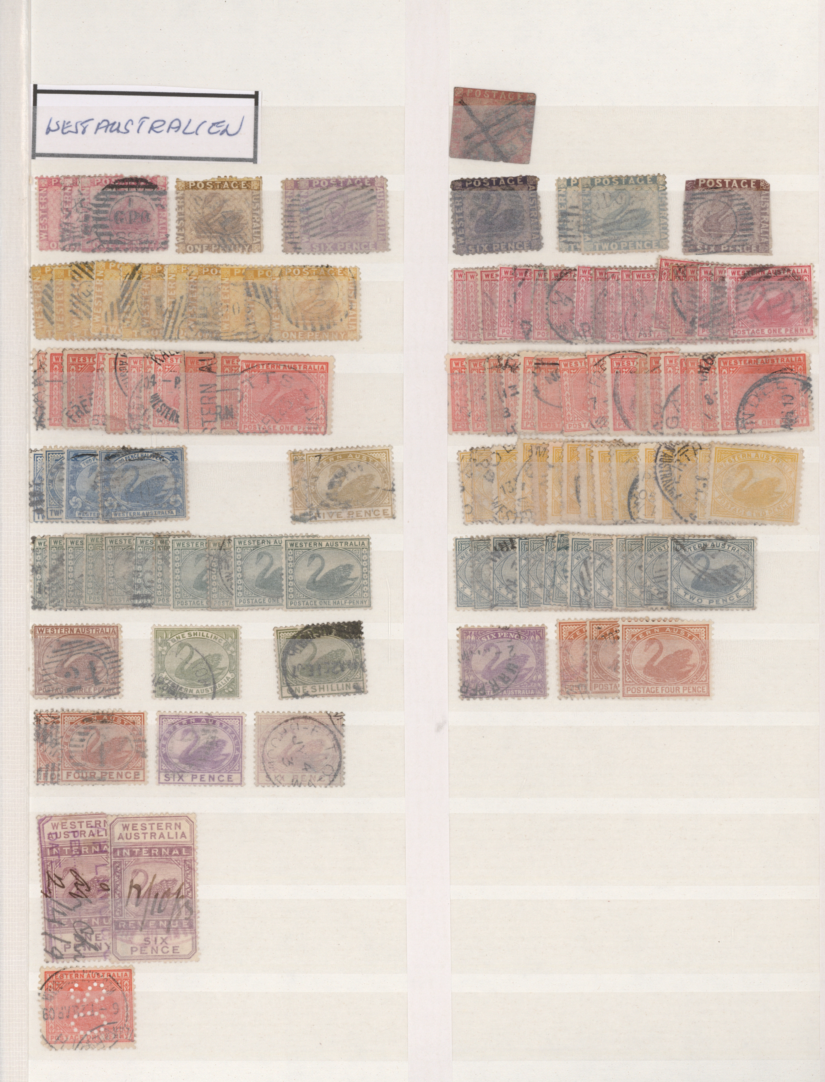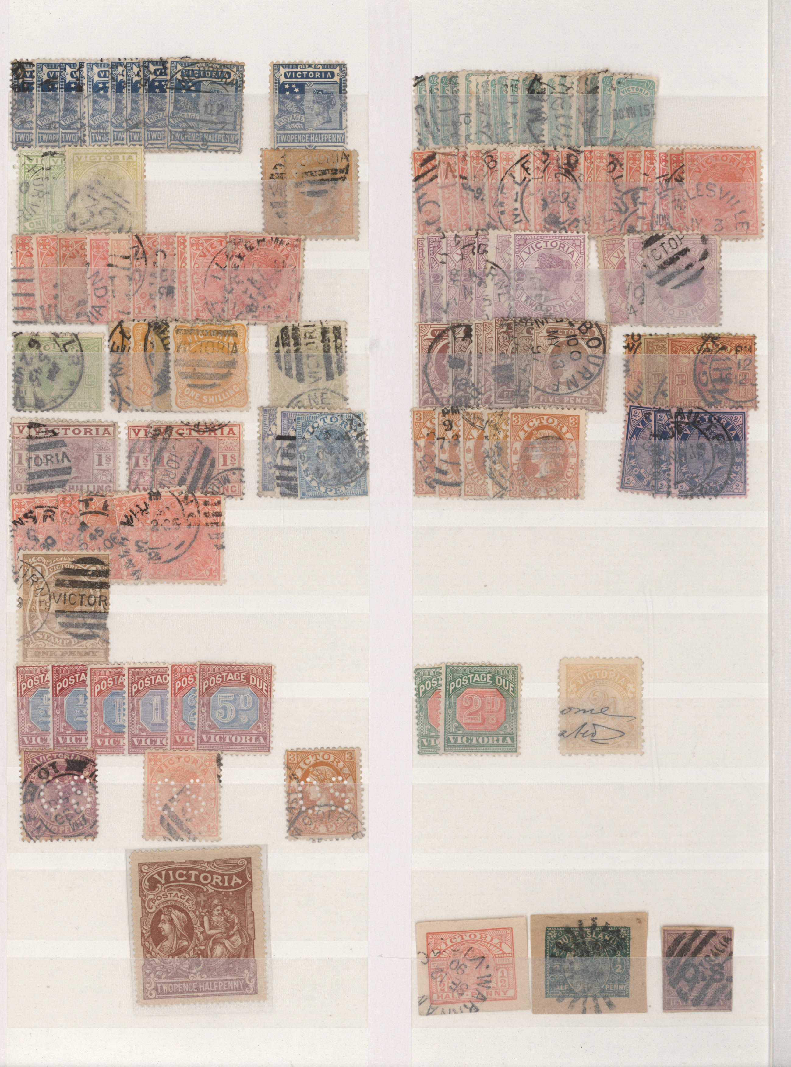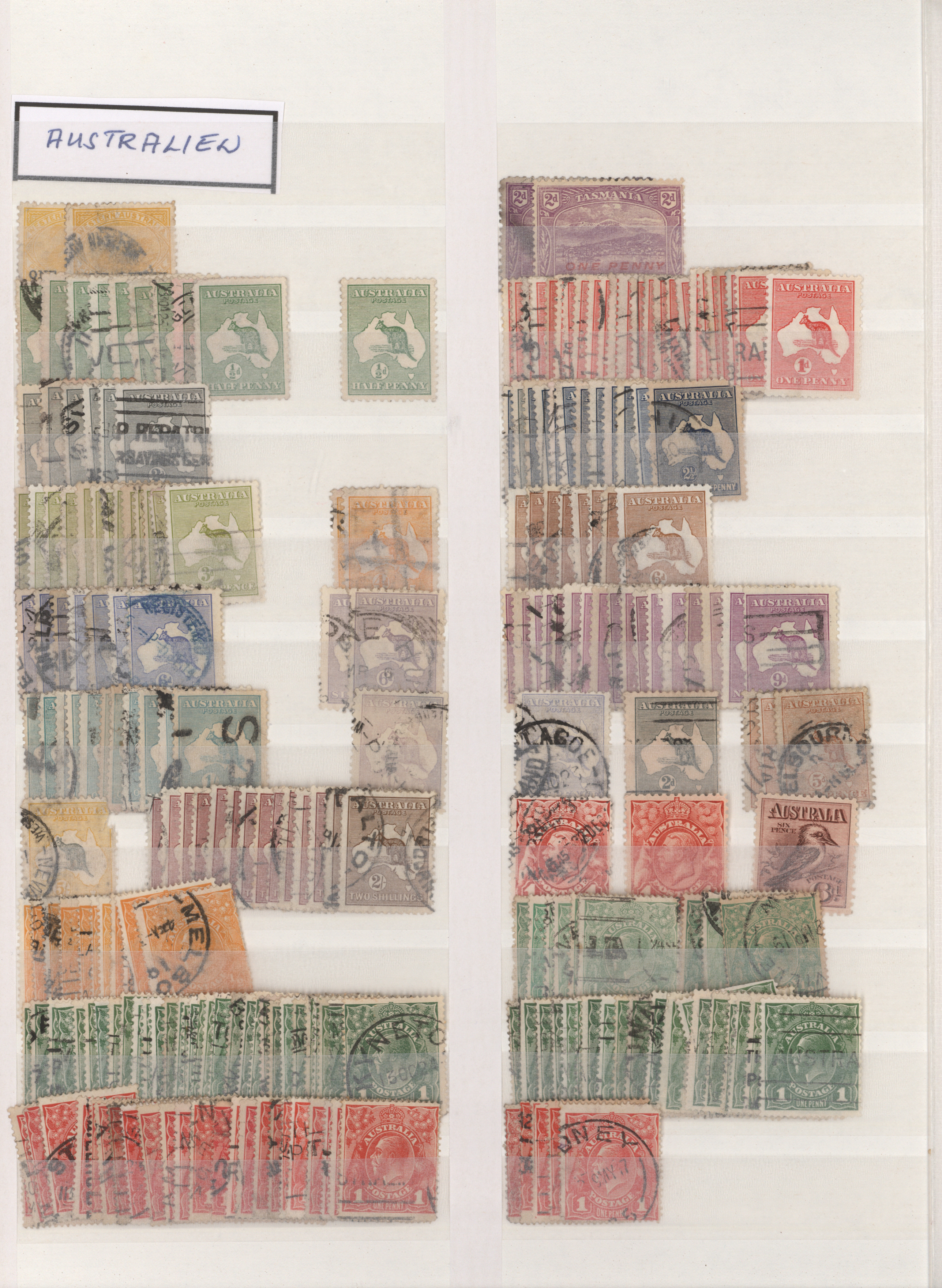 1850/1995 (ca.), Australian states/Australia/Oceania, comprehensive used and mint collection/balance on stockpages in a thick binder, with plenty of material from classic to modern, comprising NSW, Queensland, South Australia, Tasmania, Victoria, West Australia, Commonwealth of Australia well sorted from a good section Kangaroo/KGV, Oceania showing several countries (mainly MNH) incl. Antarctic area.