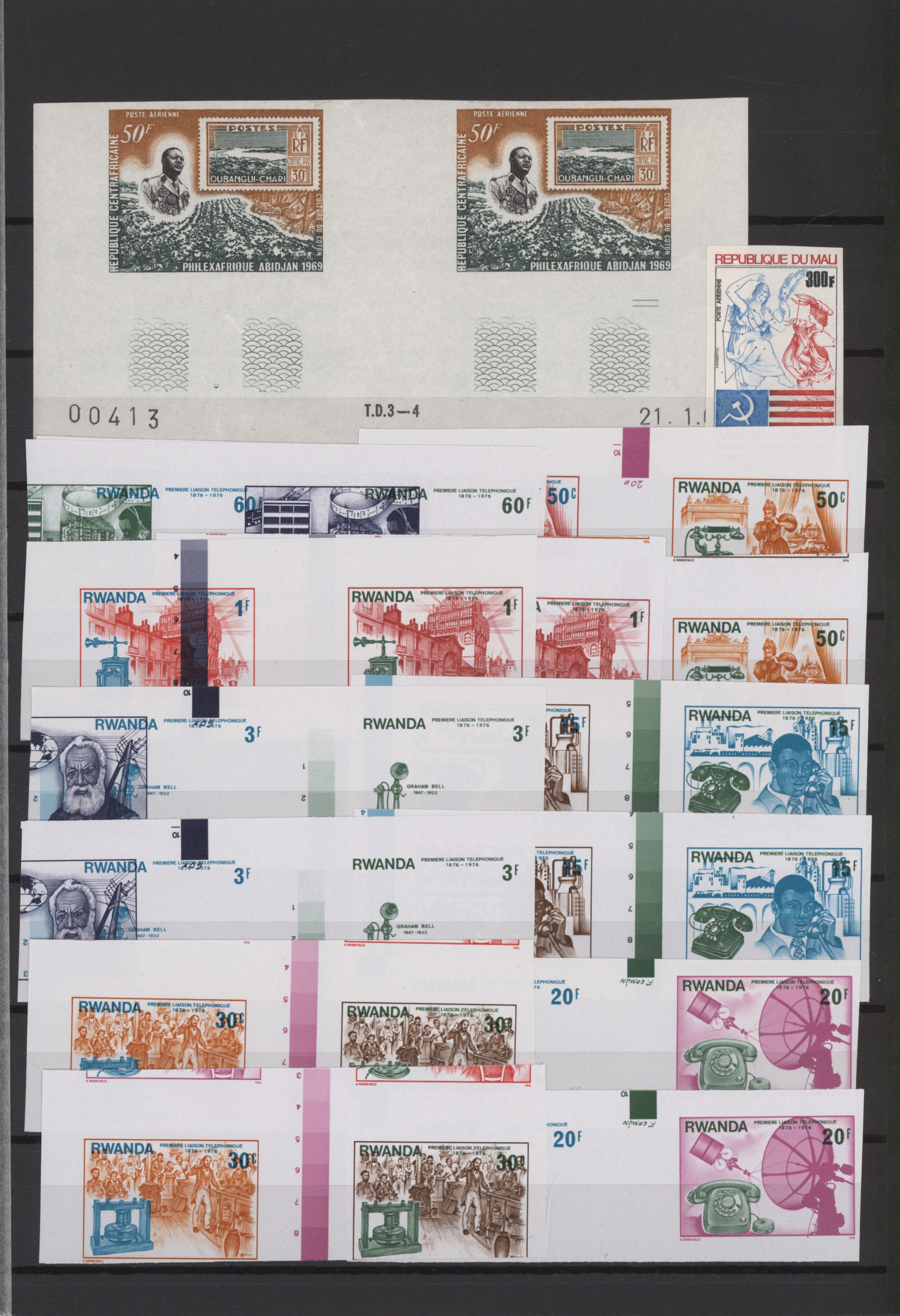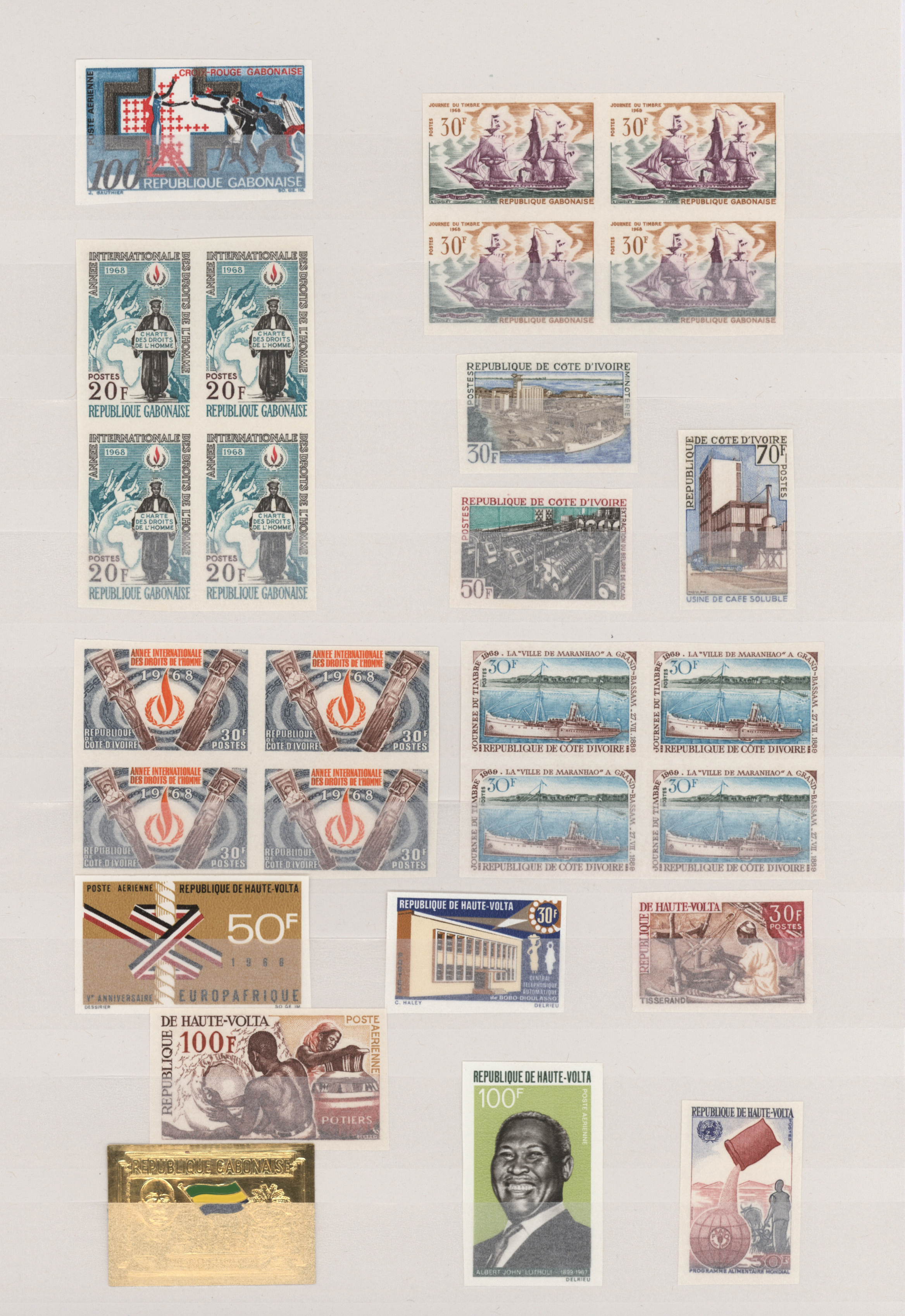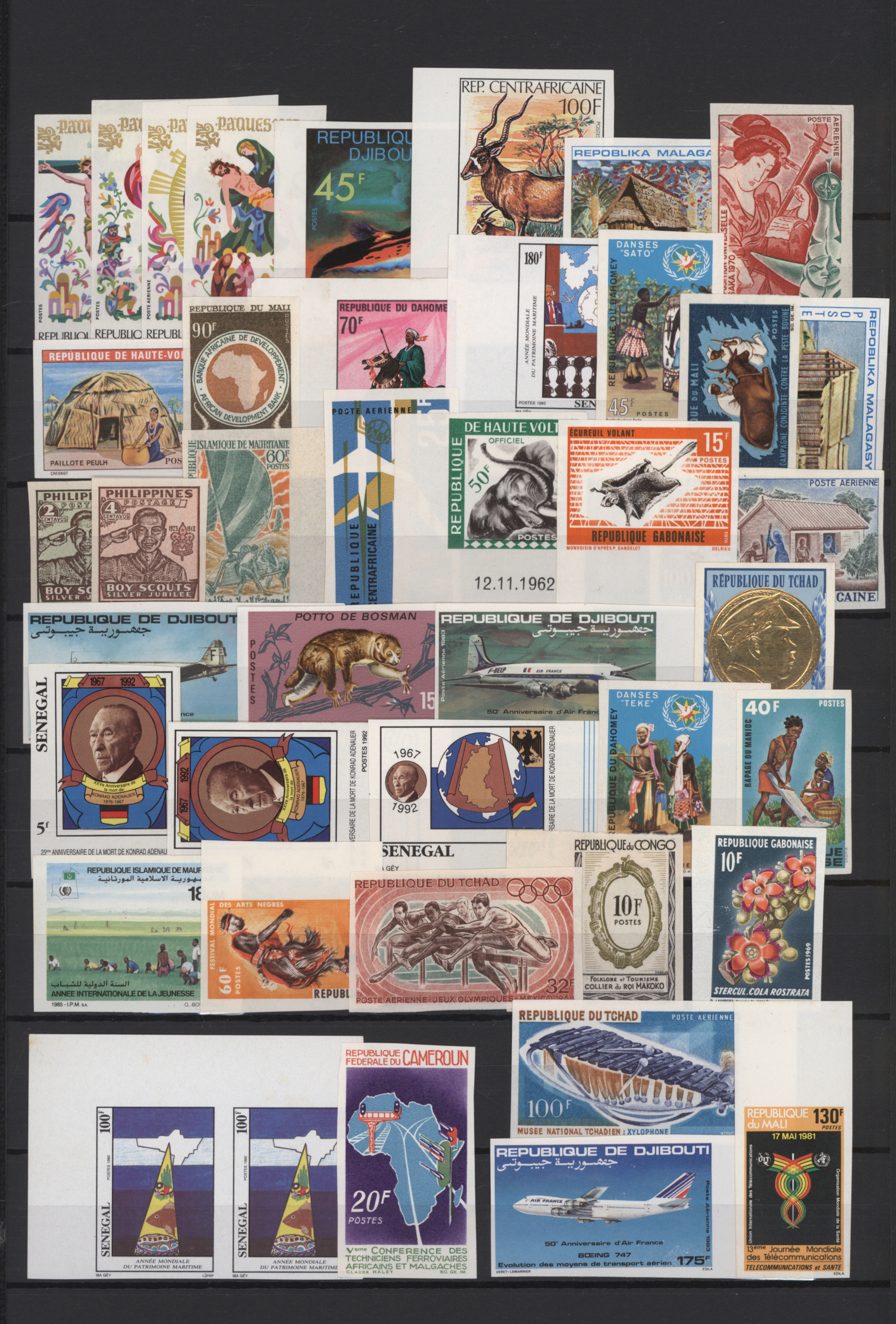 1964/2000 (ca.) accumulation of mostly imperforate (including some colour proofs) stamps of different countries all over the African continent, f.e. Mali, Niger, Congo, Ruanda, Togo. Hundreds of stamps (and a few souvenir sheets, gutter-pairs) on stockpages. Please view!