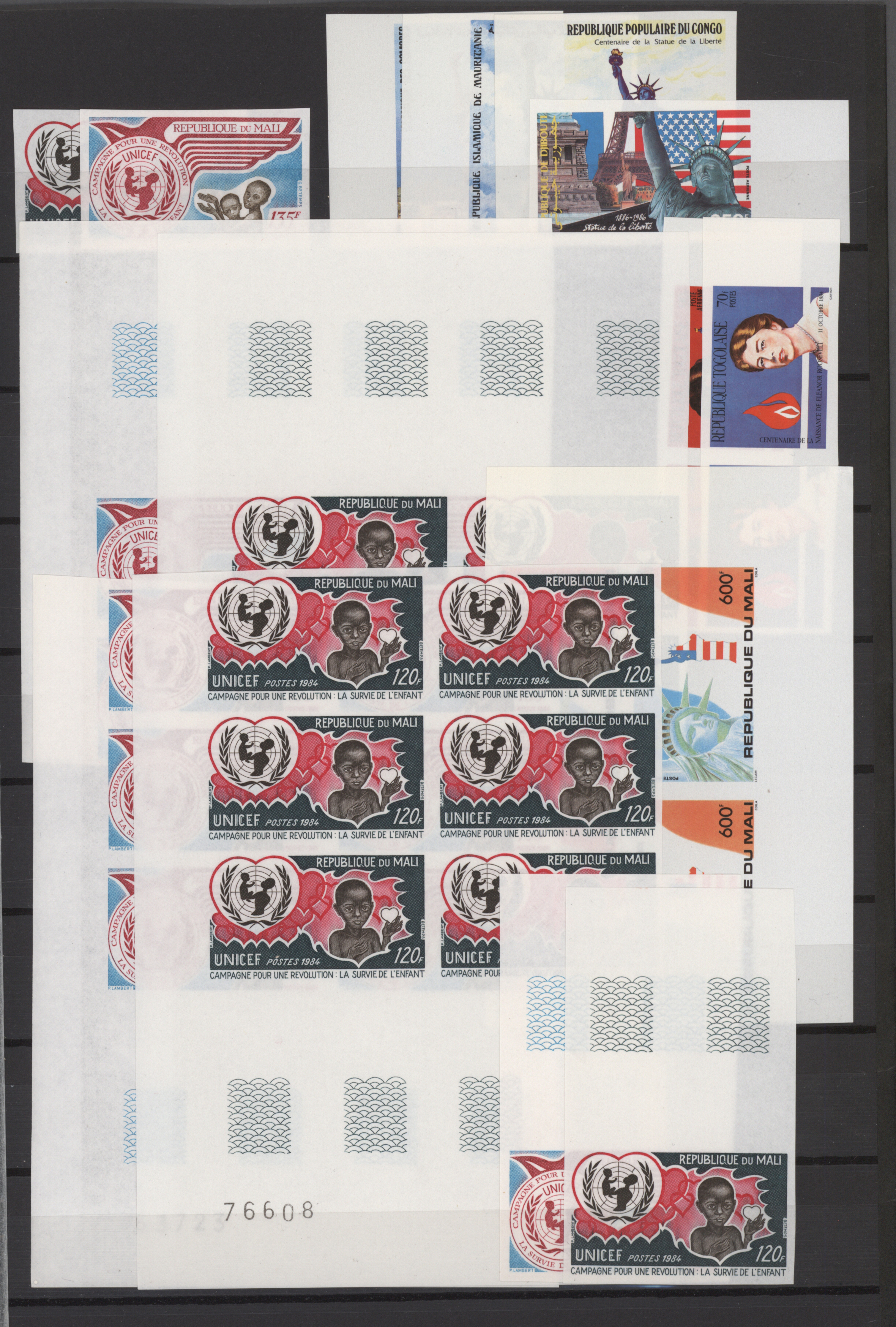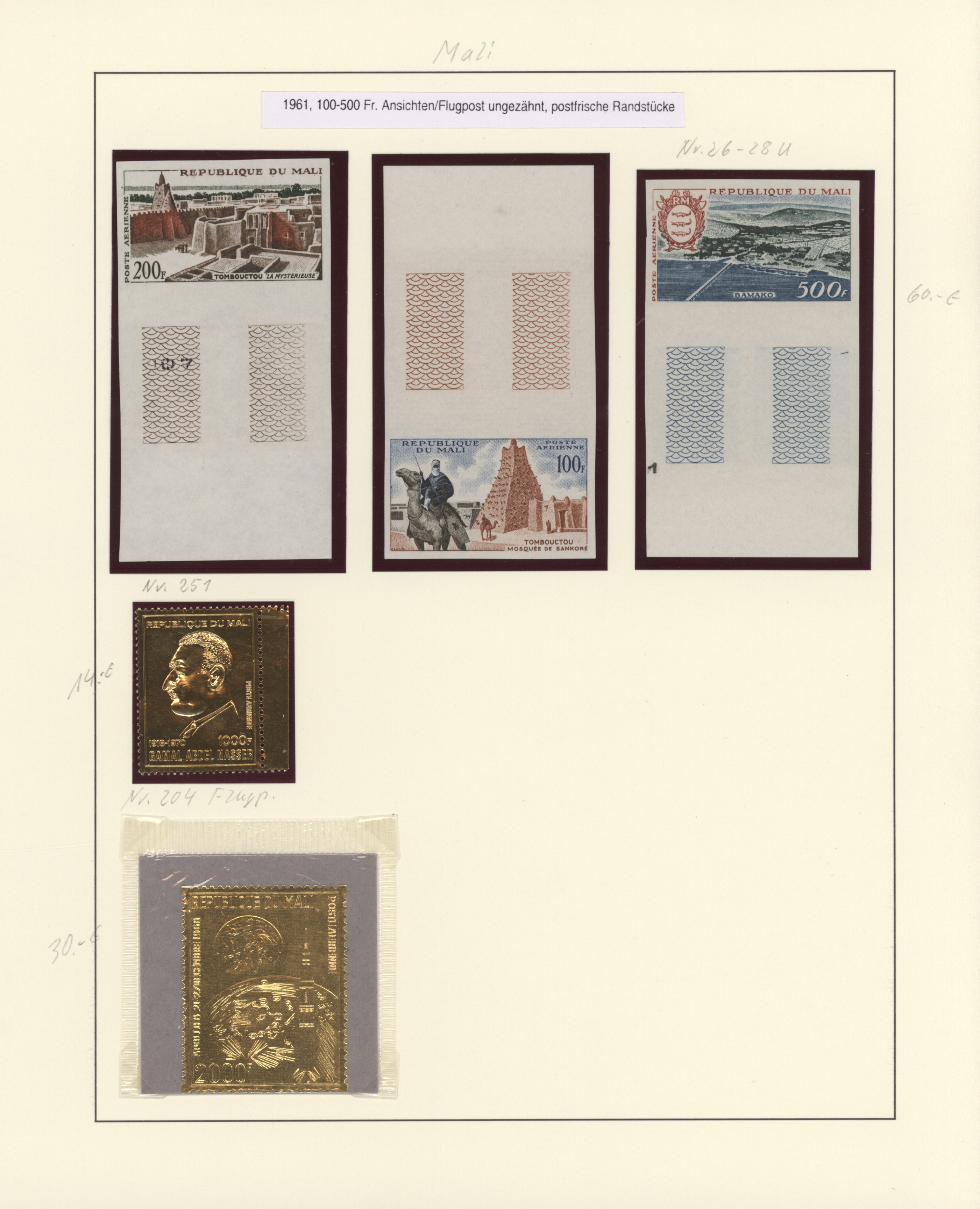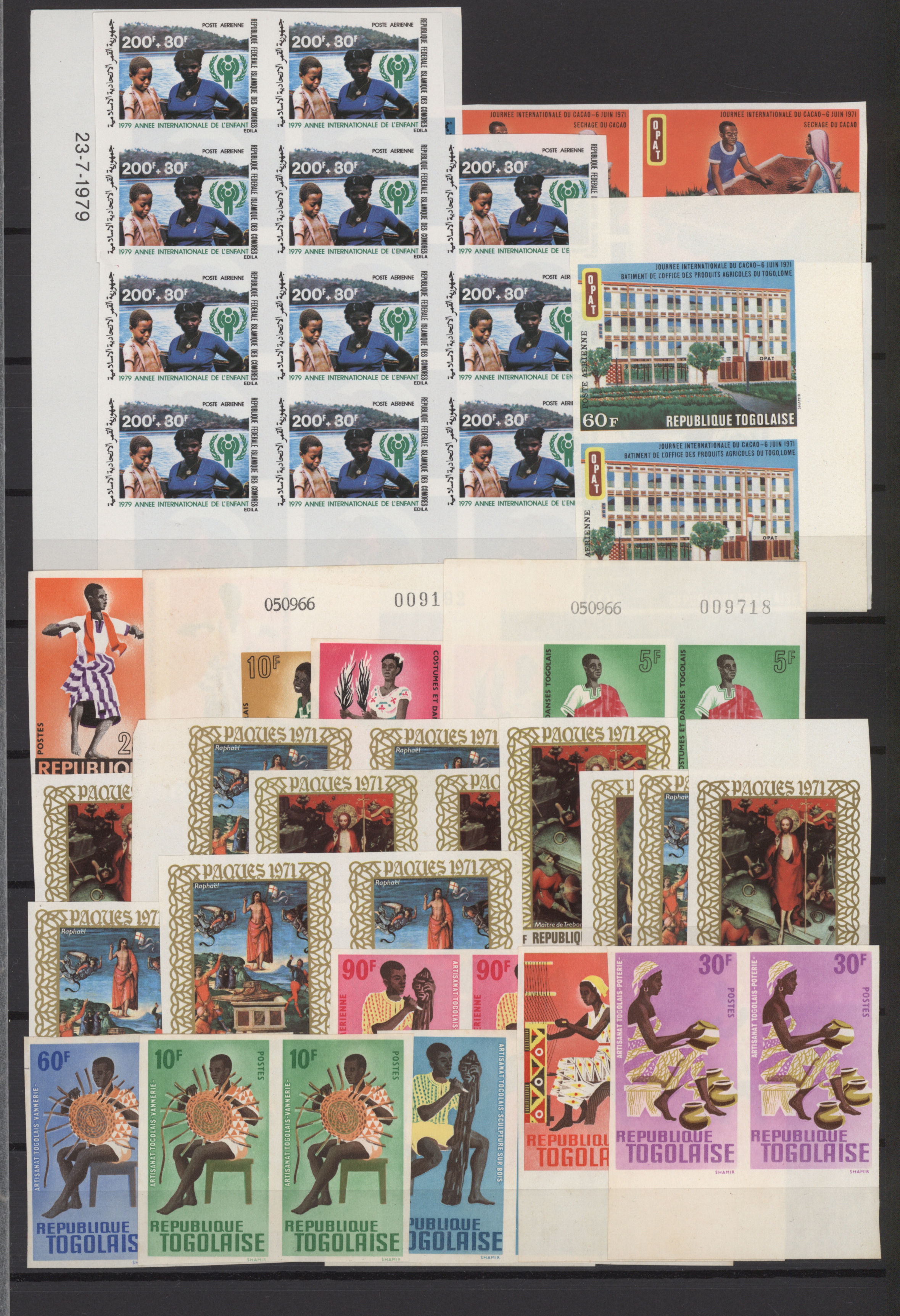 1964/2000 (ca.) accumulation of mostly imperforate (including some colour proofs) stamps of different countries all over the African continent, f.e. Mali, Niger, Congo, Ruanda, Togo. Hundreds of stamps (and a few souvenir sheets, gutter-pairs) on stockpages. Please view!