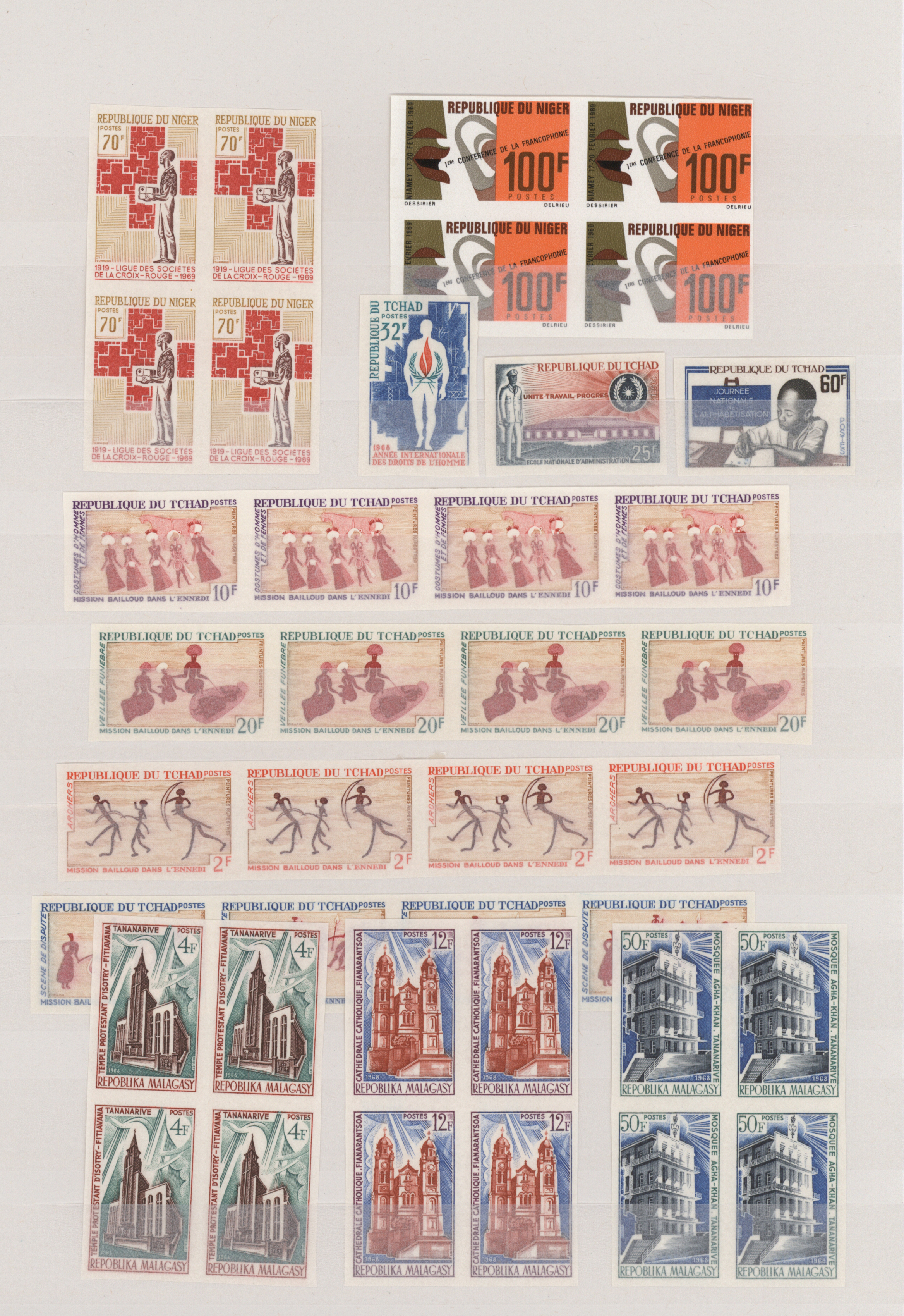 1968/1969, French Africa, collection of apprx. 377 imperf. stamps, apparently mainly complete issues, also attractive thematics.