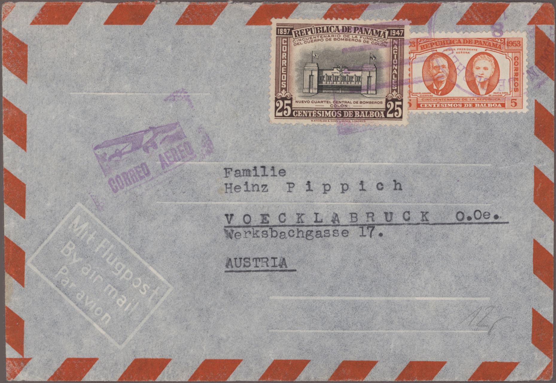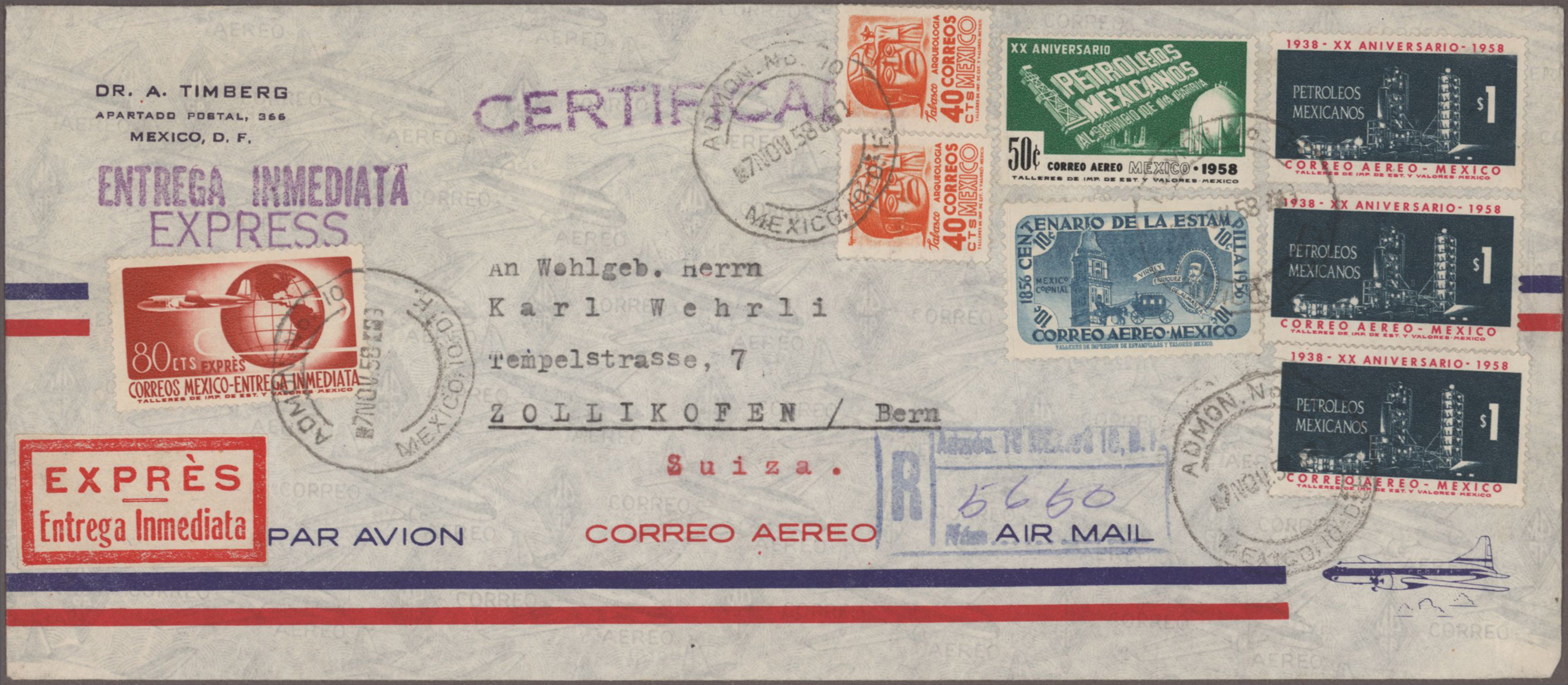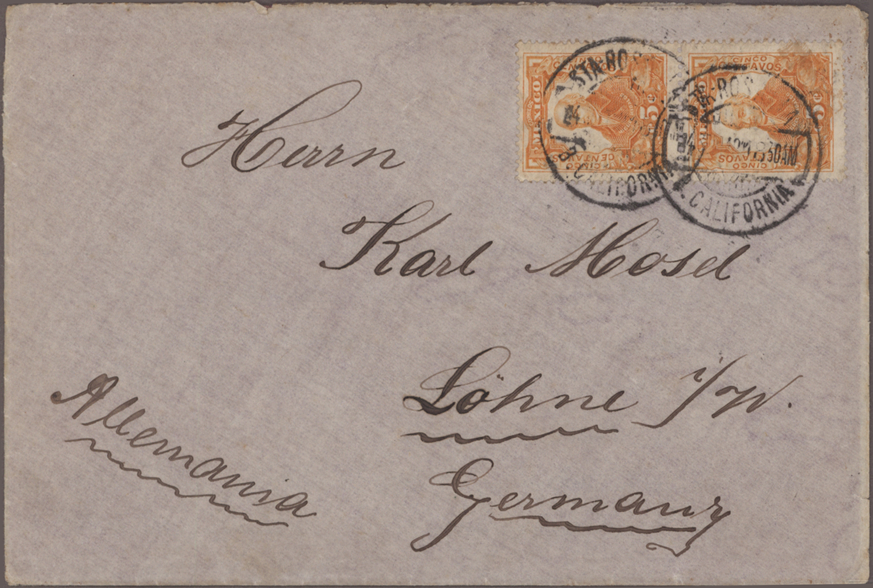 1880/1980 (ca.), sophisticated balance of apprx. 860 commercial covers/cards, comprising e.g. Mexico, Argentinia, Brazil, Chile, Peru, Venezuela, and others. Great range of interesting pieces, used stationeries, registered and airmail, etc.