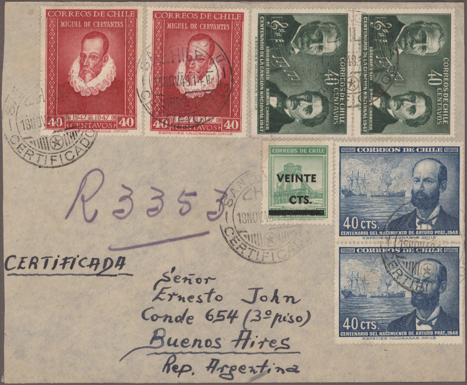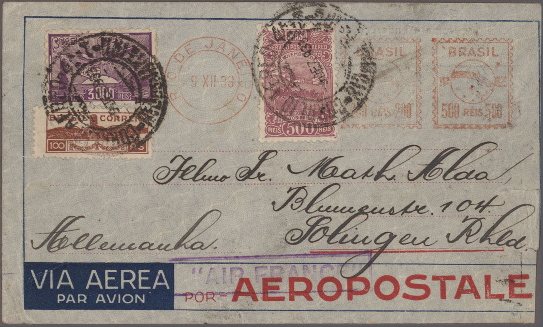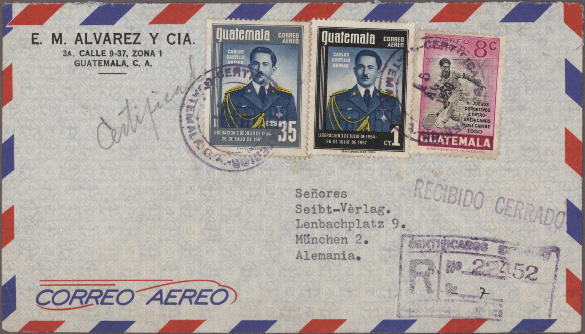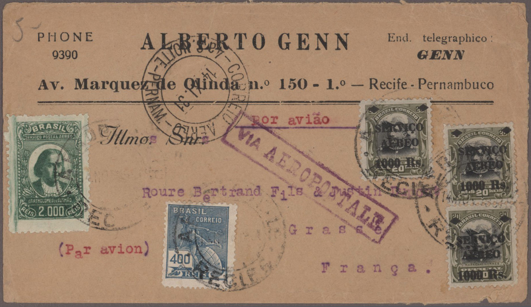 1880/1980 (ca.), sophisticated balance of apprx. 860 commercial covers/cards, comprising e.g. Mexico, Argentinia, Brazil, Chile, Peru, Venezuela, and others. Great range of interesting pieces, used stationeries, registered and airmail, etc.