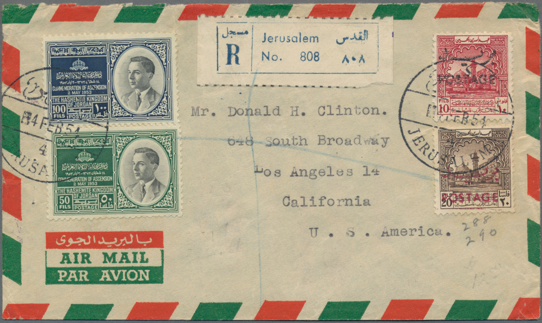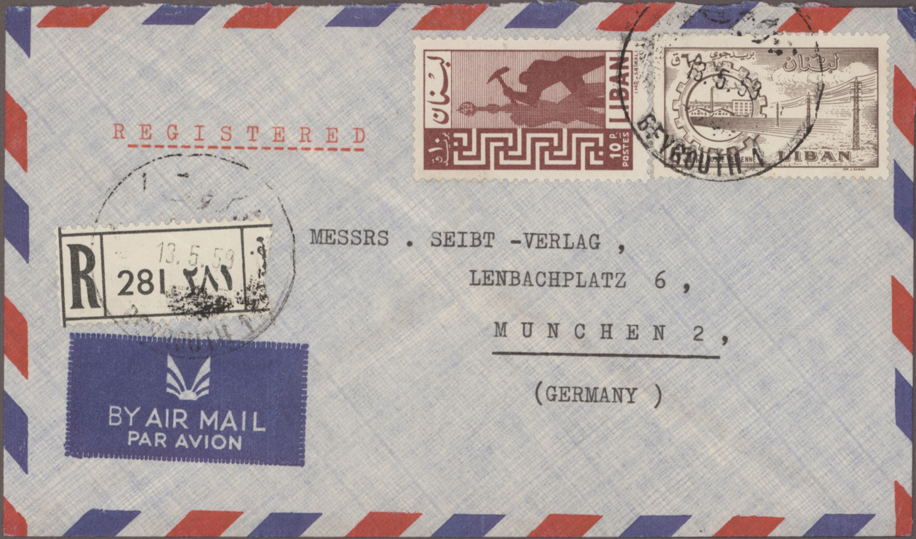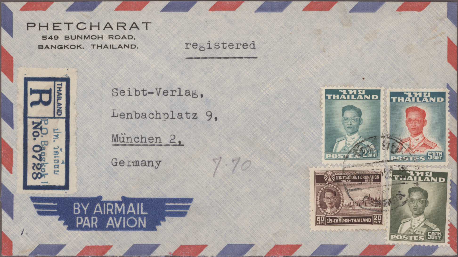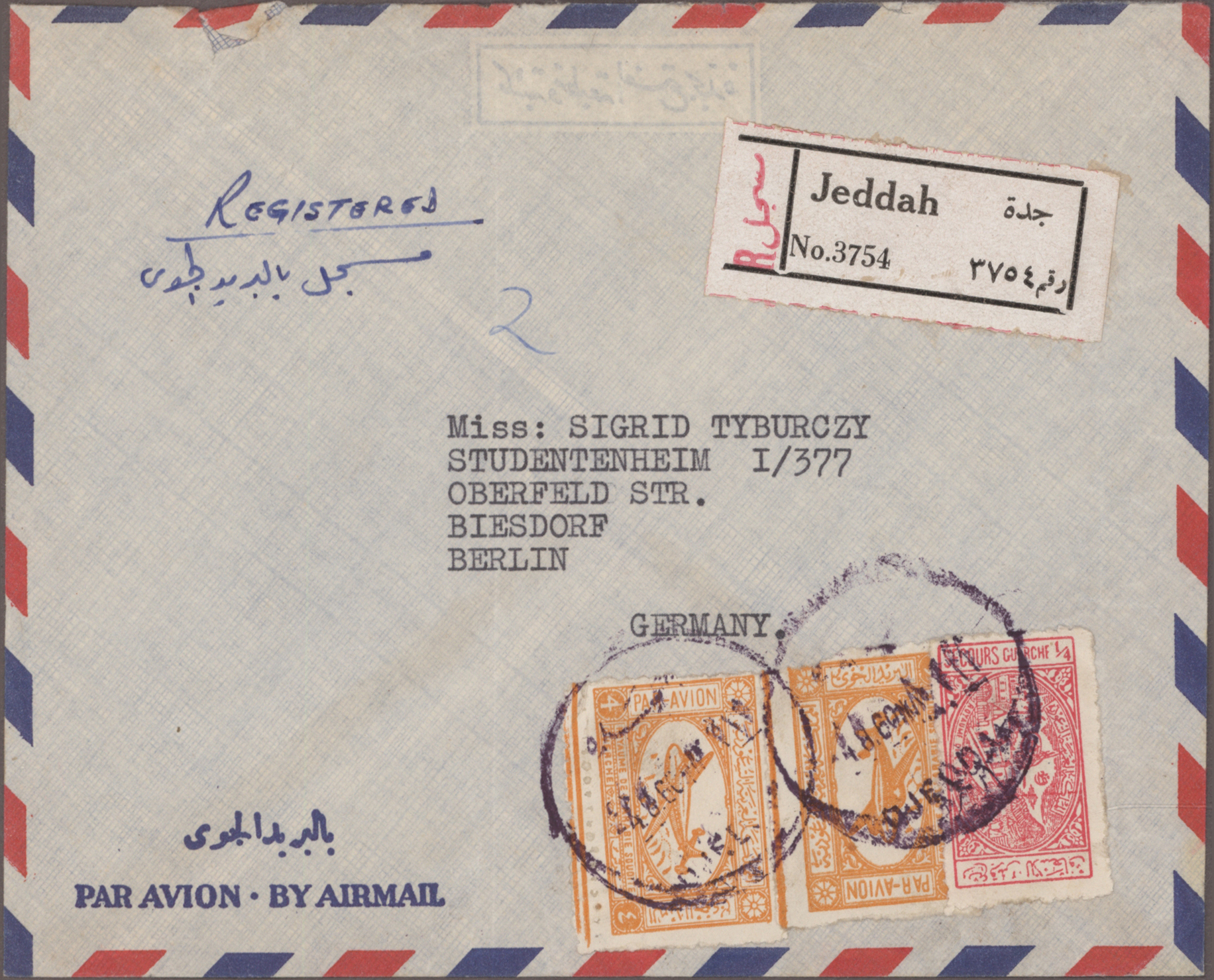 1860/1970 (ca.), assortment of apprx. 65 largely sized entires, comprising e.g. Iraq, Dutch colonies, USA, Egypt, British colonies, South America, etc. Includes attractive frankings, better stationeries, registered, censored and airmail, etc.