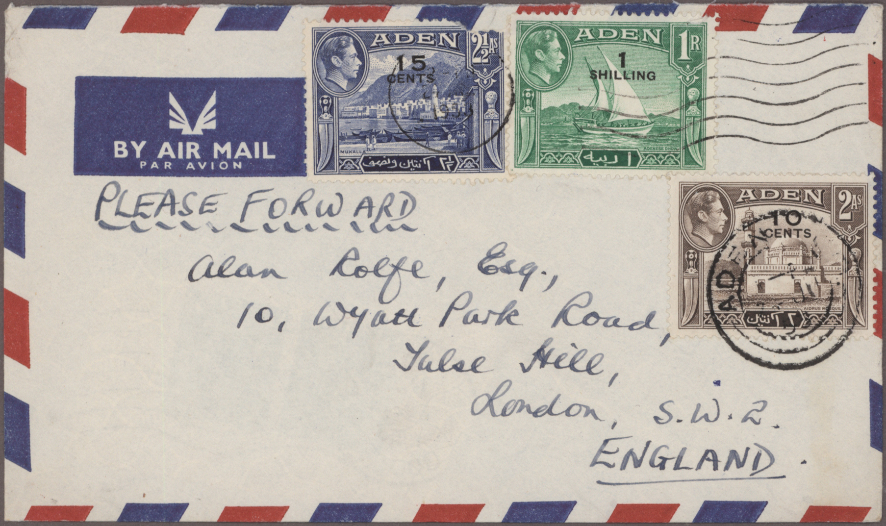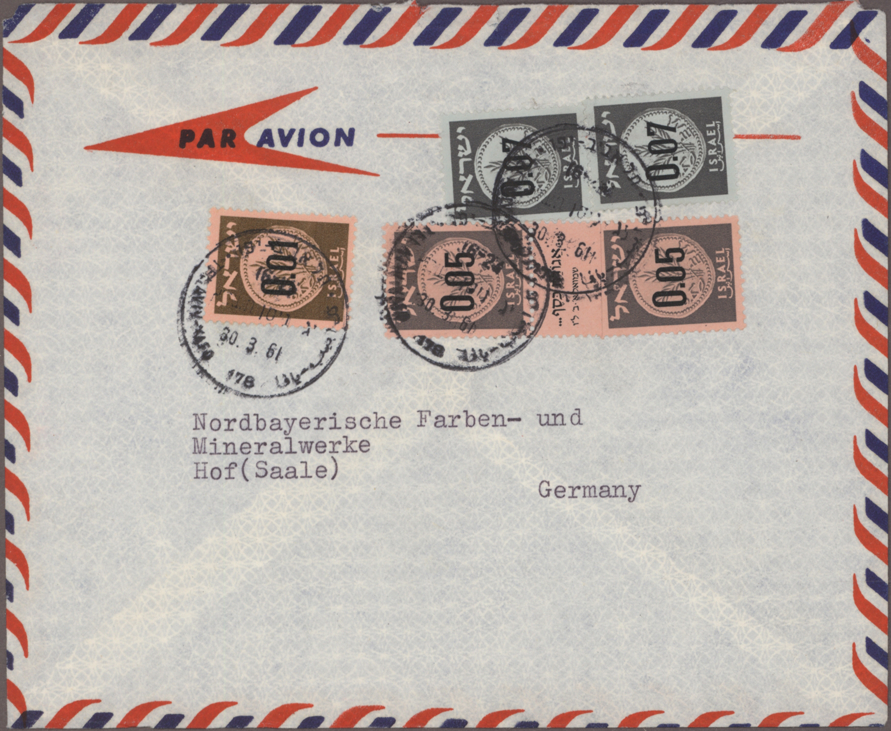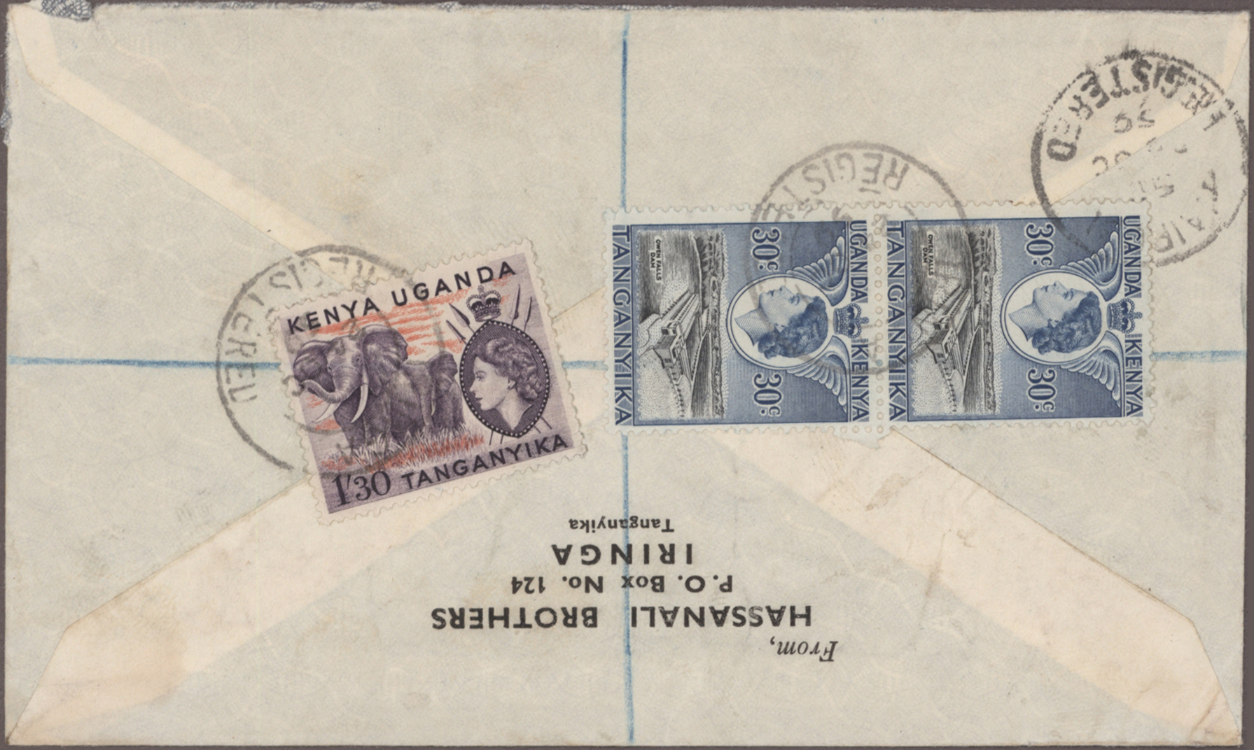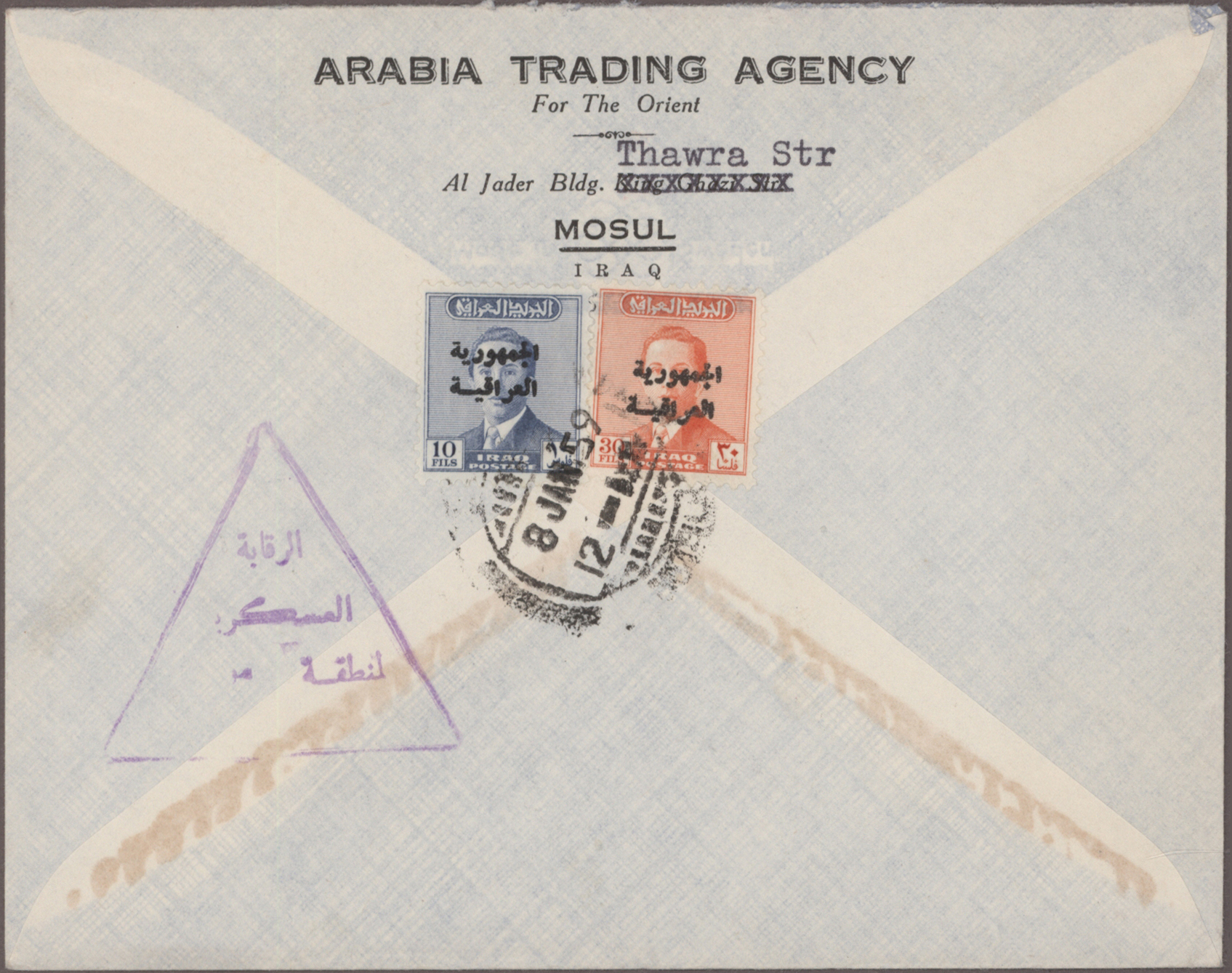 1860/1970 (ca.), assortment of apprx. 65 largely sized entires, comprising e.g. Iraq, Dutch colonies, USA, Egypt, British colonies, South America, etc. Includes attractive frankings, better stationeries, registered, censored and airmail, etc.