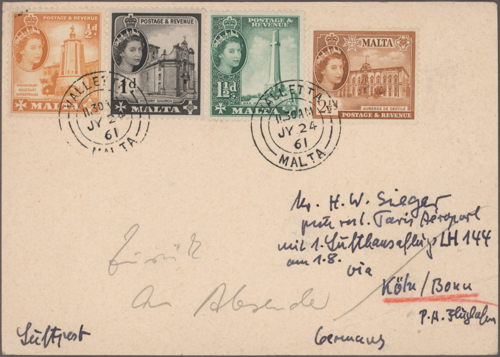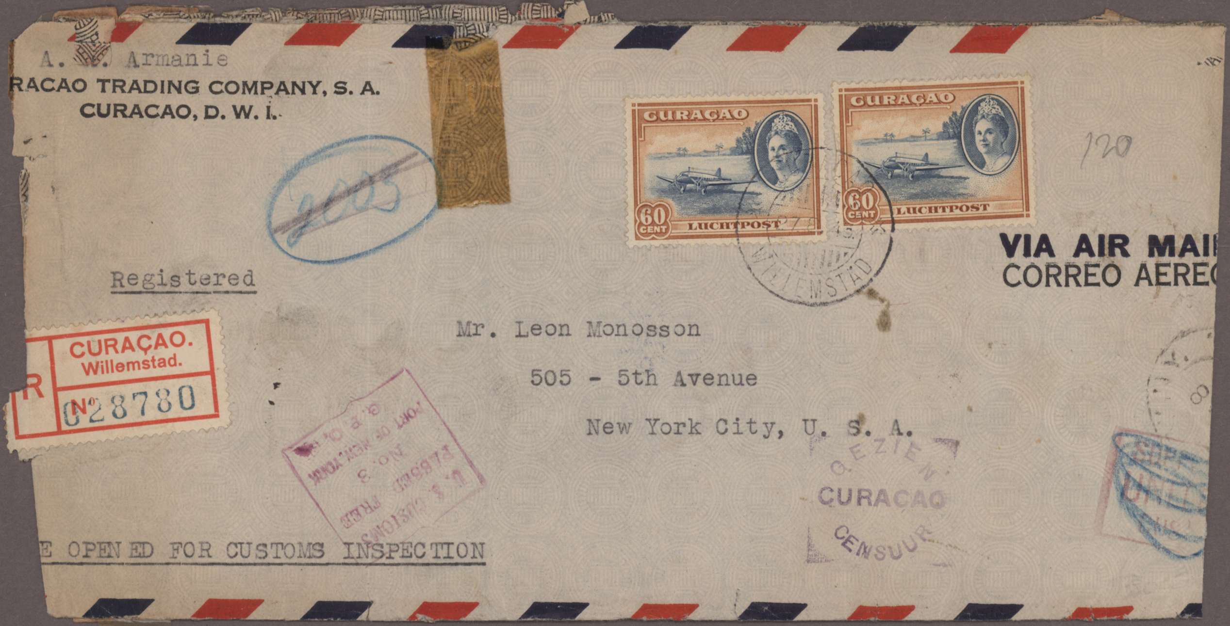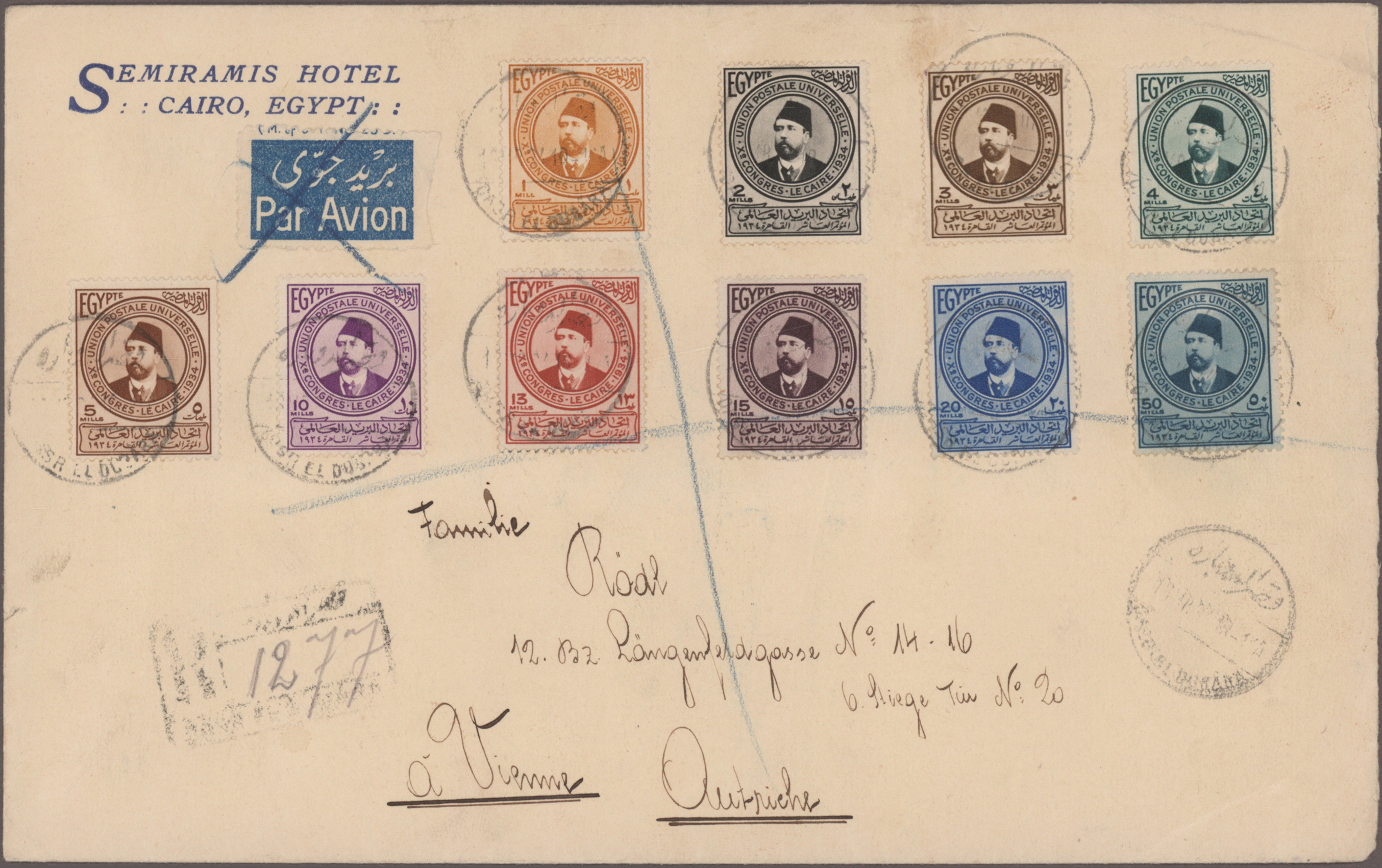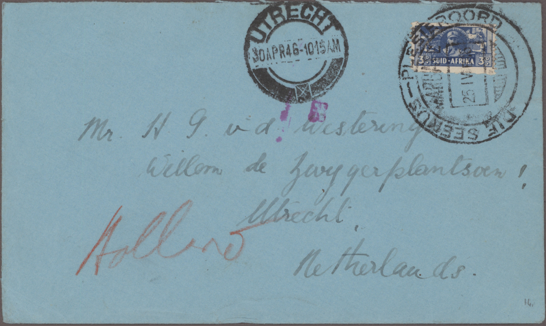 1860/1970 (ca.), assortment of apprx. 65 largely sized entires, comprising e.g. Iraq, Dutch colonies, USA, Egypt, British colonies, South America, etc. Includes attractive frankings, better stationeries, registered, censored and airmail, etc.