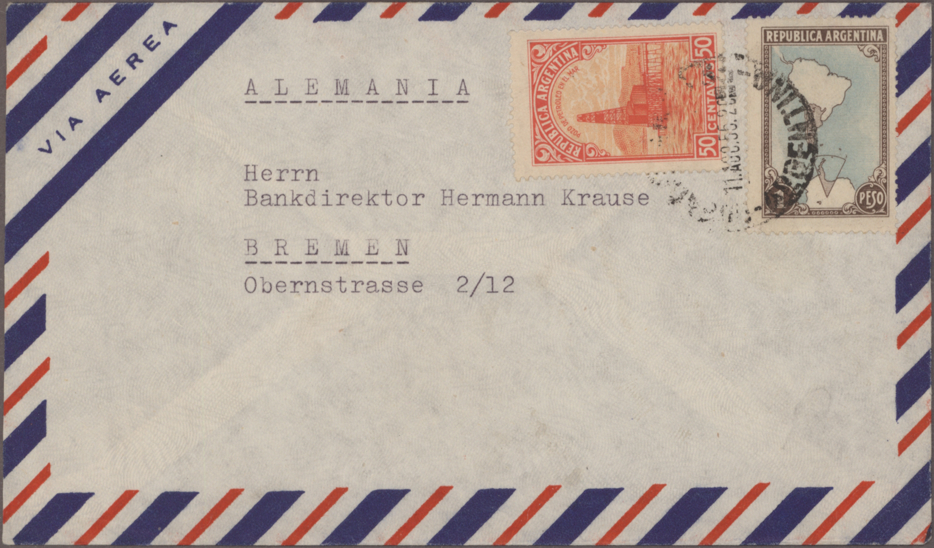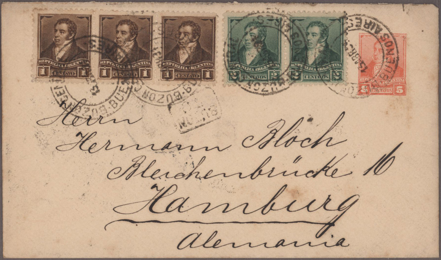 1890/1970 (ca.), big shoebox full of predominantly old covers, stationeries and postcards covering many countries of Central- und Southern America like Argentina (largest part), Chile, Mexico, Venezuela, Uruguay and many more. Offers a lot of stationeries mostly used with interesting destinations, picture postcards franked on the front side, airmail, censored and business mail and more. A rich source for findings and retailing.