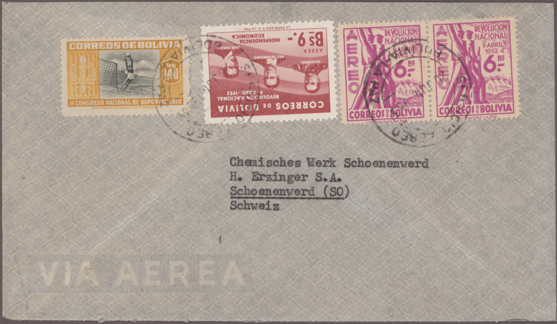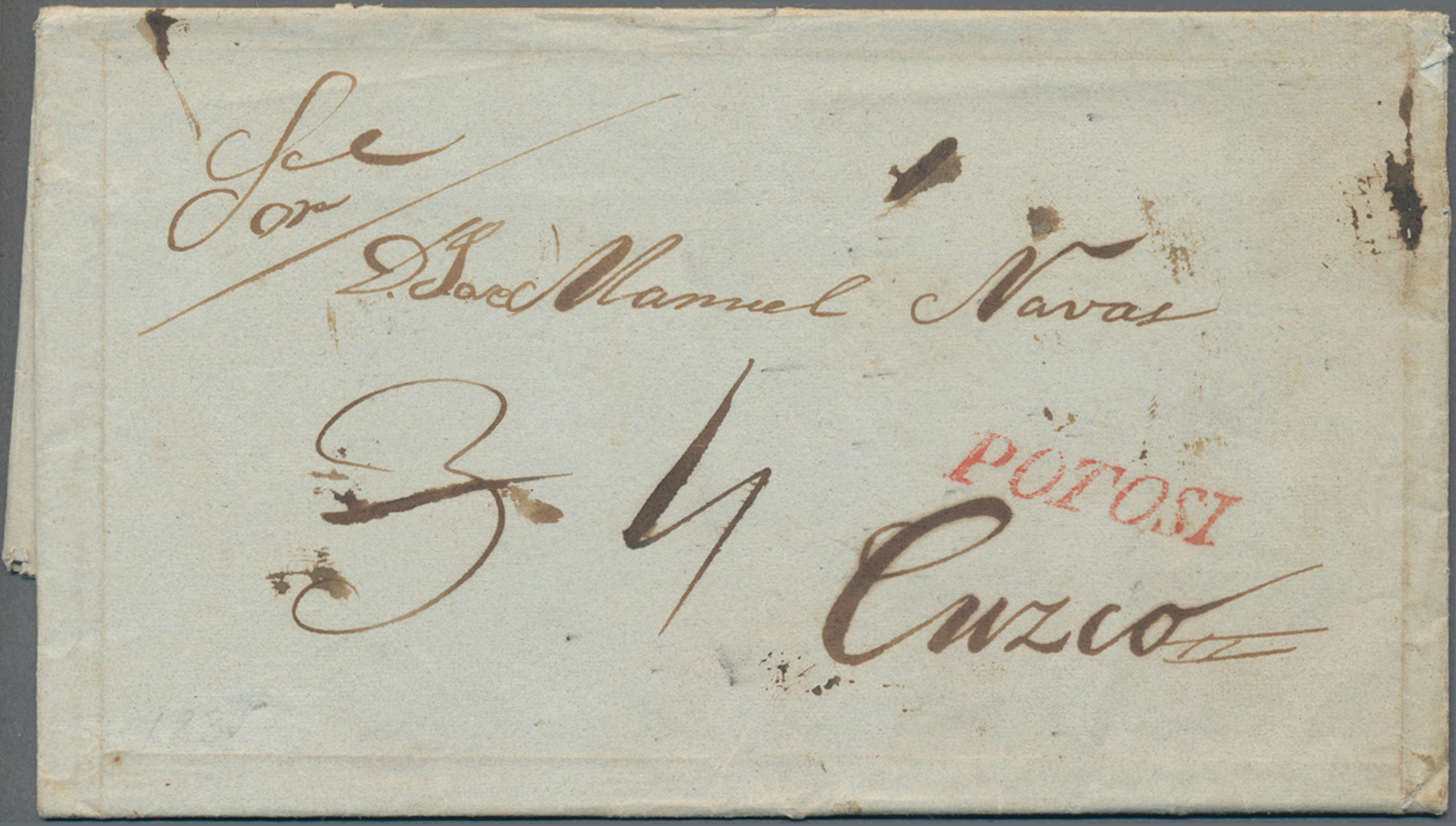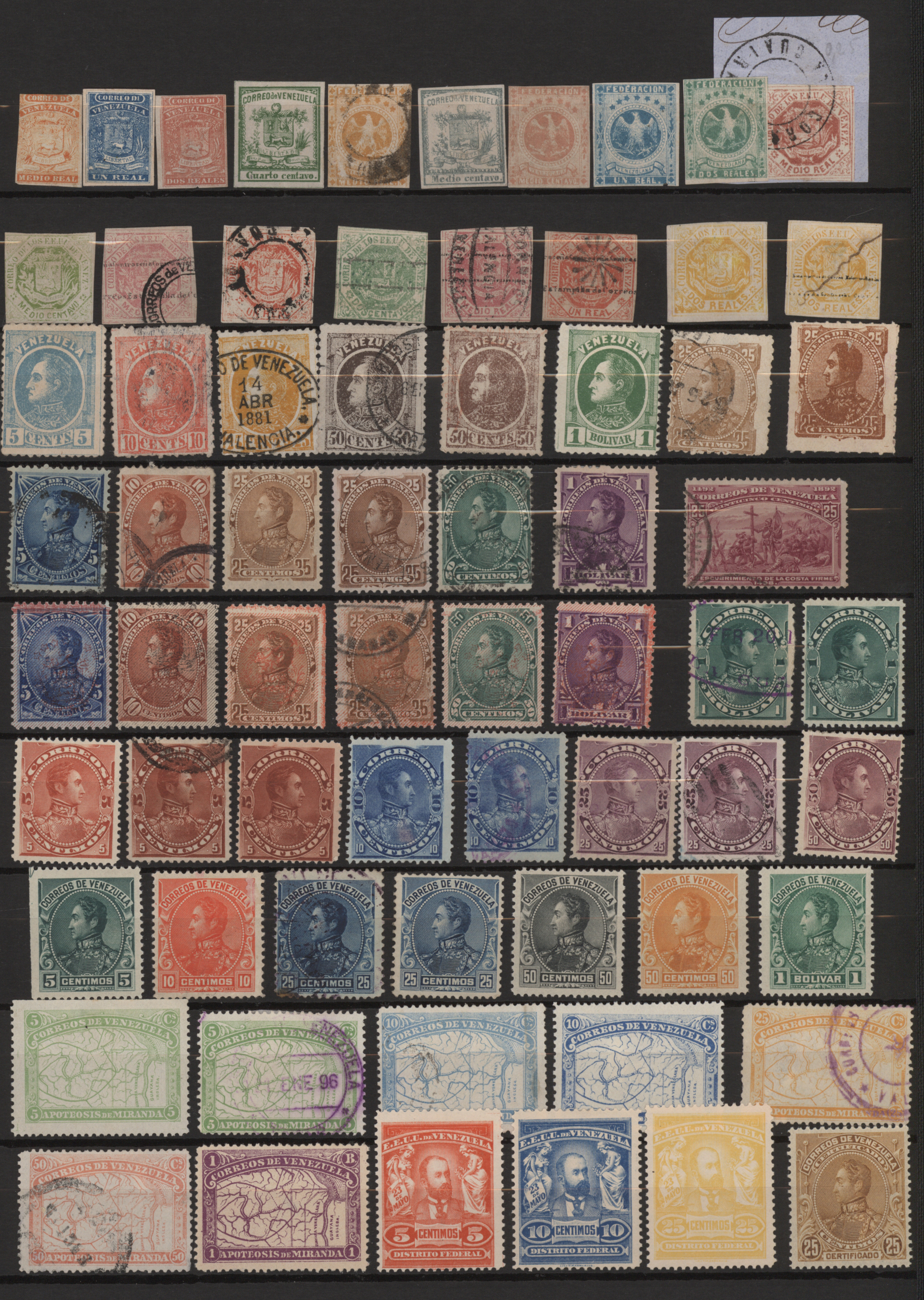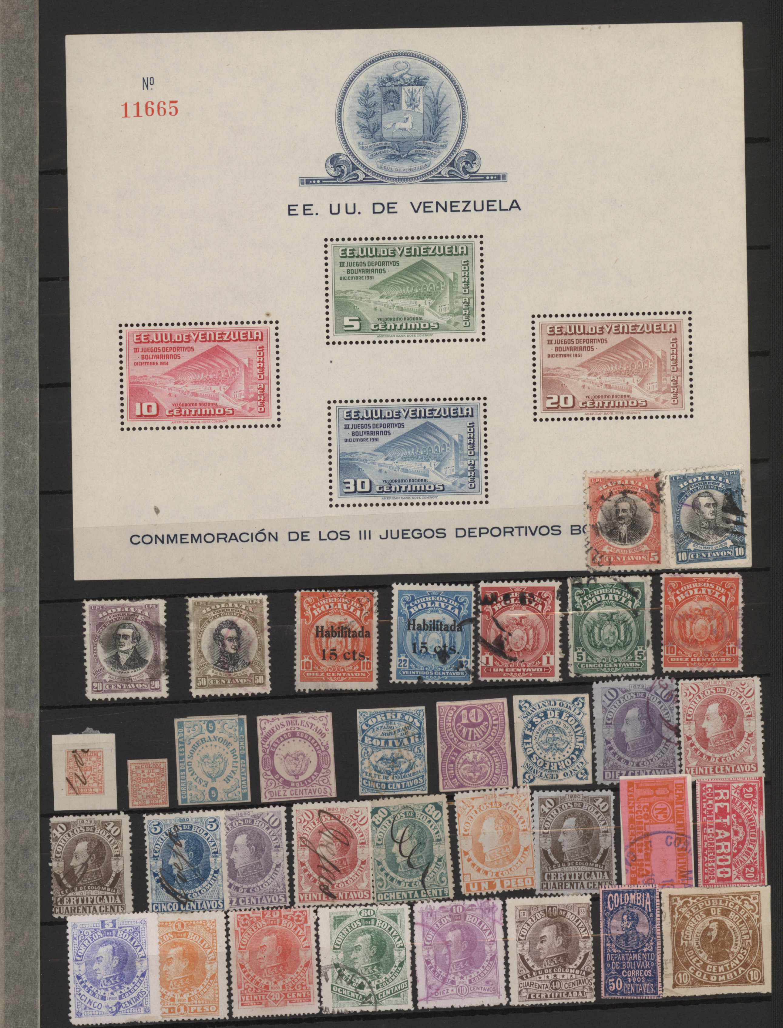 1800's-1930's: More than 80 covers resp. few part covers (fronts) from various countries as Argentina, Bolivia, Chile or Peru, including some pre-philatelic covers with fine and/or scarce postmarks, plus 9 stamps of early issues of Venezuela, and several complete sheets of Argentinian stamps.