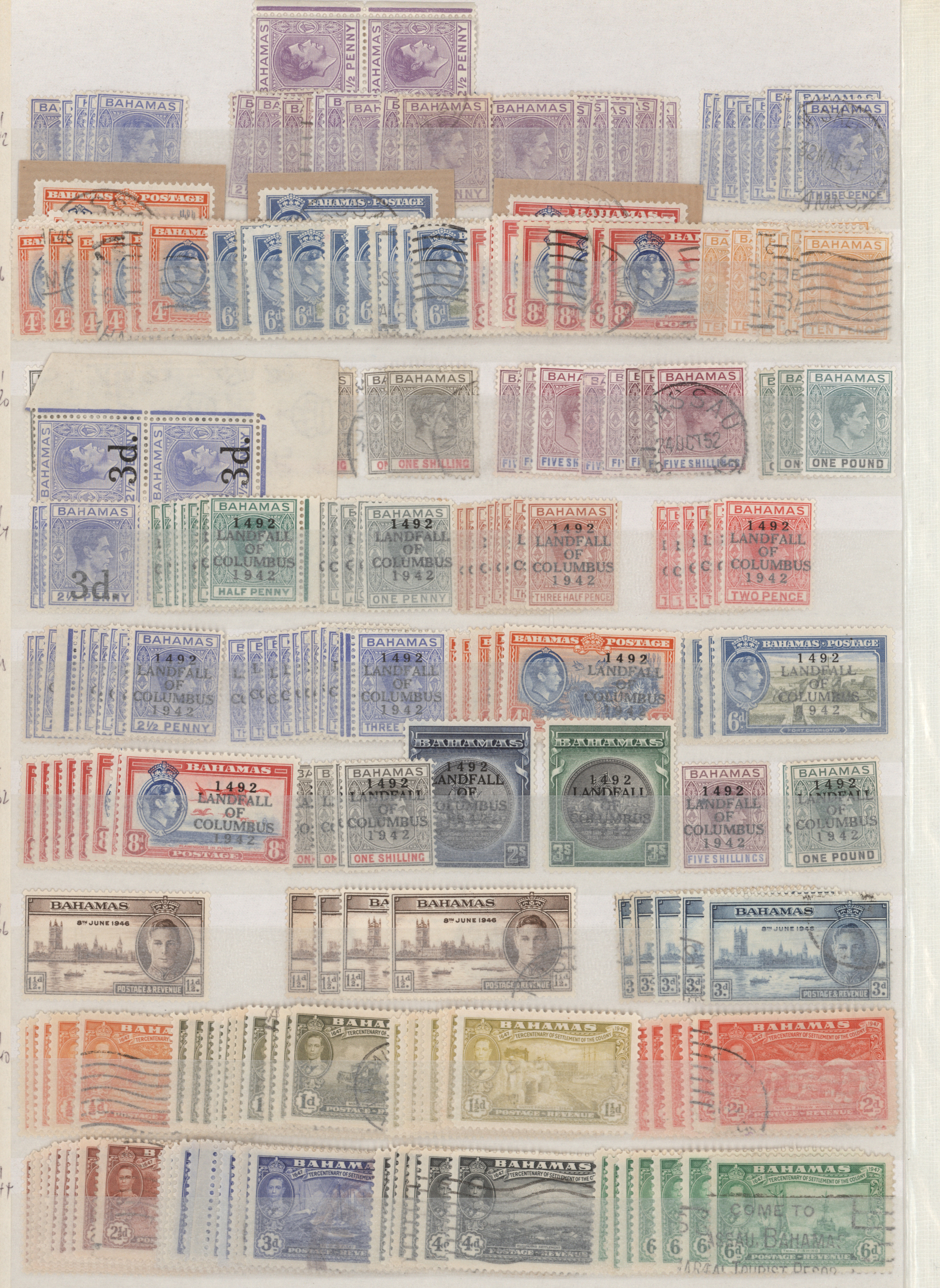1860/1950 (ca.), beautiful accumulation in a thick stockbook with classic and semi-classic (please check for validity and quality) material up to Queen Elisabeth mostly duplicated of Bahamas, Barbados, Bermuda, Dominica, St. Lucia, St. Vincent, Trinidad, Grenada and many others.
