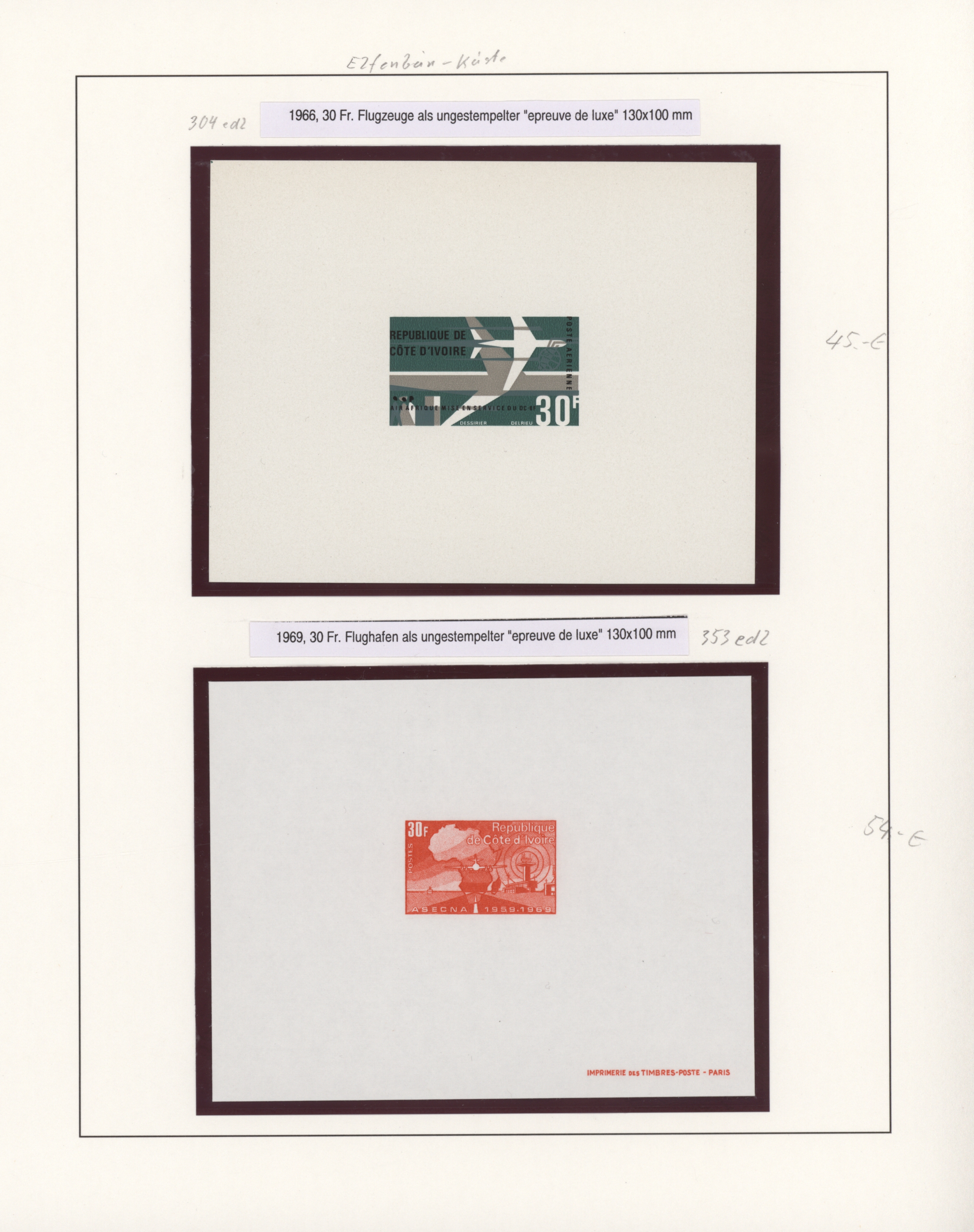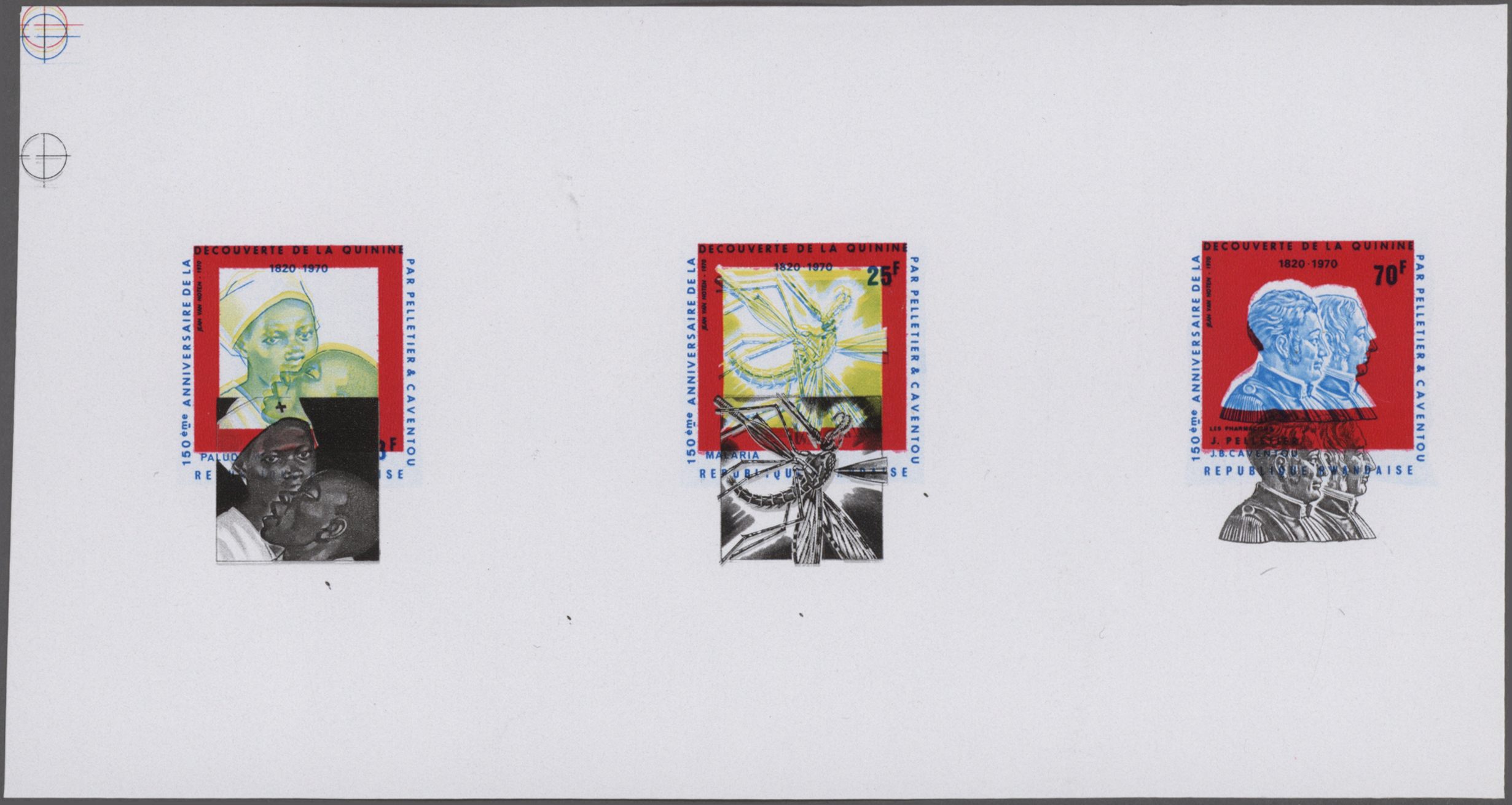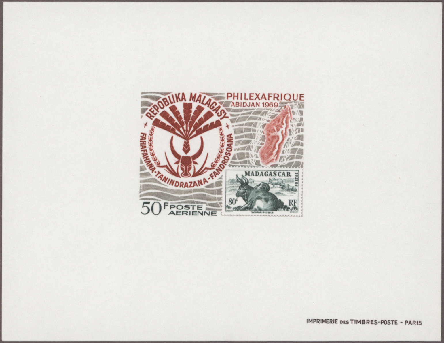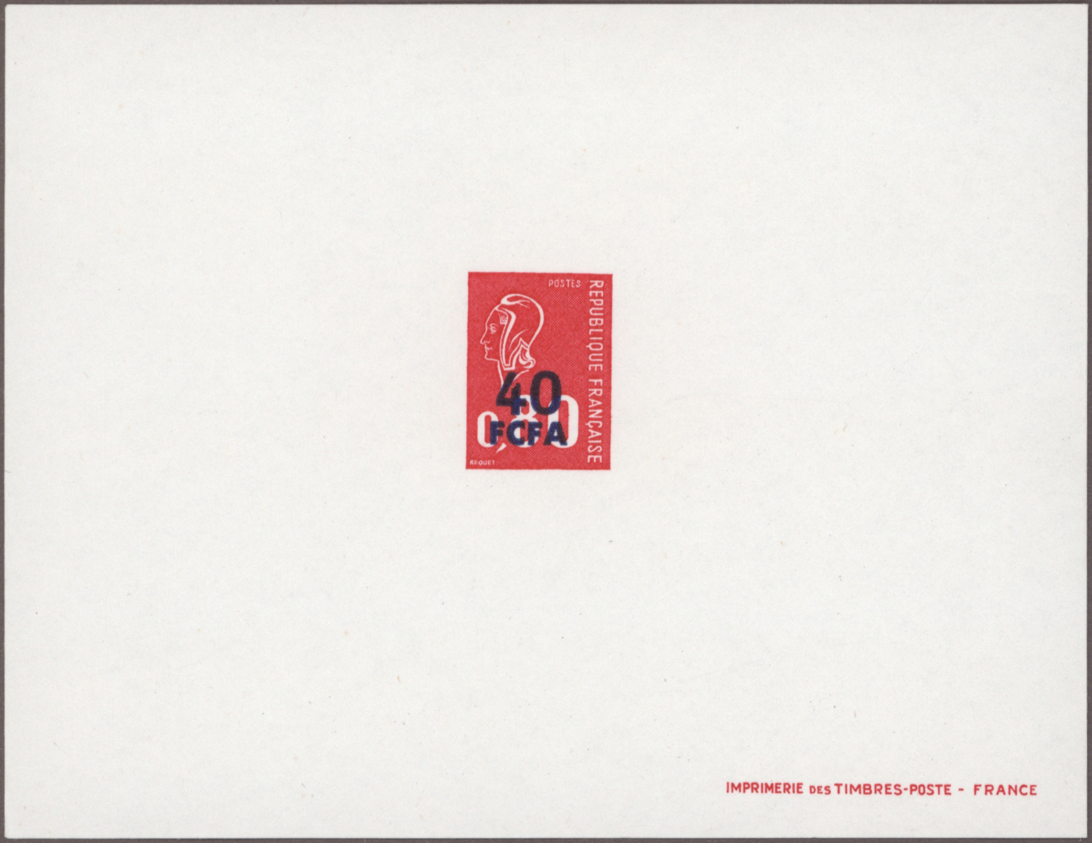 1965/1975 (ca.) more than 100 epreuves and 70 imperforate stamps of former French colonies mostly in Africa in varying quality, f.e. Togo, Djibouti, Senegal, Niger, Mali, Territory of the Afars and the Issas and other, five epreuves of actual French stamps. Many nice topics!